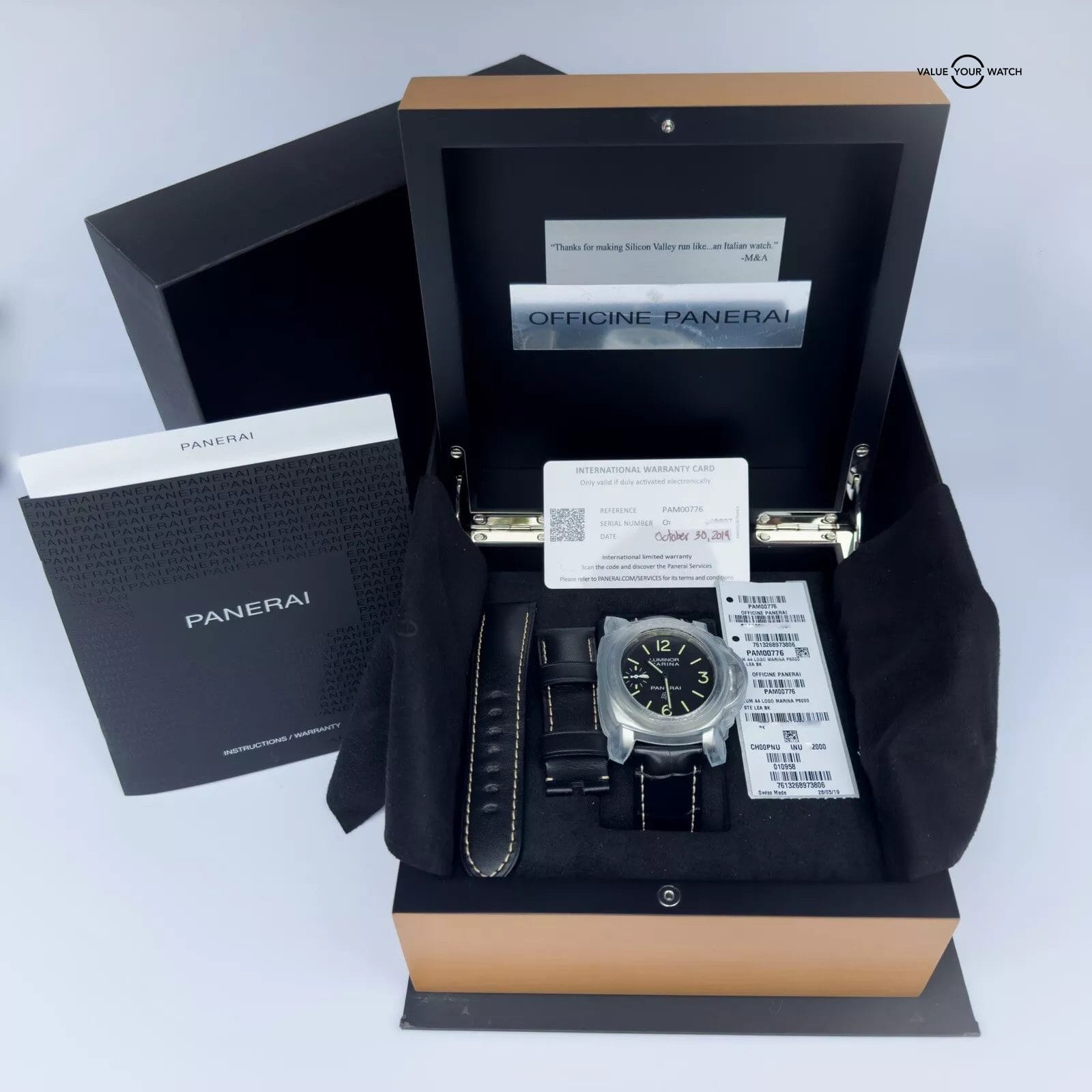 Specification: Panerai Luminor Logo Marina PAM776 Acciaio 44mm Full Set Leather Straps PAM00776