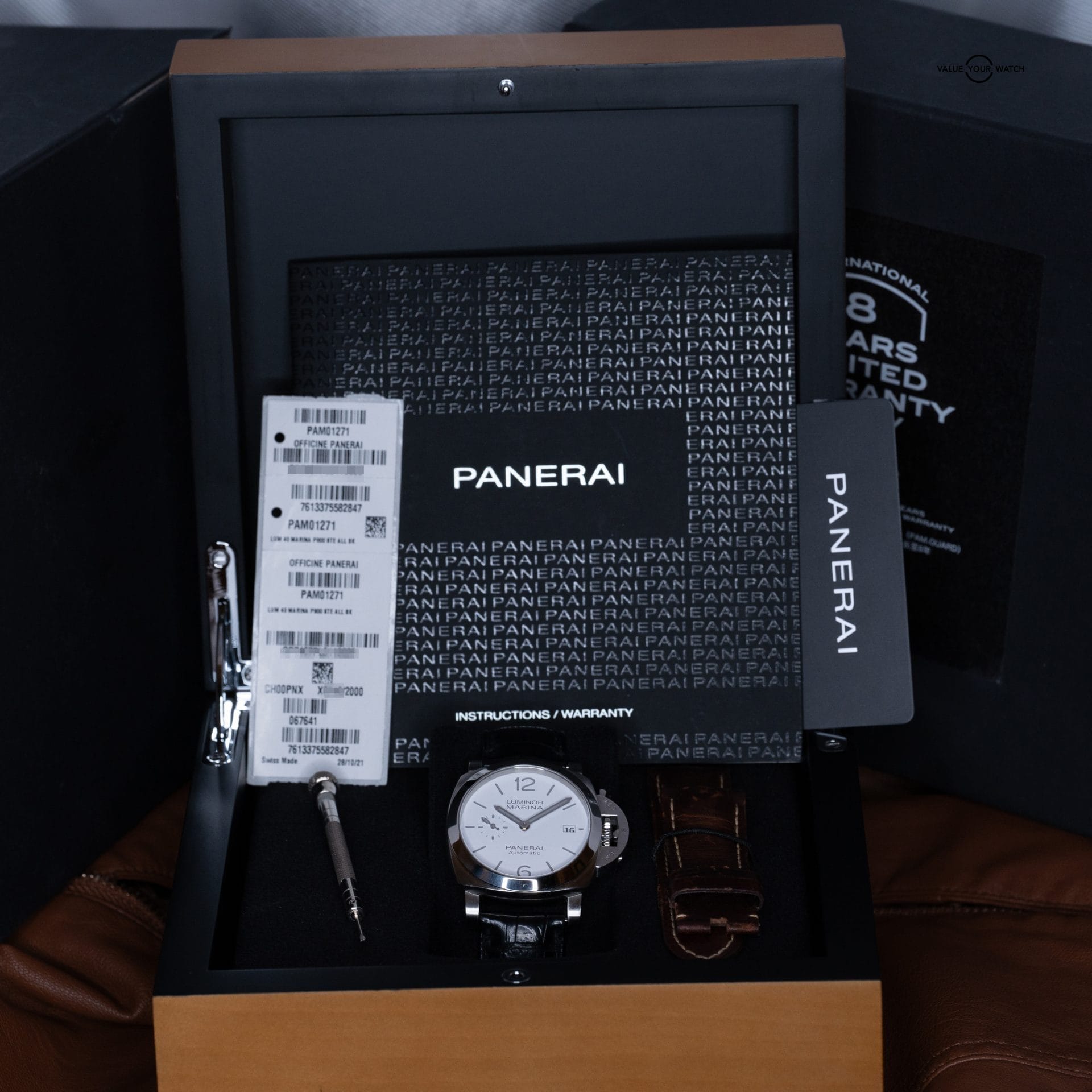 Panerai Luminor Marina 1271 Luminor Marina Quaranta White Dial Leather Complete Warranty 40mm PAM 1271 PAM01271
