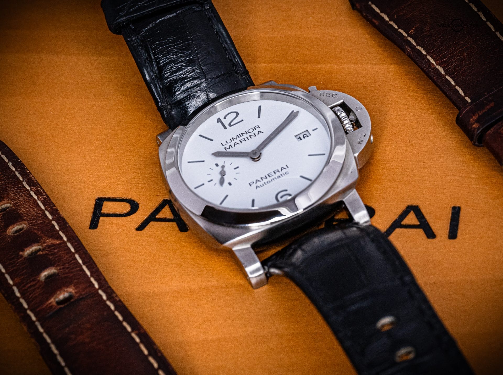 𝐂𝐨𝐧𝐝𝐢𝐭𝐢𝐨𝐧: In excellent pre-owned condition, the watch shows minimal signs of wear. It is currently paired with a Black PAM alligator strap. The crown guard has some light wear, but it remains in great condition overall.