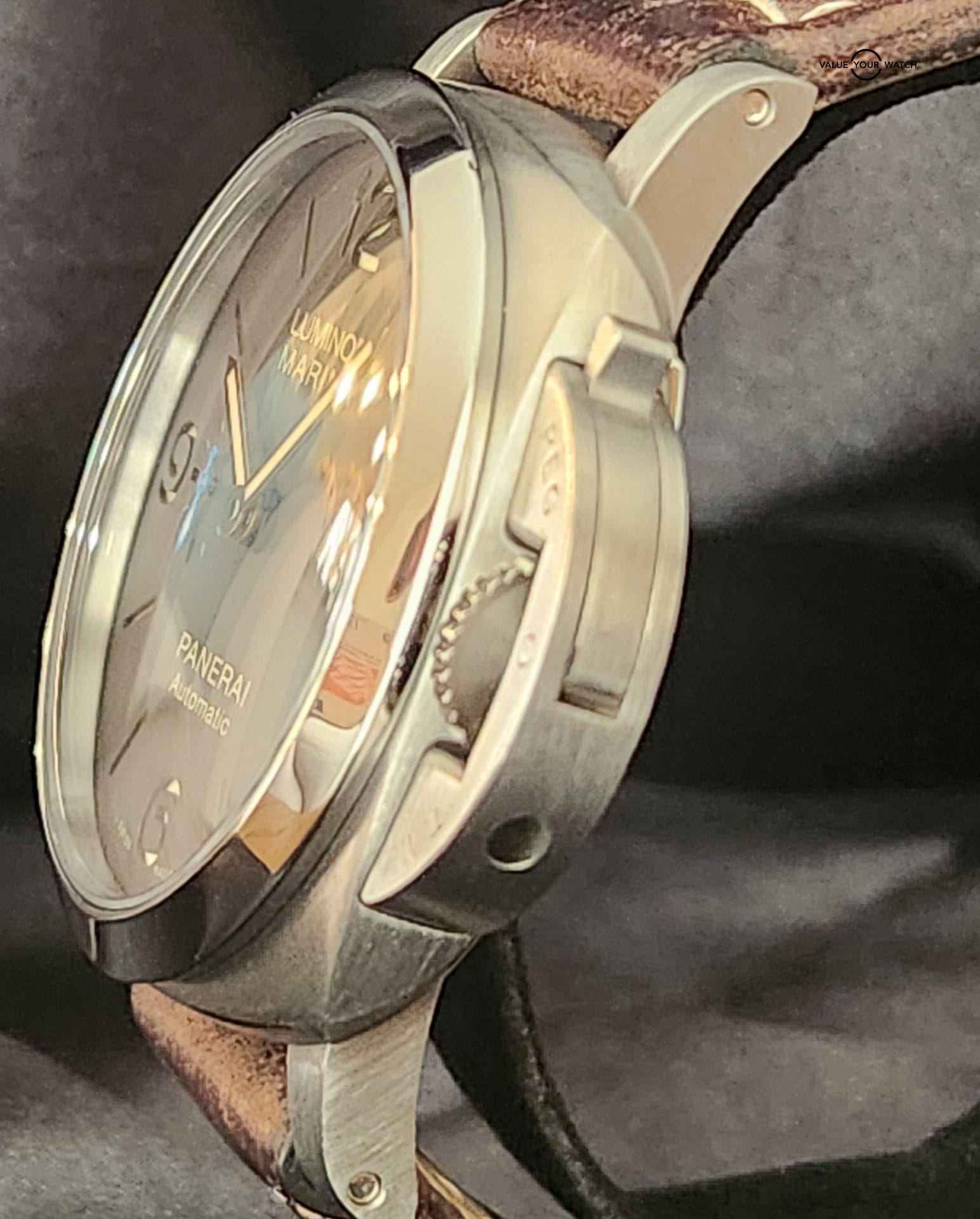 This watch is in very good condition and comes as a complete set with an extra strap. A well-rounded PAM01351 that offers the appeal of titanium construction, practical automatic performance, and the warm character of Panerai’s brown dial references.