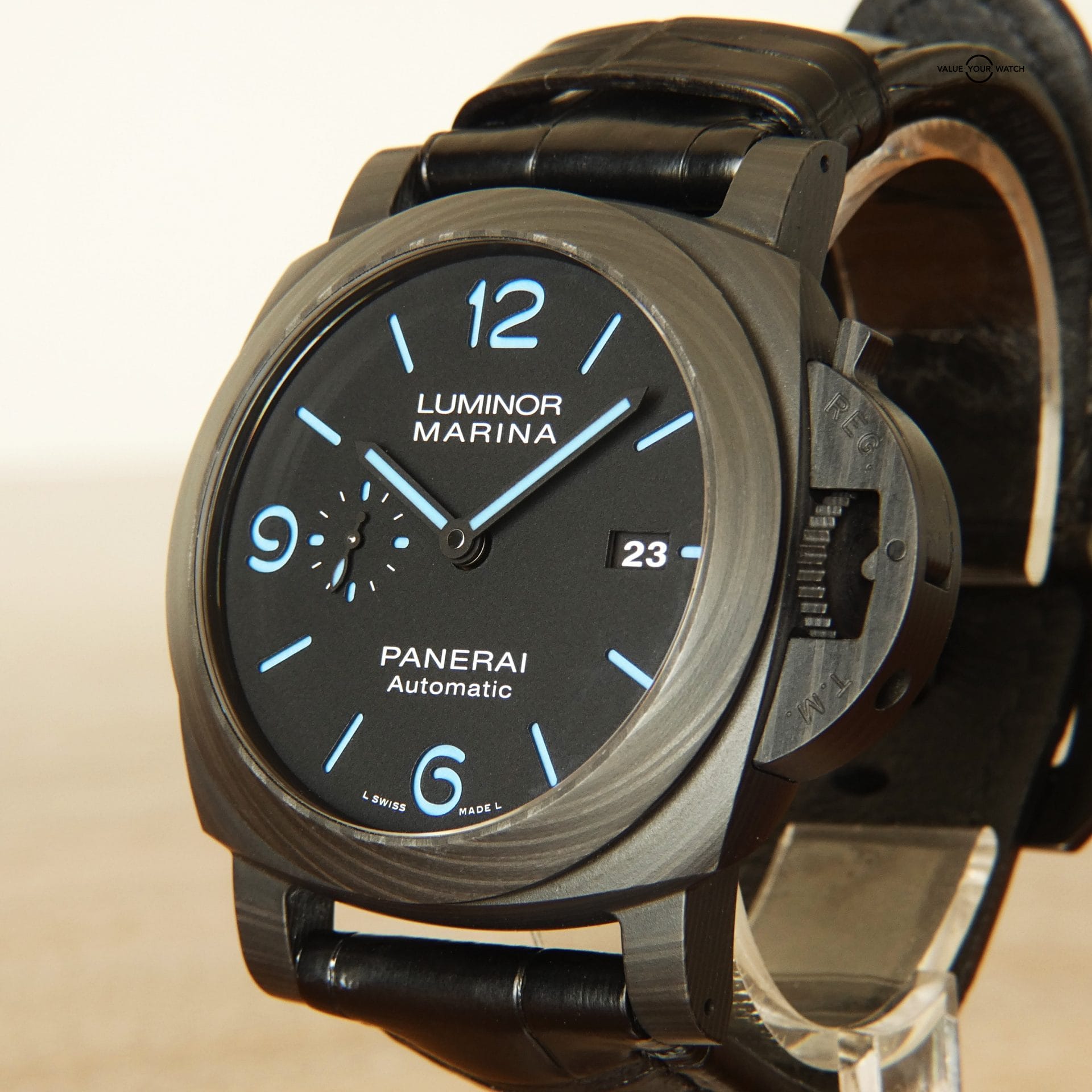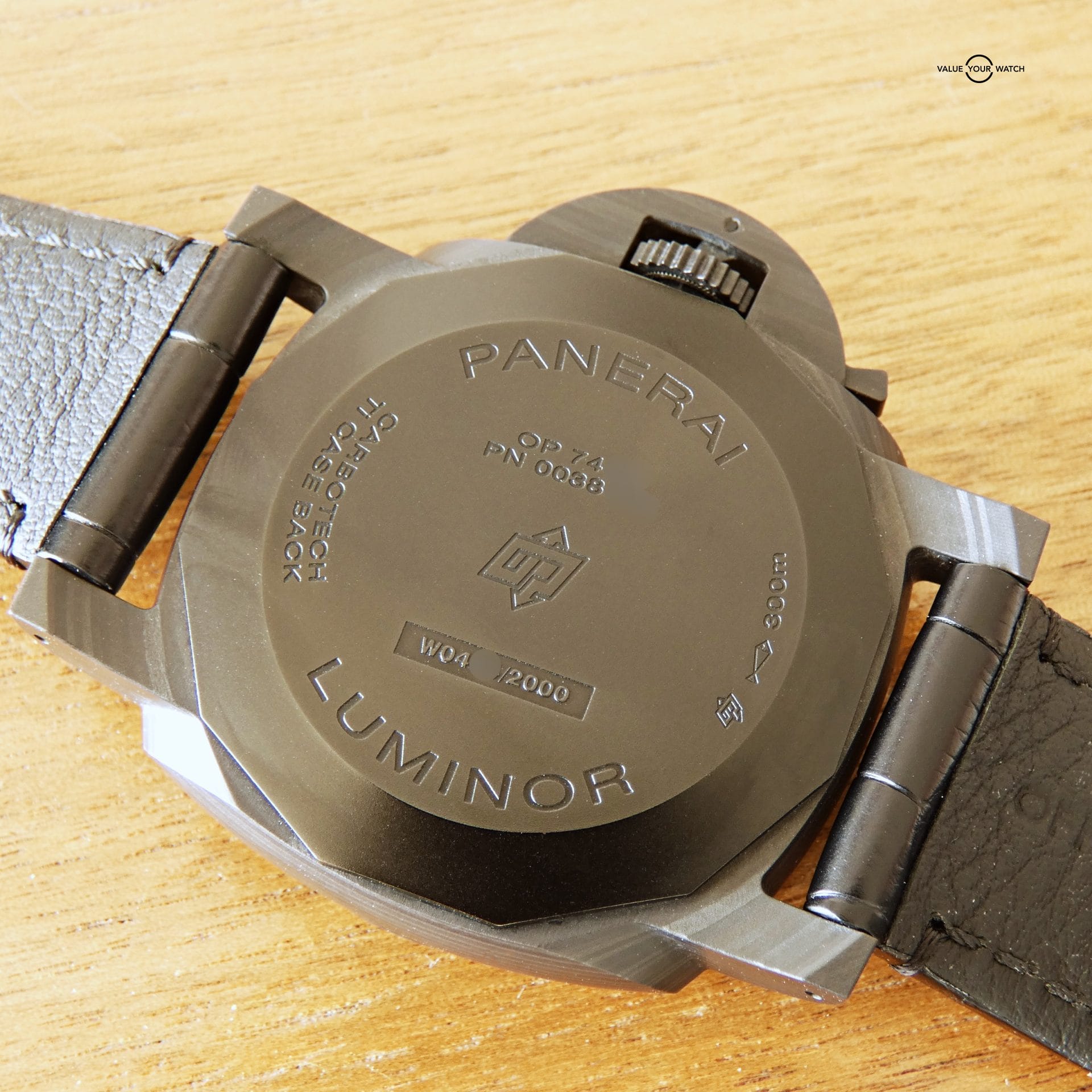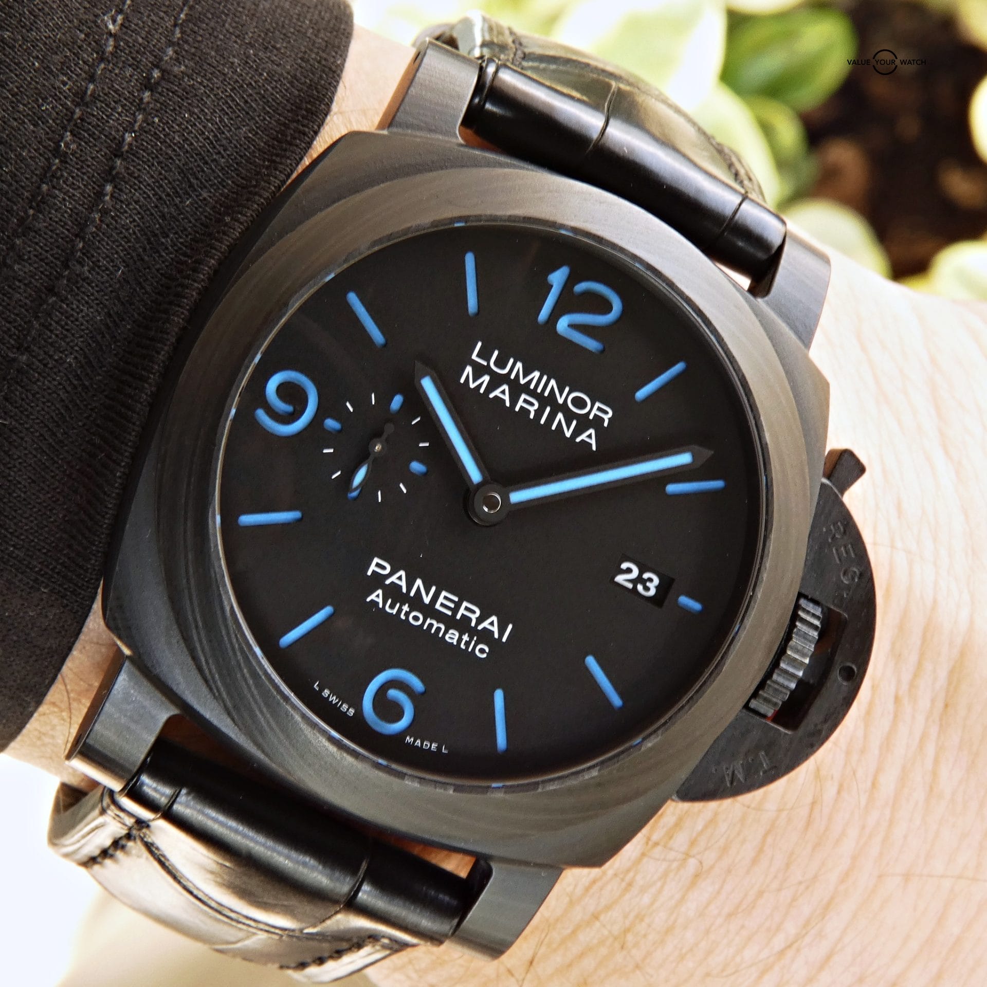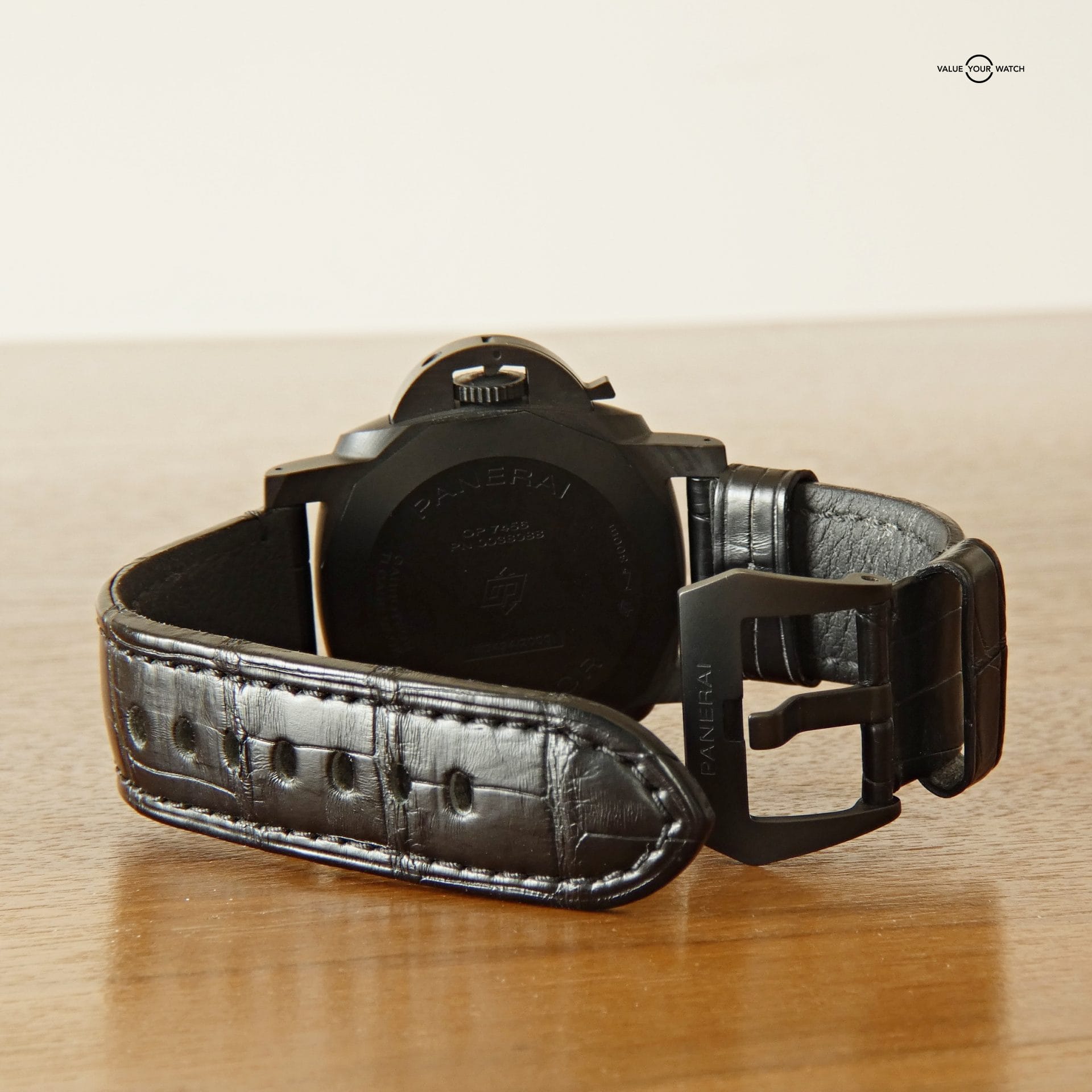 • Strap: Original Panerai black leather with black Panerai buckle.