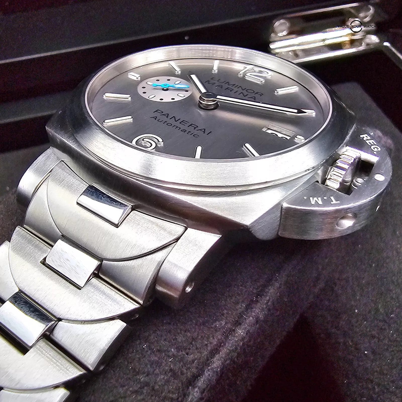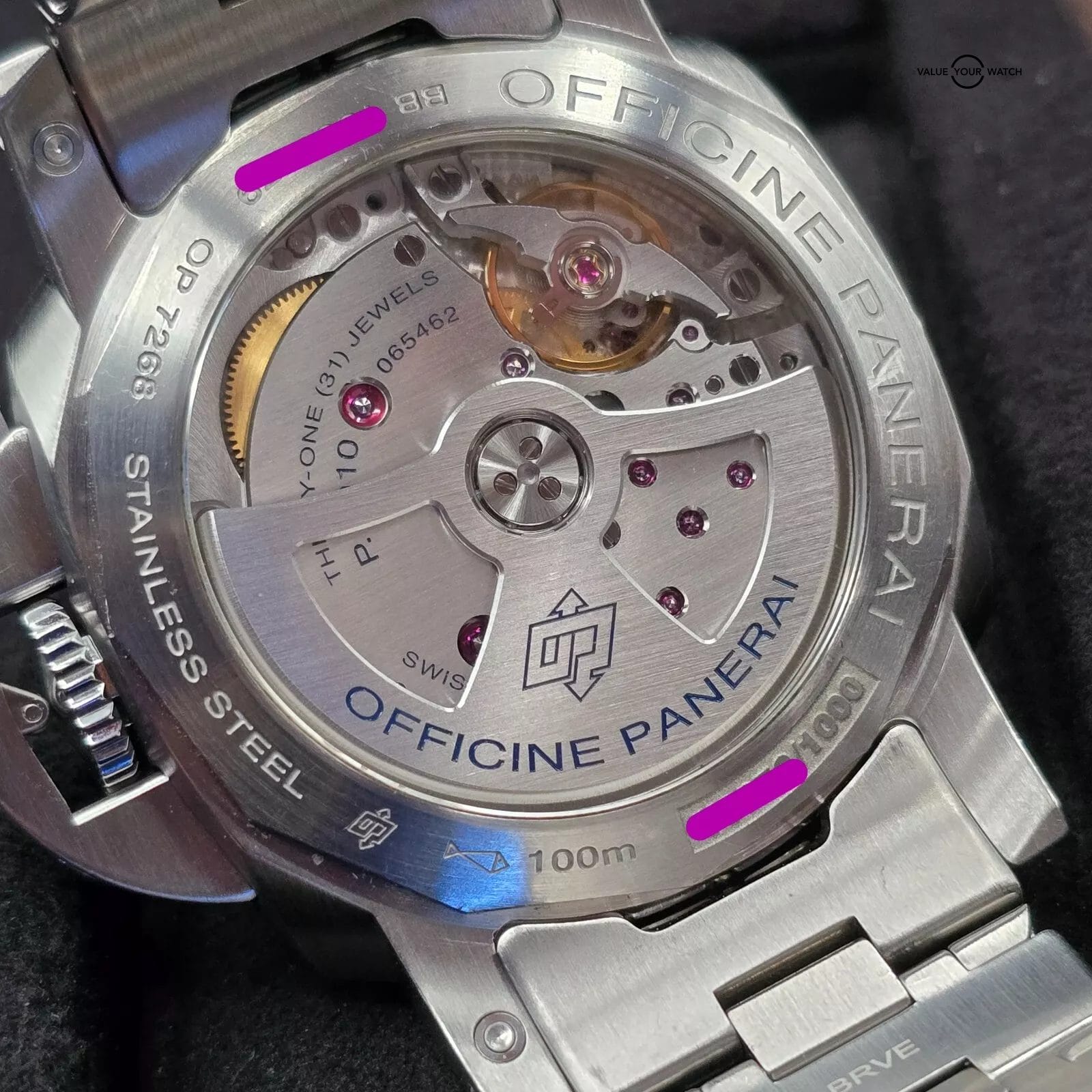 Specification: Panerai Luminor Marina in 1950 42mm casing on steel bracelet! ref. PAM00977 977