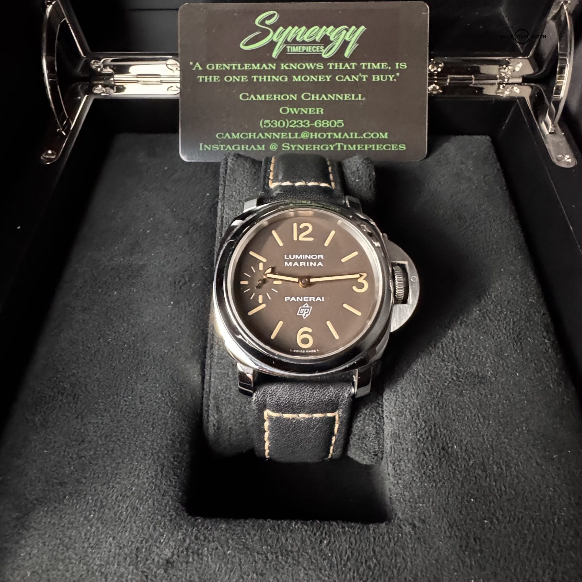 This beautiful “tropical” brown dial Panerai is a unique color-way in the Panerai lineup with its contrasting beige indices. Set against the rose gold hands and polished stainless steel case, it has amazing wrist presence. This piece is dated 2017 and is a complete set that is in MINT condition.
