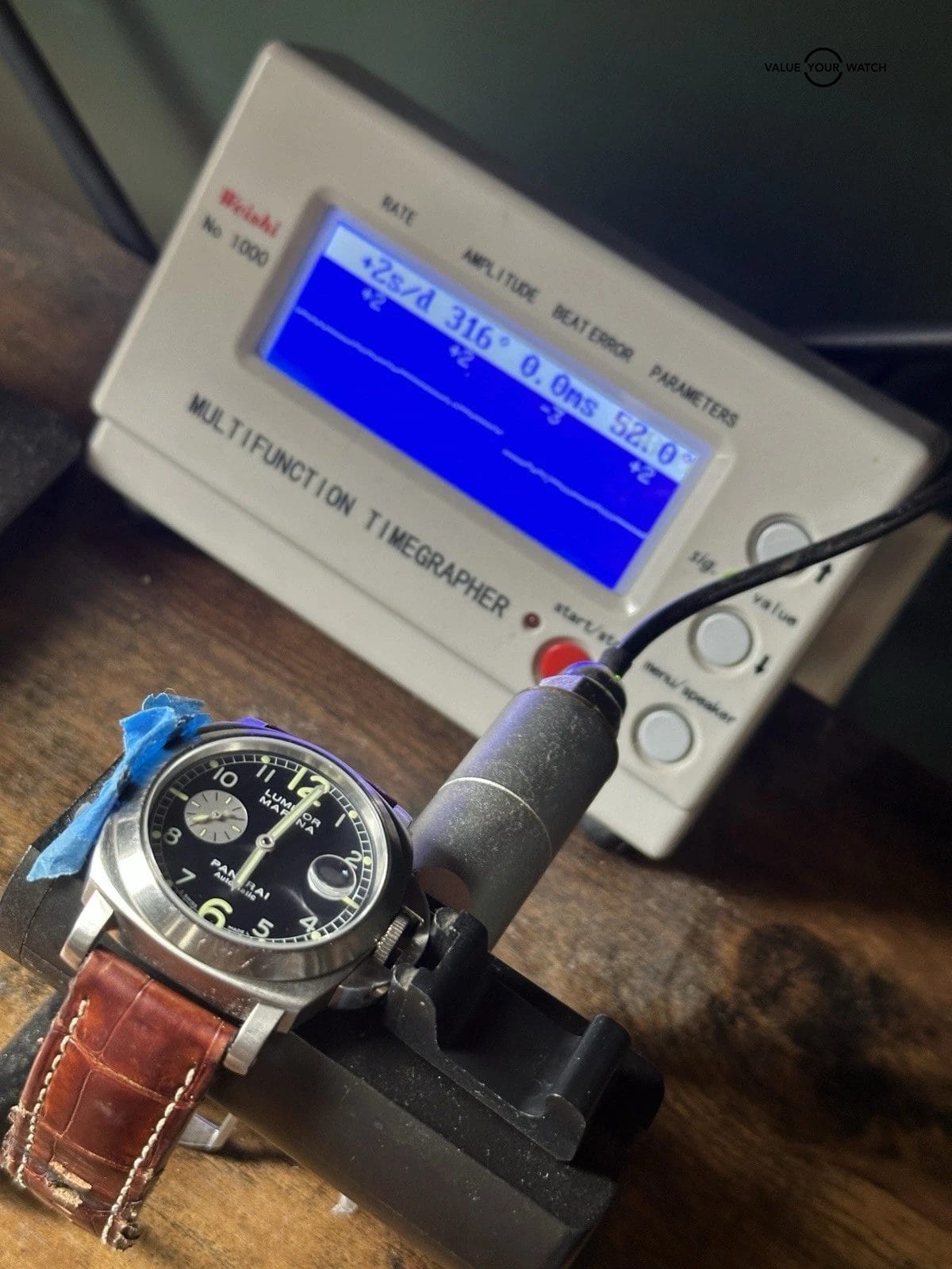 – Clean Crystal and dial. Runs great. Case shows some wear. Strap is very nice with very little if any use.