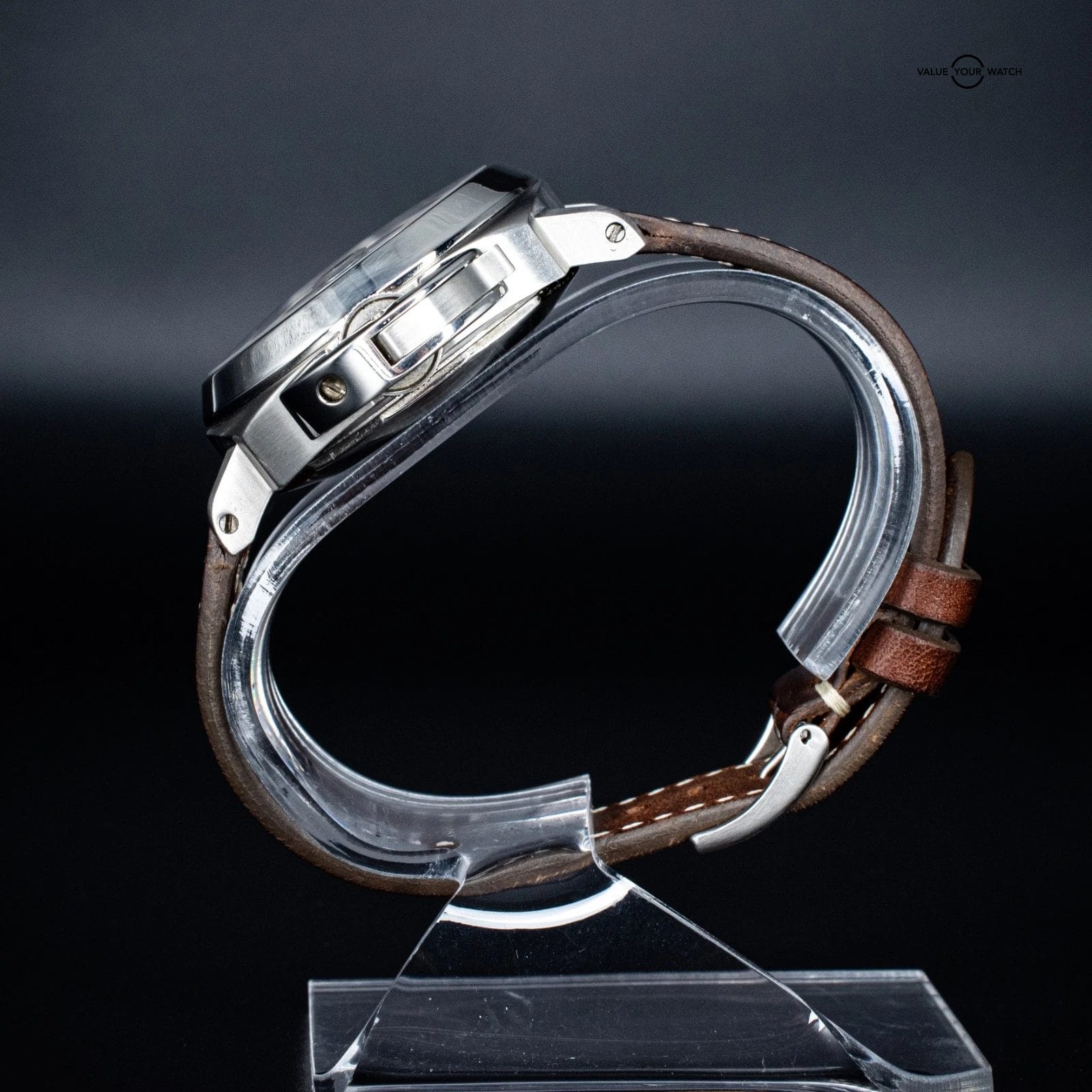 The Panerai PAM00159 offers the unmistakable Luminor design in a less common 40mm case, making it a standout for collectors who prefer a more compact fit. Its matte black dial features luminous Arabic numerals at 12 and 6, complemented by round hour markers and a central GMT hand for second time zone tracking. The date window at 3 o’clock and small seconds subdial at 9 add balance and functionality, while the classic crown guard gives it true Panerai presence. Inside, the automatic OP VIII movement—based on the ETA 7750-P1 sans chrono—provides reliability and easy servicing. This piece is fitted with a beautiful brown Bulang and Sons leather strap, which enhances its warm, vintage-inspired look. The PAM159 is no longer in production and has become increasingly hard to find, especially with original box and papers.