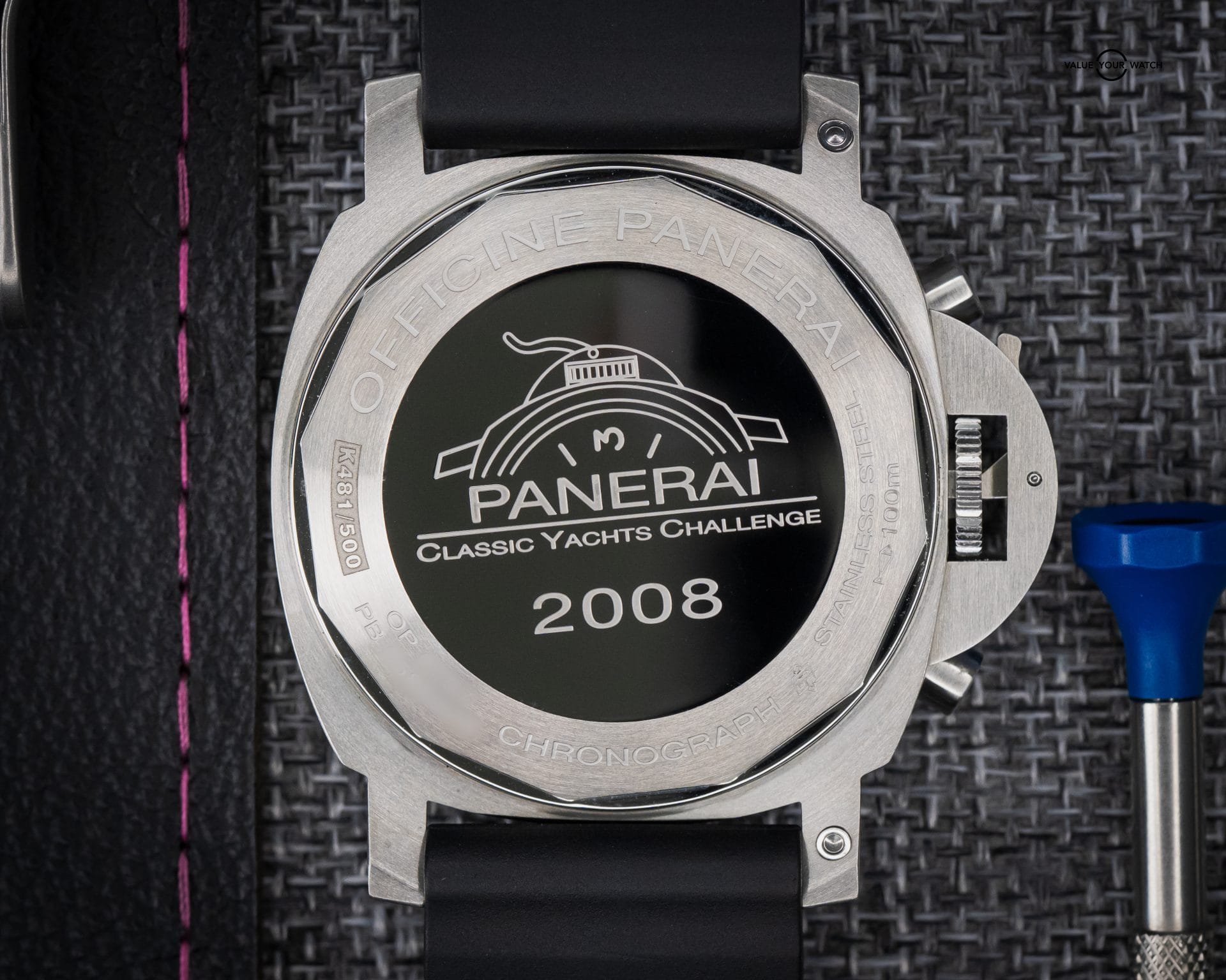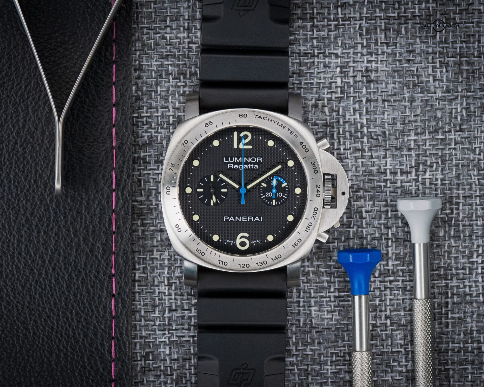 The PAM00308 isn’t just a chronograph — it’s a numbered piece of Panerai history. Released as part of the 2008 Special Editions collection and limited to only 500 pieces worldwide, this Luminor Regatta commemorates the prestigious Panerai Classic Yachts Challenge. Between its crisp hobnail-textured dial, vibrant blue Regatta accents, and full collector’s set, this example remains completely unworn, down to the original hangtag still attached.