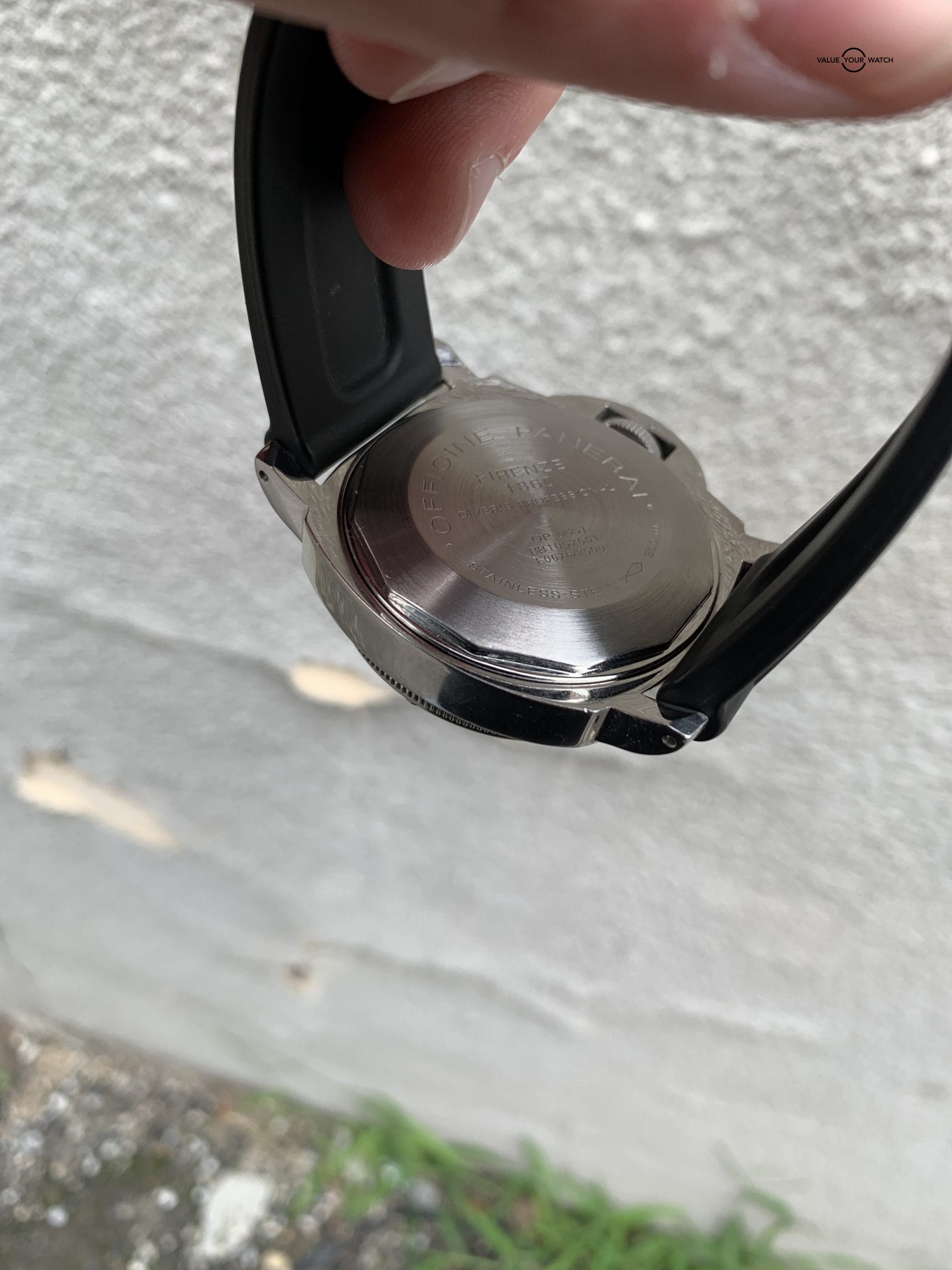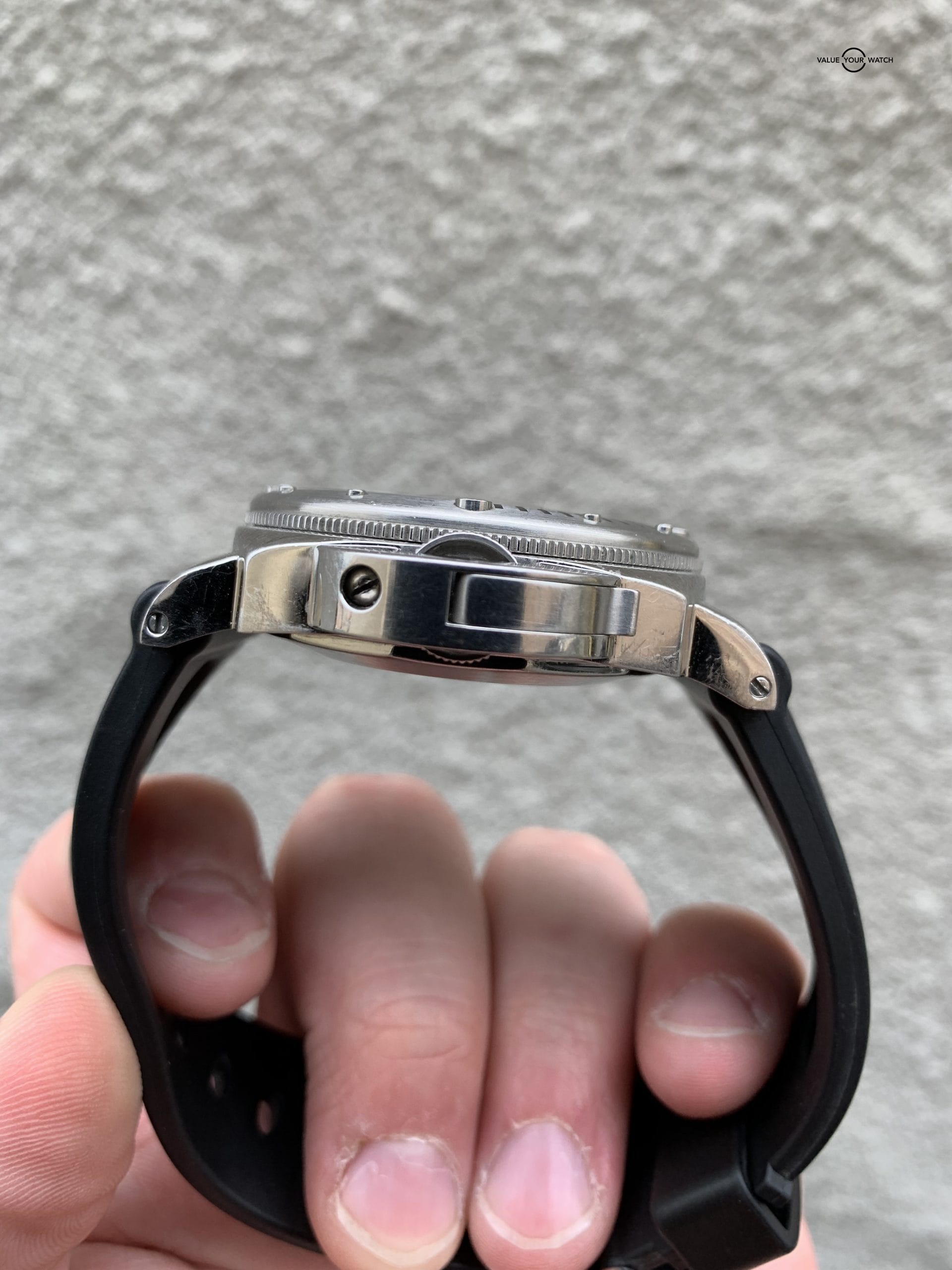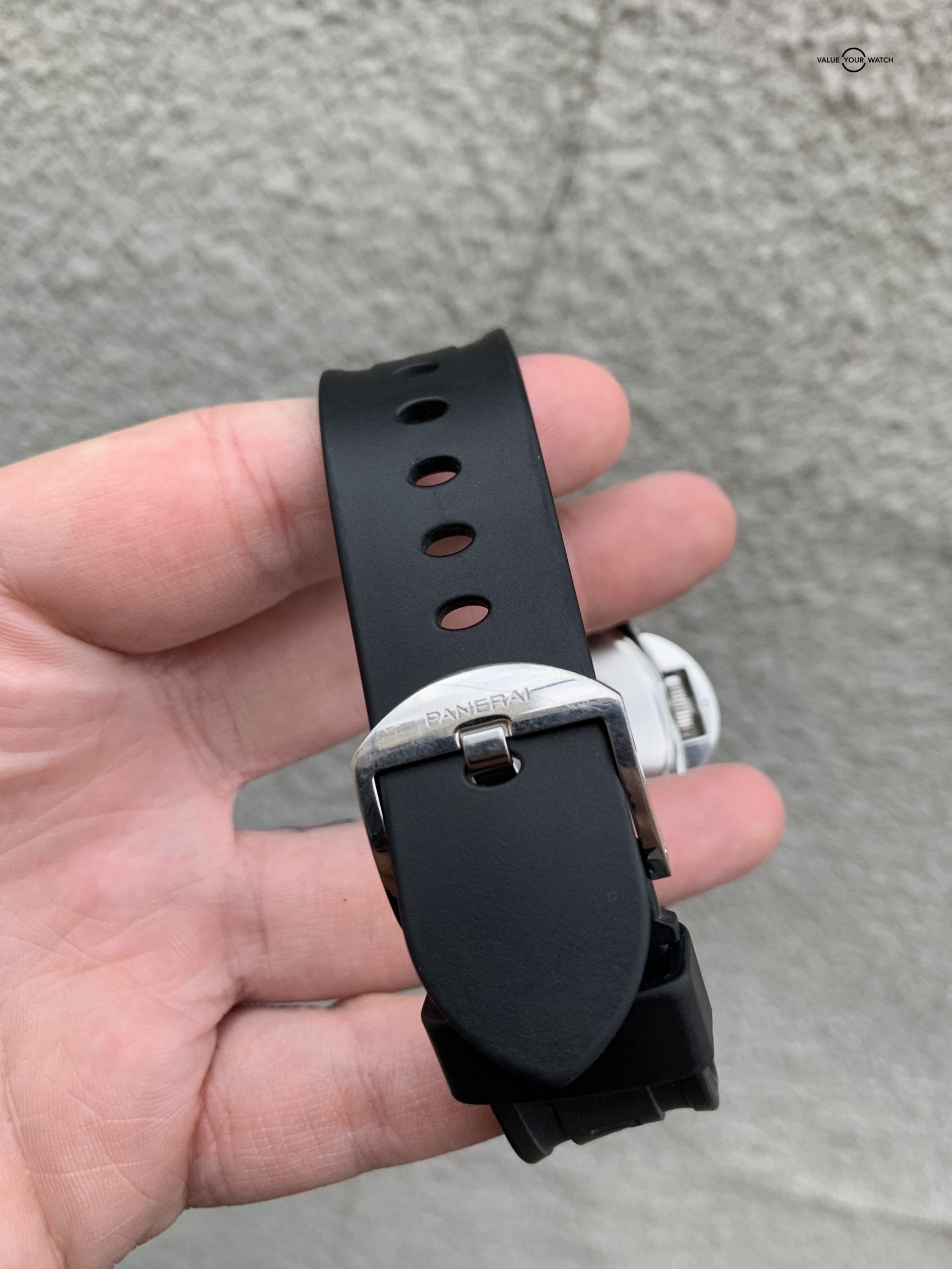This Panerai features an OPIII self-winding automatic movement with an approximate 42 hour power reserve! The watch comes on an original Panerai black rubber strap with a stainless steel Panerai buckle. With adjustments to accommodate any size wrist, this strap does not need to be cut to size.