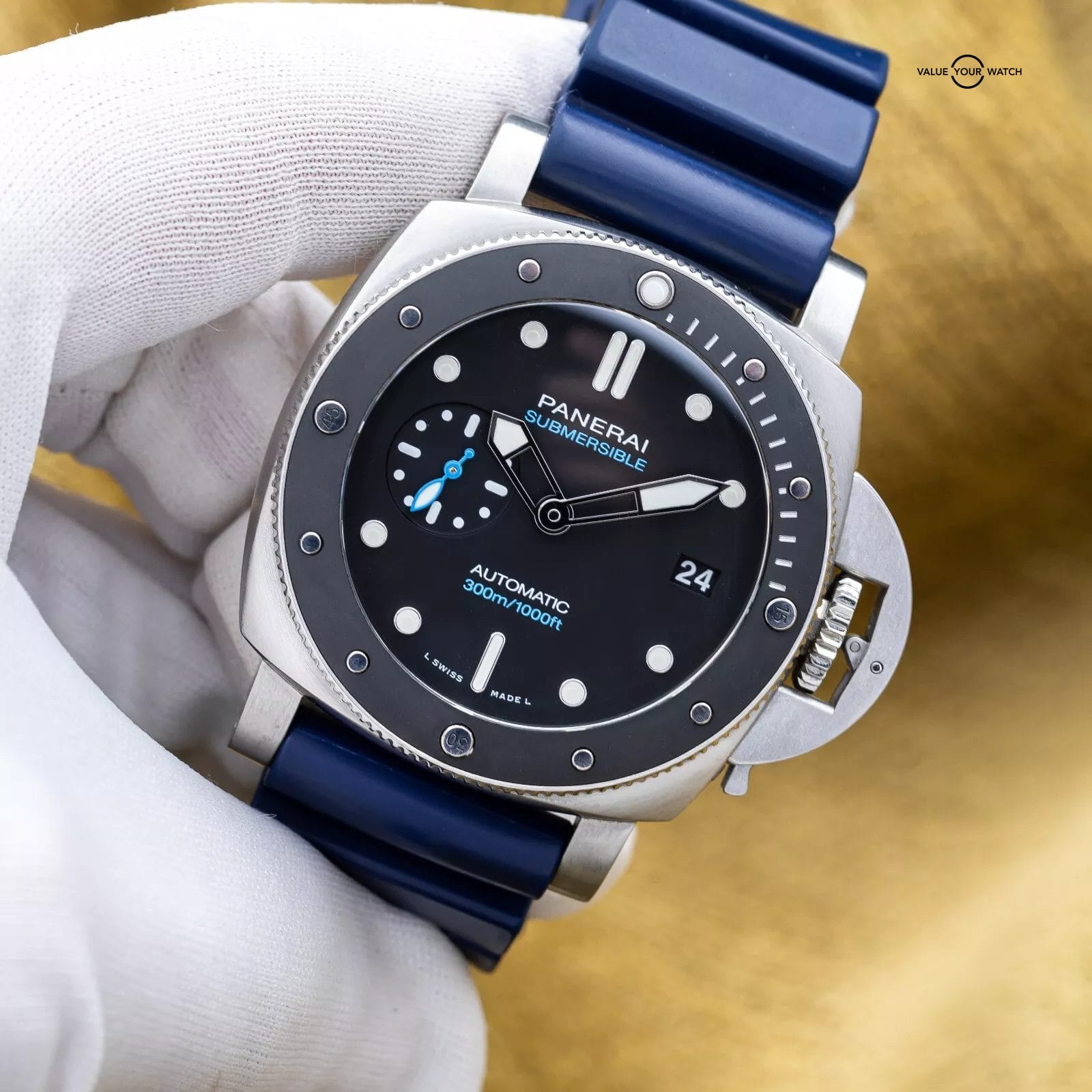 This watch is in great shape since being purchased from Panerai in 2021. It is under Panerai warranty until 2029 so you have the peace of mind knowing you are covered for a very long time to come. This piece is one of 2000 manufactured and has a serial number range ‘X’. It comes with 2 authentic Panerai straps, one black rubber and one black canvas with contrasting blue stitching, so you can change up the look of this watch to suit your mood and activities of the day. Don’t miss your chance to pick this one up at a fraction of the retail cost!