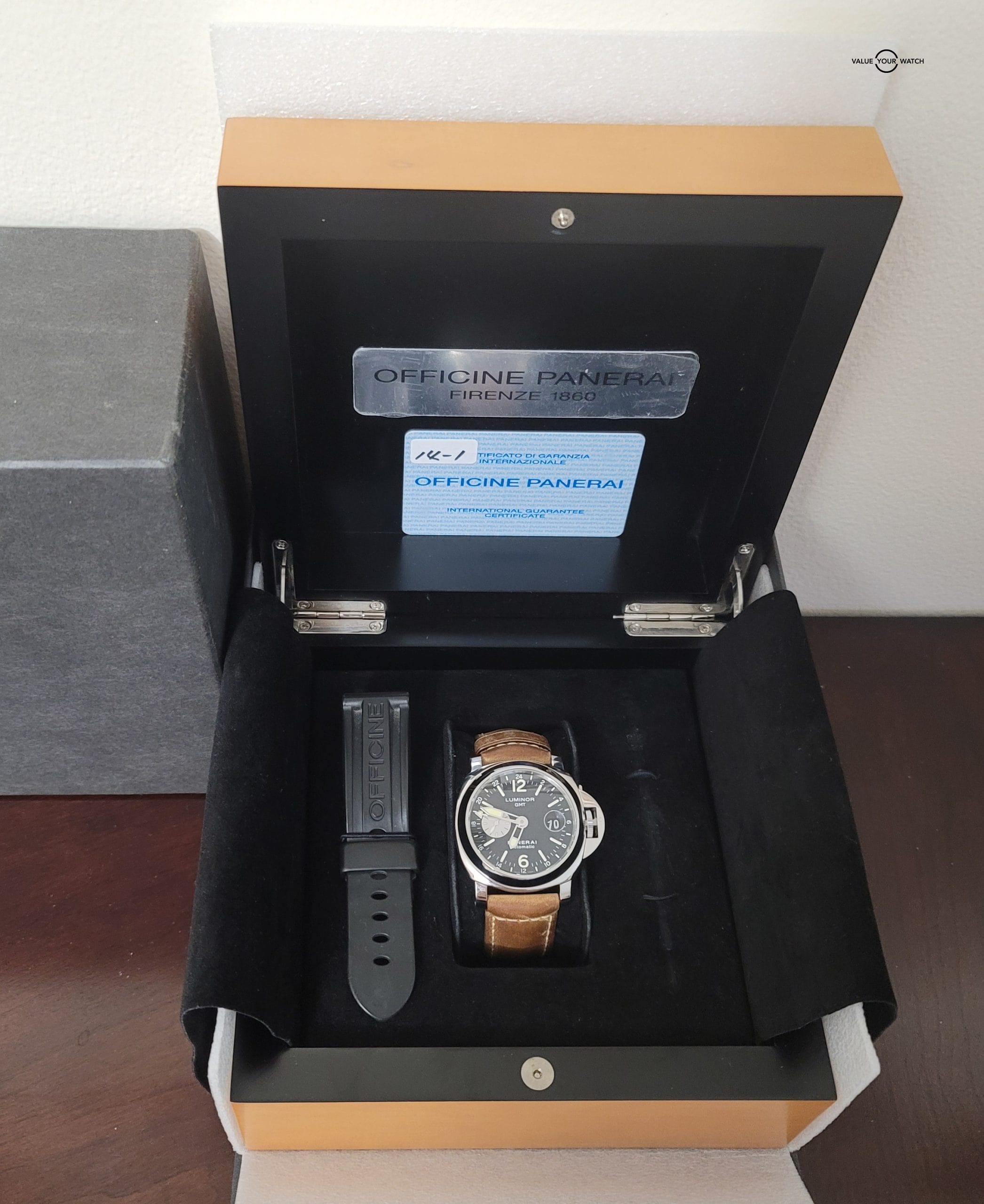 Panerai 00088 Pam 88. if you know about this brand this model is a must in any Pam collector box. the watch was professionally polished and it is in mint condition the stainless steel case is perfect. the band show some sign of wear but still plenty of life. the watch was time tested and it is running excellent. included watch, box and open date warranty card. also has rubber band but it is in really bad condition. N serial from 2011.