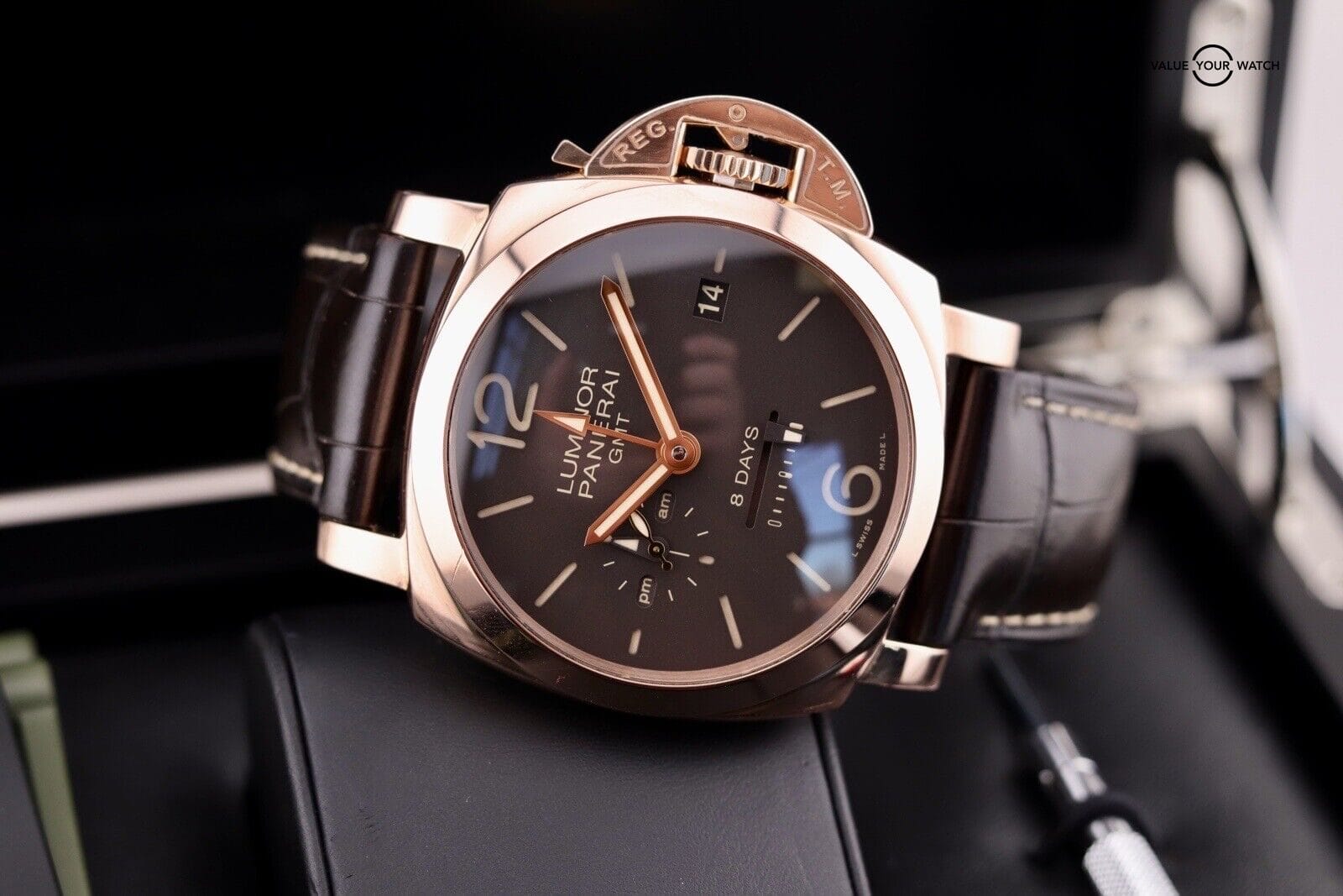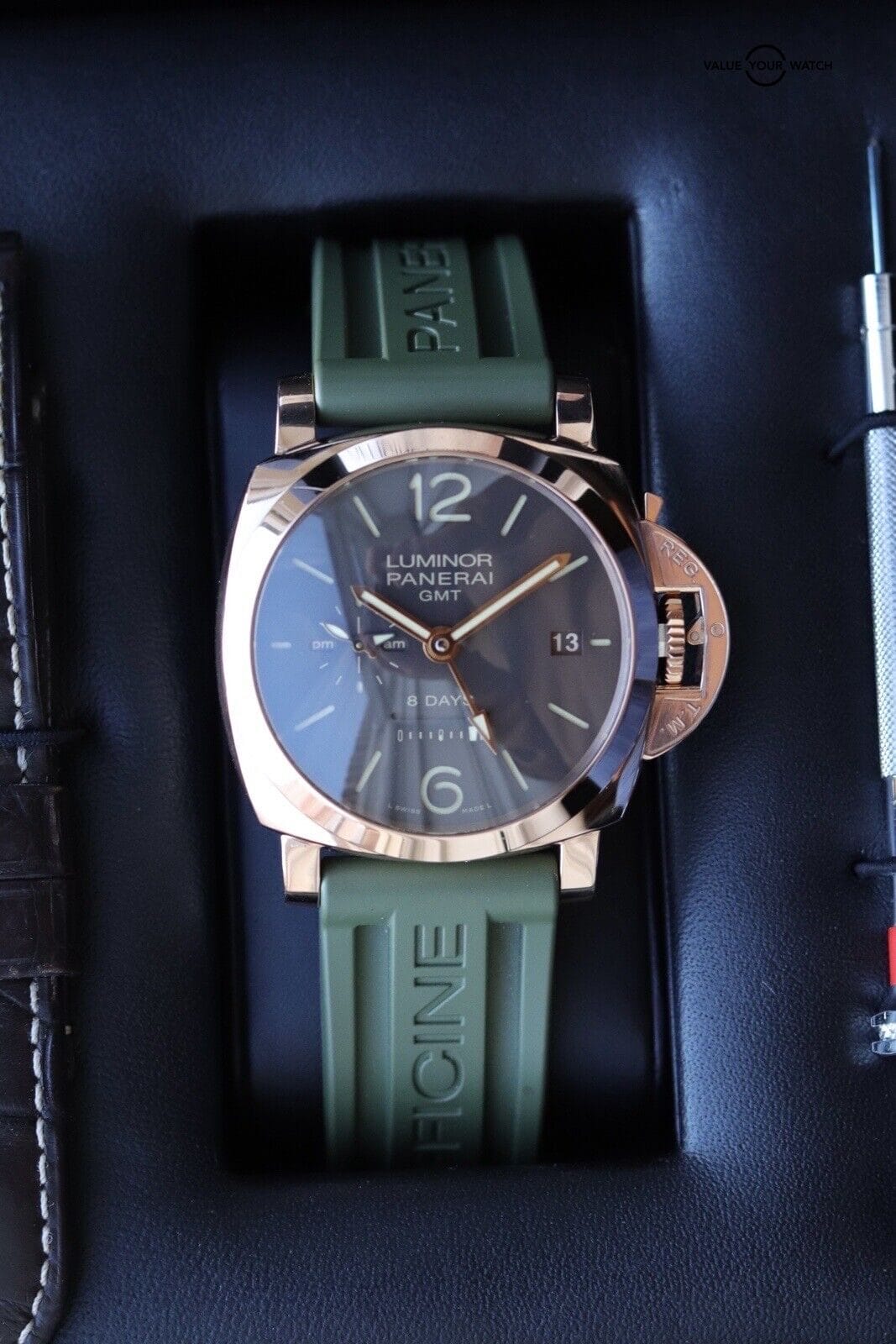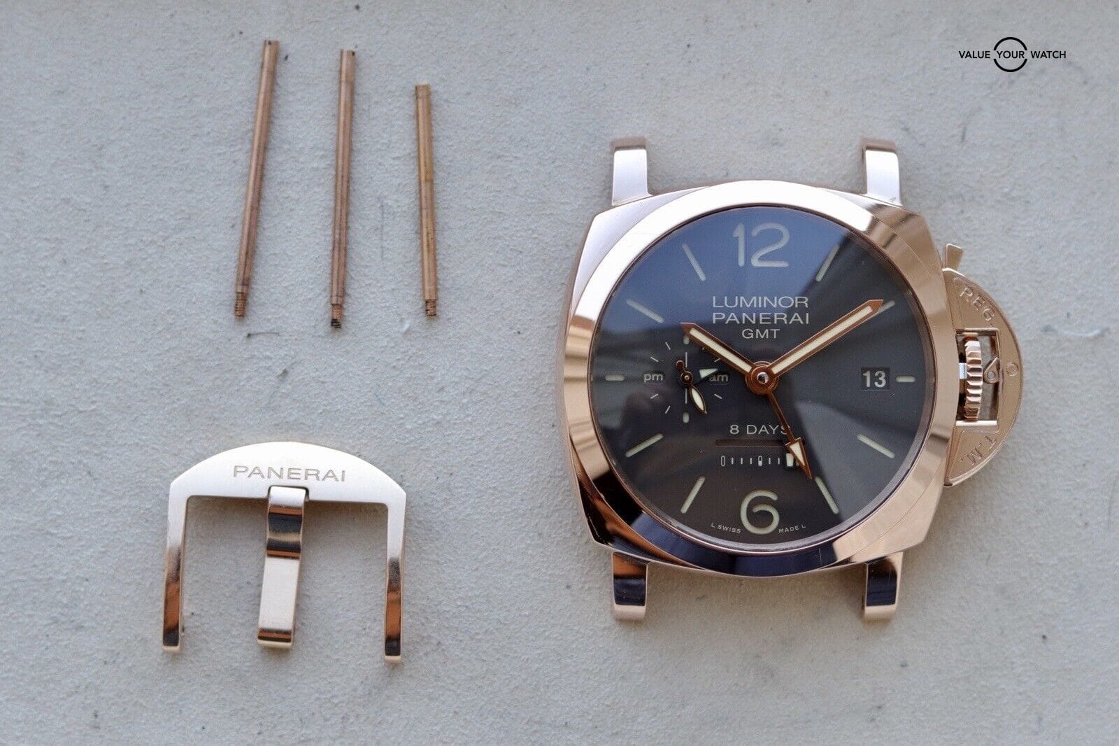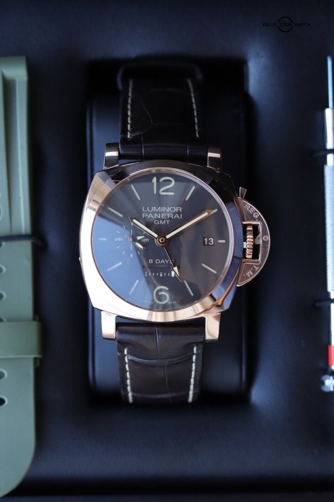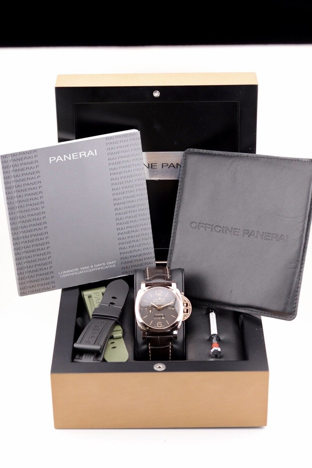 ROSE GOLD Panerai Luminor 1950 8 Days GMT | PAM00576 | B&P + 3 OEM Straps