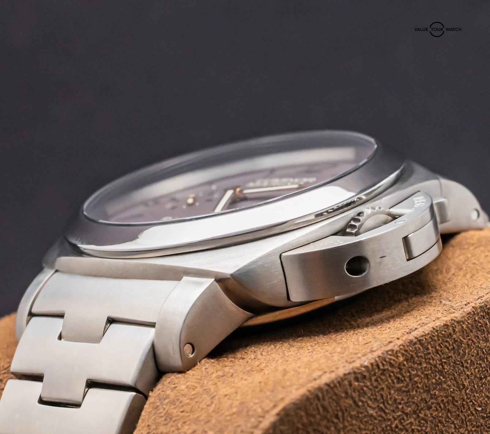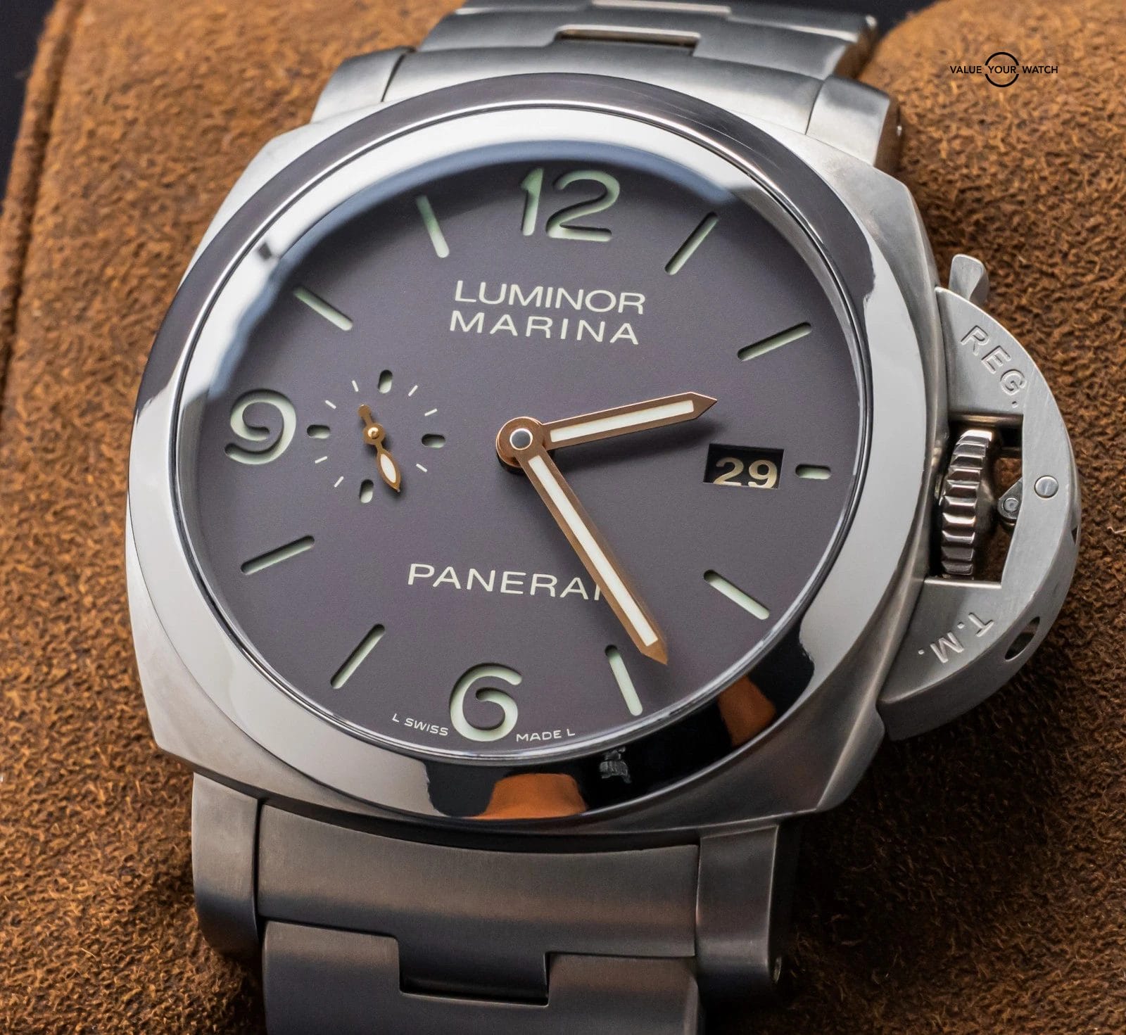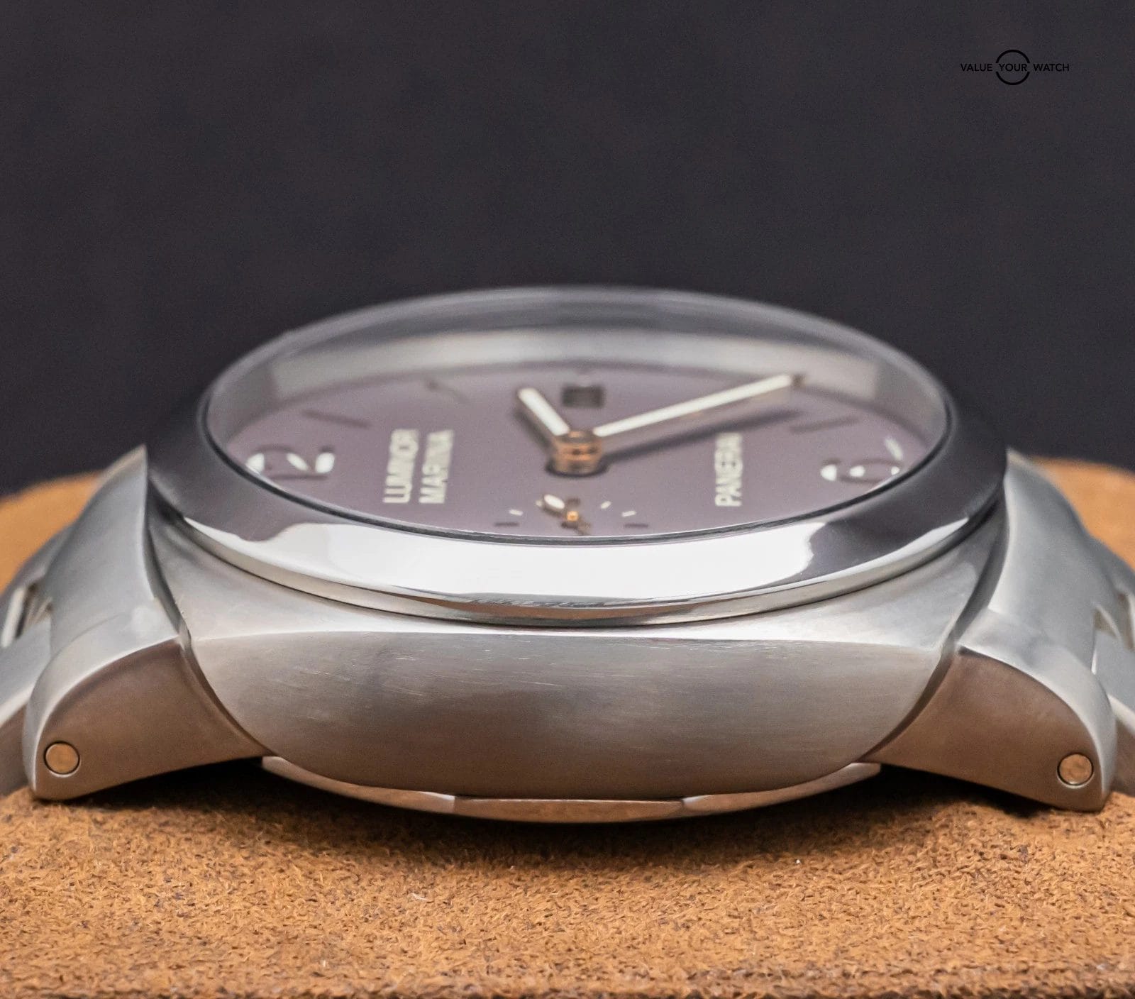 STRIKING Panerai 352 Luminor Marina 44 mm with Brown Dial, 1950 Titanium Case, 3 Day Power Reserve, on Matching Brushed Titanium Panerai Bracelet! Arrives as watch only and is a a great value on the secondary market. Stunning piece on wrist!