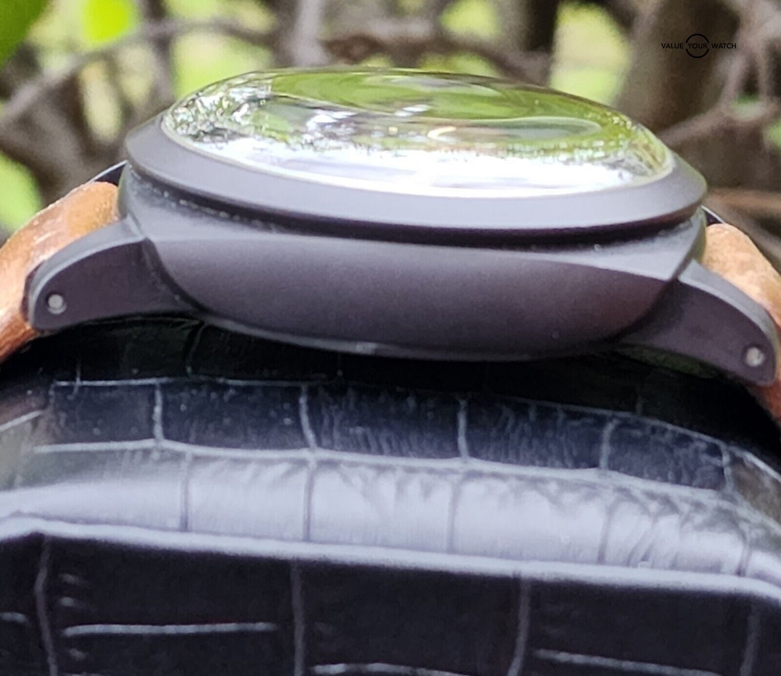 Showcasing a Panerai exclusive limited edition composite innovation of aluminum case bonded with hard ceramic surface. The domed crystal stands out with light refraction and gleam. The color combination of dark brown case and tobacco brown dial makes this a unique and versatile combination that can be worn for any occasion. This has been one of my all time favorite pieces!