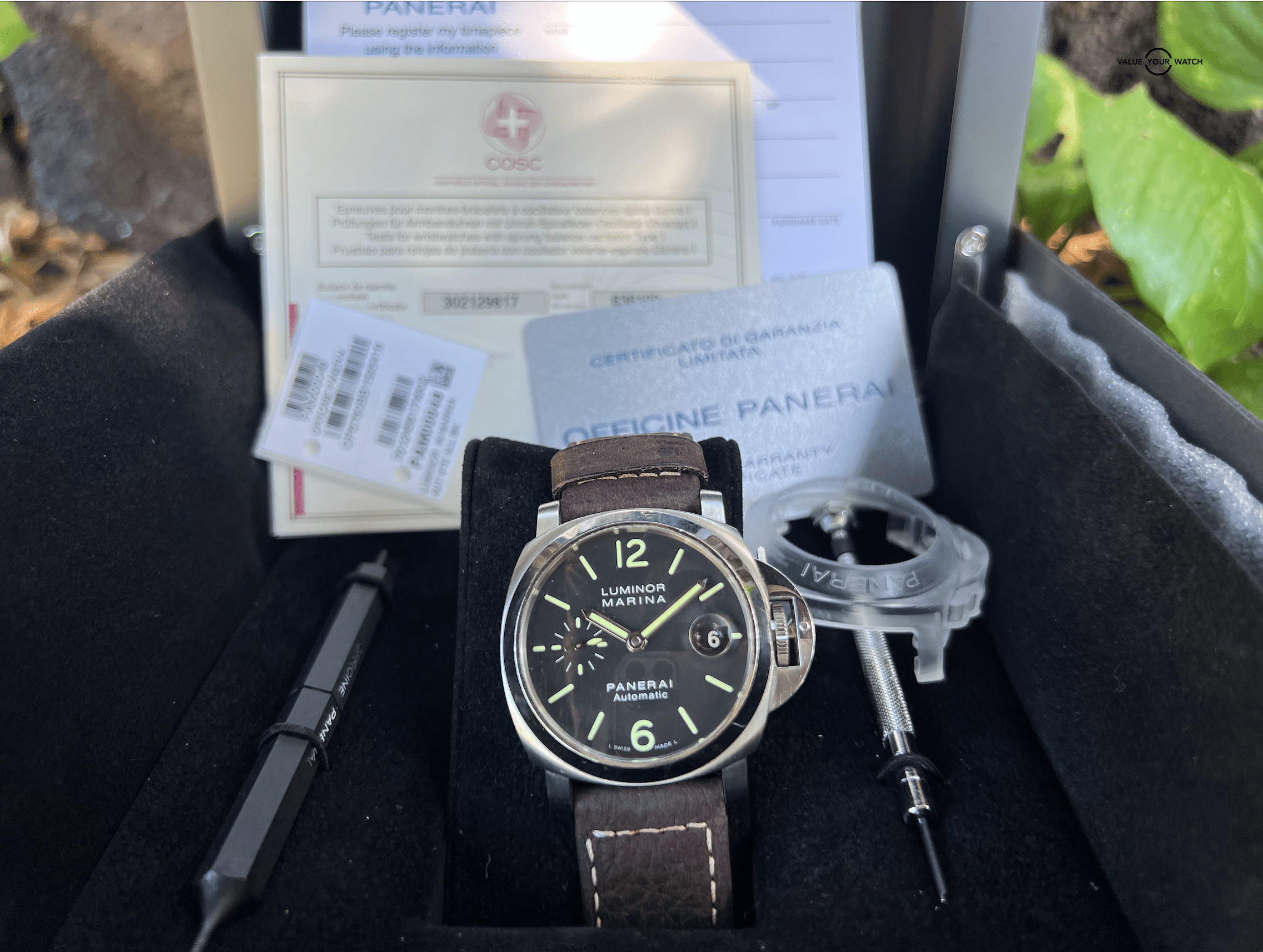Amazing looking Panerai 48 Luminor Marina with the deploy clasp. The timepiece comes with original triple box, papers and manual.