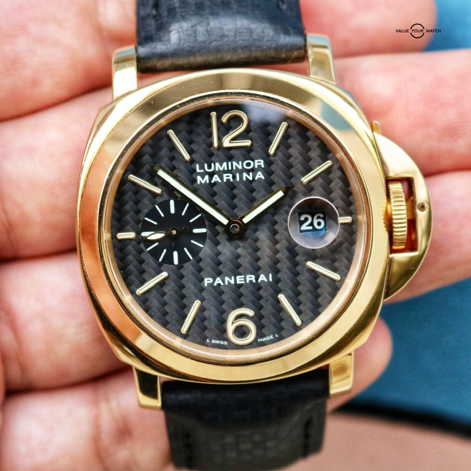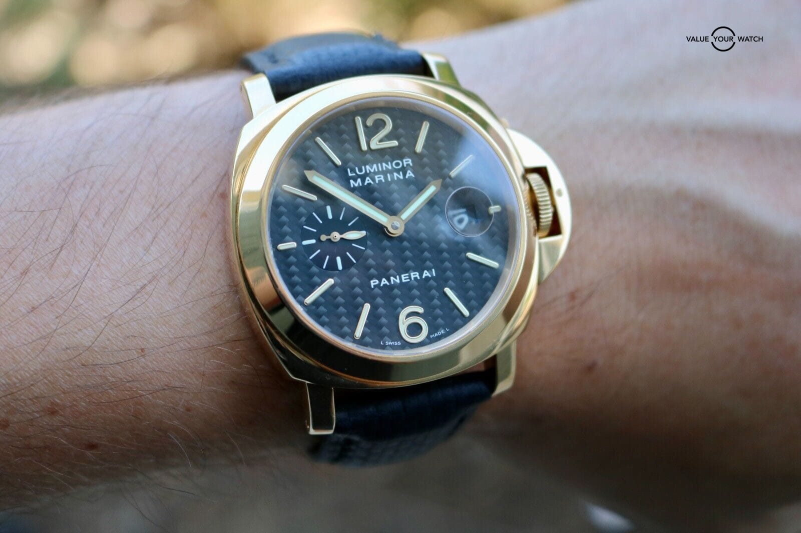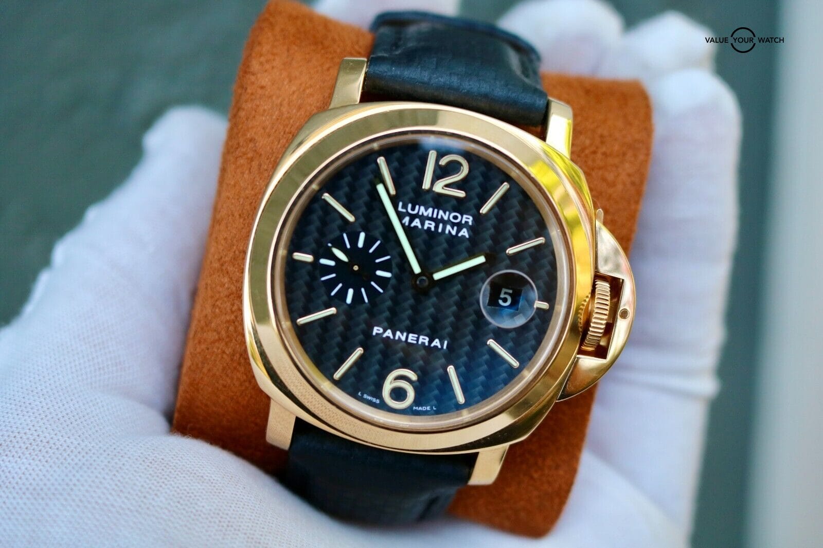 Up for sale is my Panerai Luminor 44mm PAM140 in Yellow Gold with a Carbon Fiber Dial.