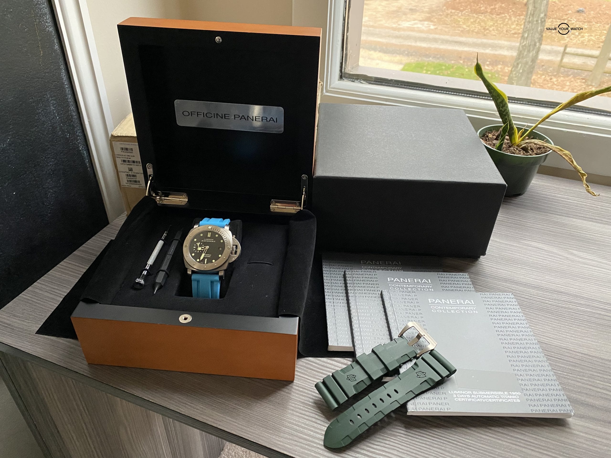 The watch comes as complete as they come – the triple box set, papers, all booklets, strap changing tools, and original Panerai strap in like new condition.