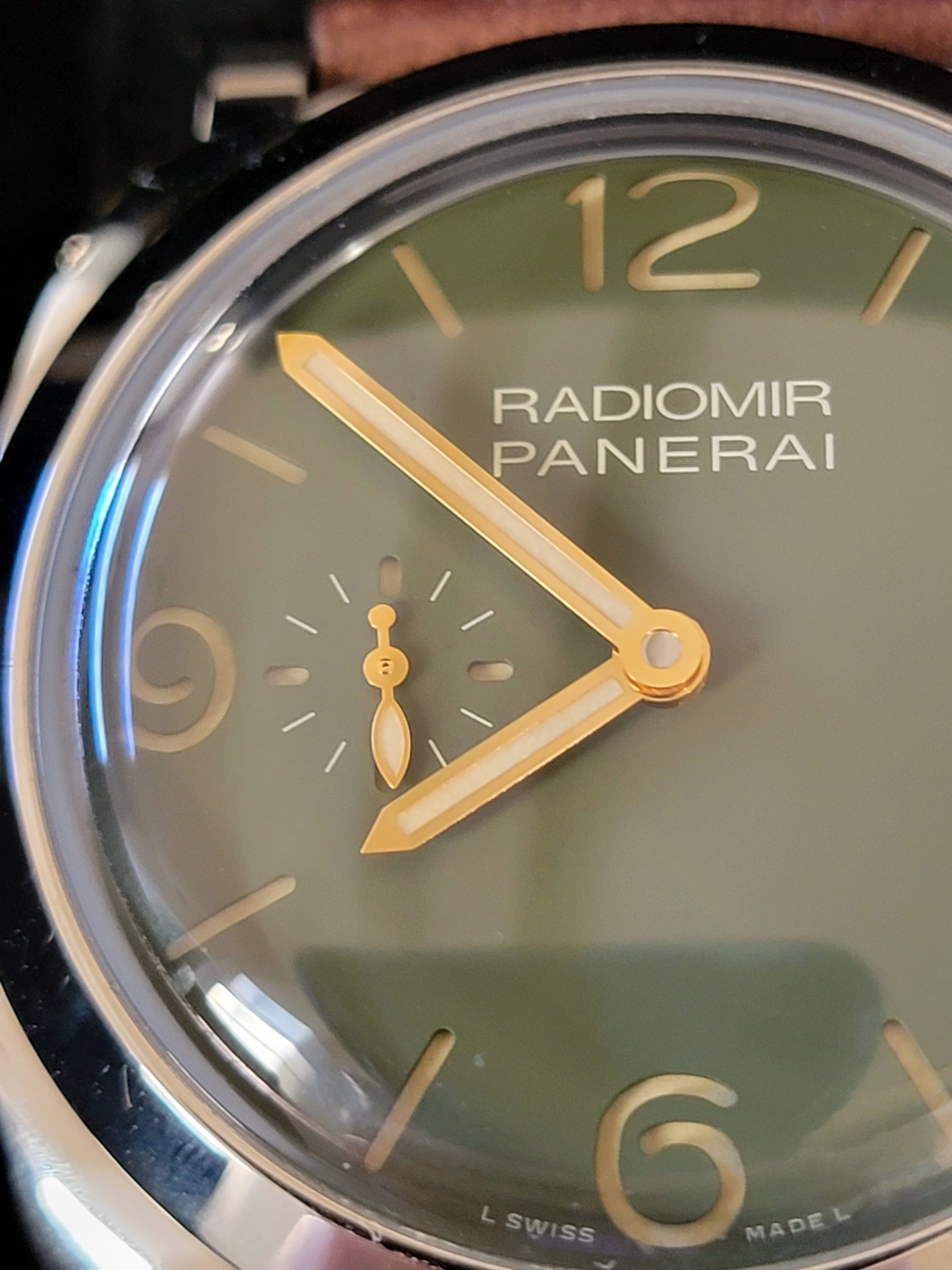 For your consideration is this beautiful pre-owned Panerai Radiomir 1940 3-Days self-winding automatic watch. 45mm stainless steel case surrounding a green dial on a calf skin brown strap with stainless steel buckle.
