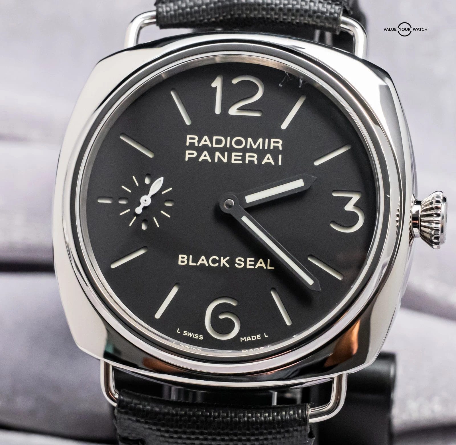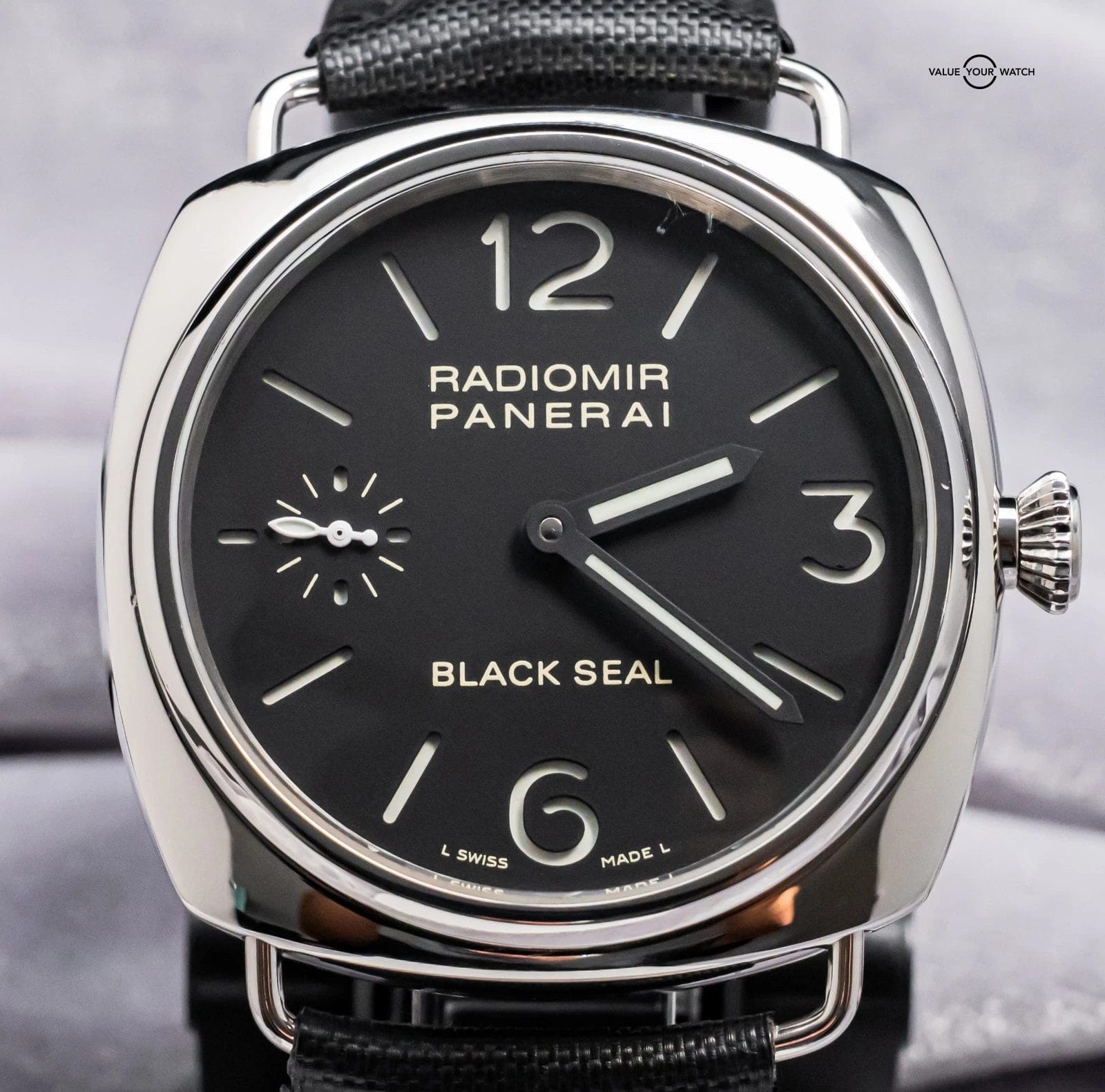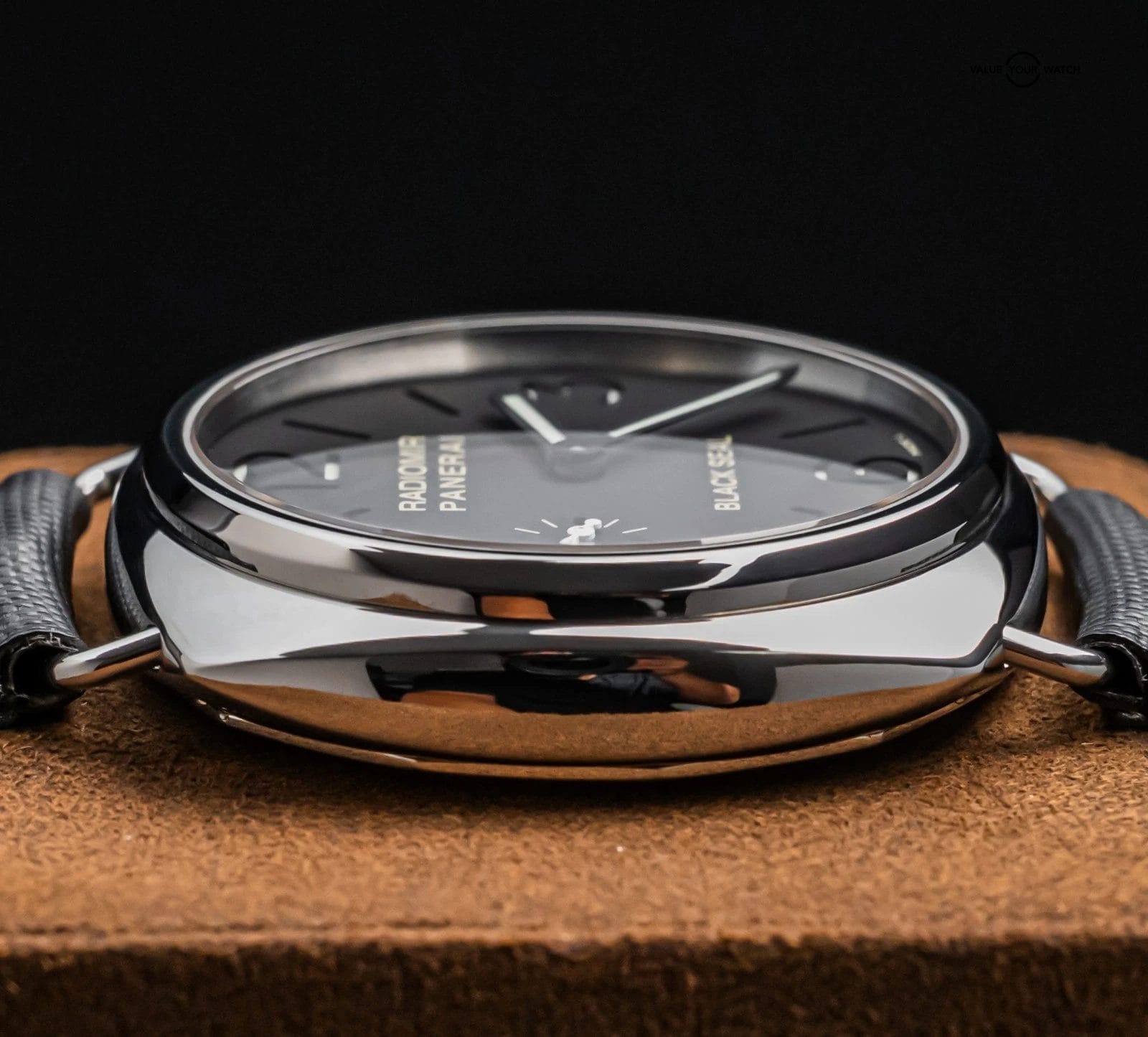 STUNNING Panerai 183 Radiomir Black Seal 45 mm with Black Dial on Aftermarket Black Leather Strap & Clasp! Arrives as watch only and presents itself a fantastic value on the secondary market. Black Seal Radiomirs are very nice pieces on wrist, simple yet effective. Ready to be on wrist!