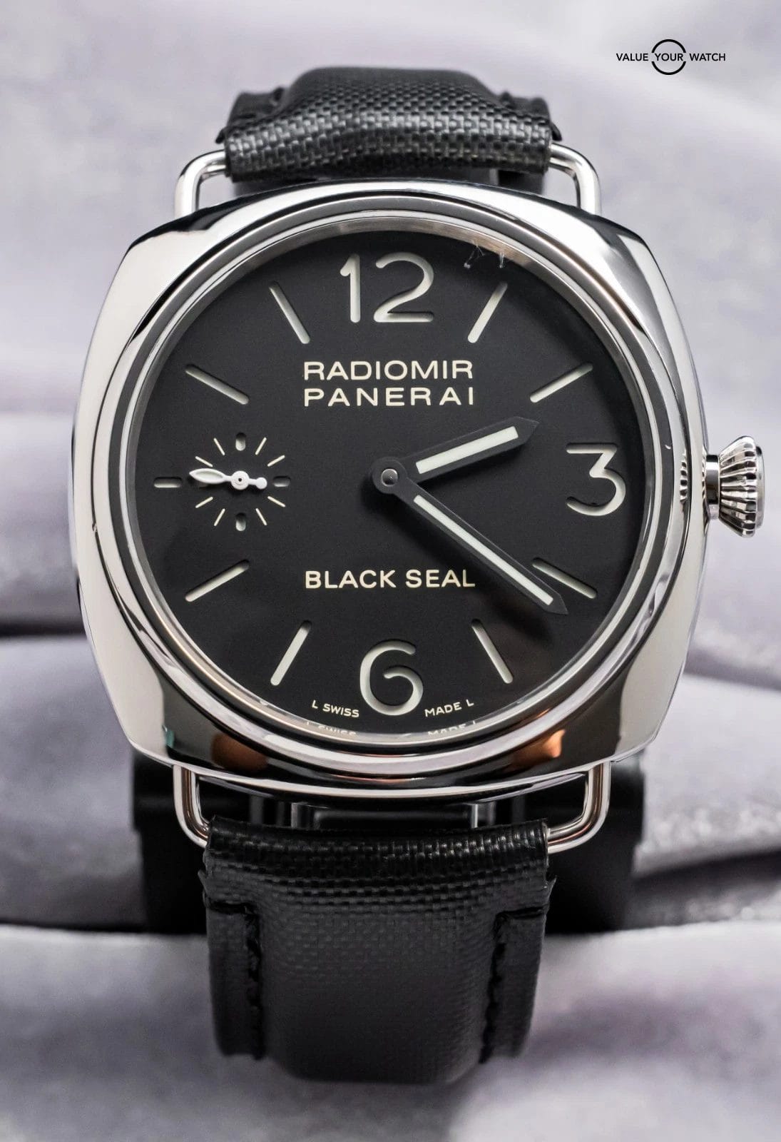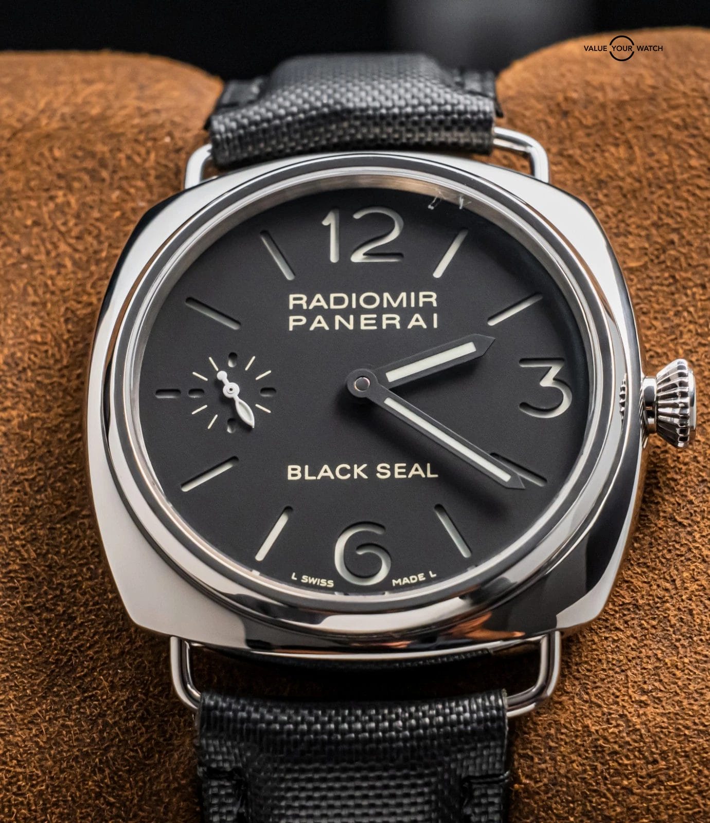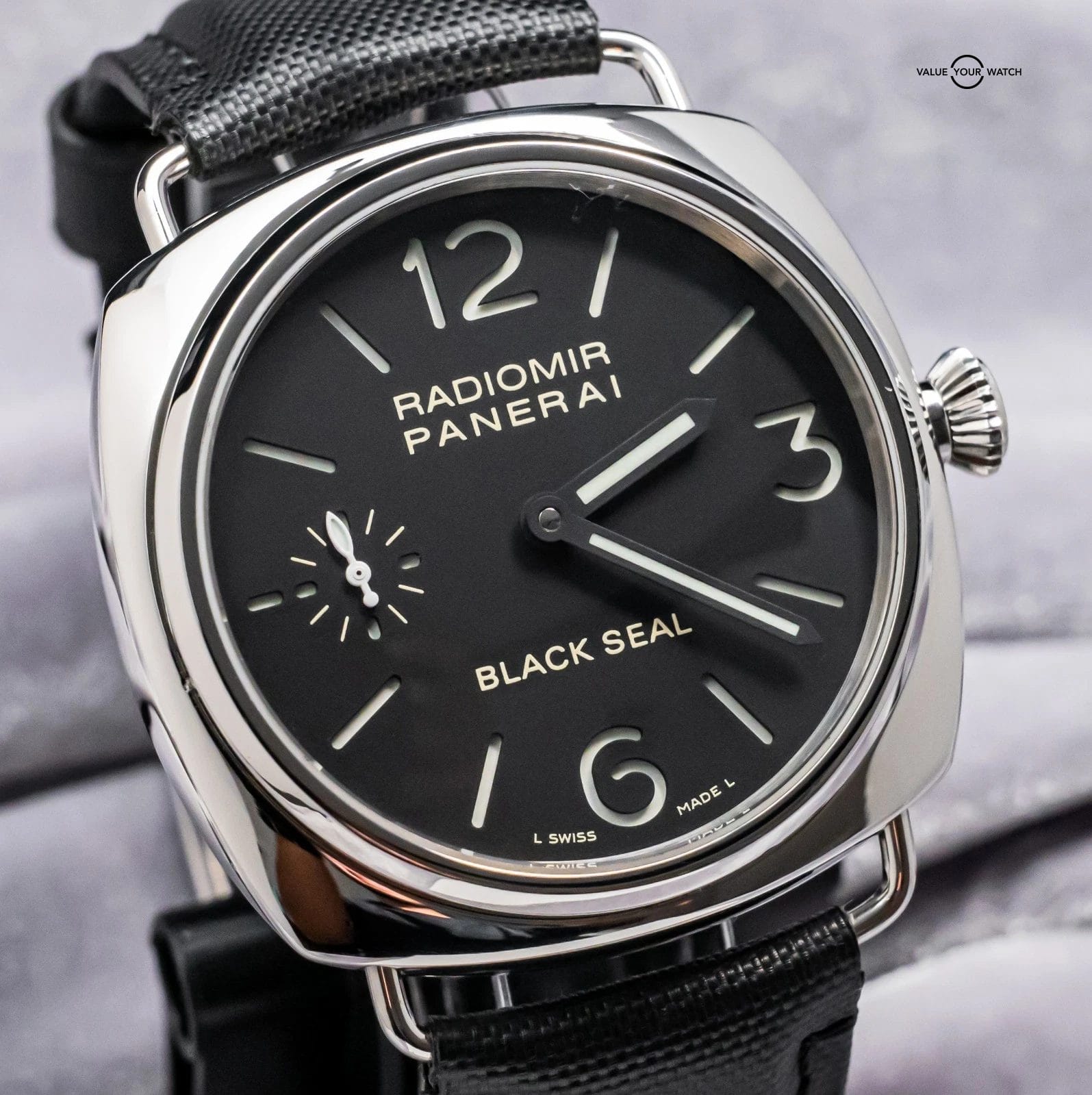STUNNING Panerai 183 Radiomir Black Seal 45 mm with Black Dial on Aftermarket Black Leather Strap & Clasp! Arrives as watch only and presents itself a fantastic value on the secondary market. Black Seal Radiomirs are very nice pieces on wrist, simple yet effective. Ready to be on wrist!