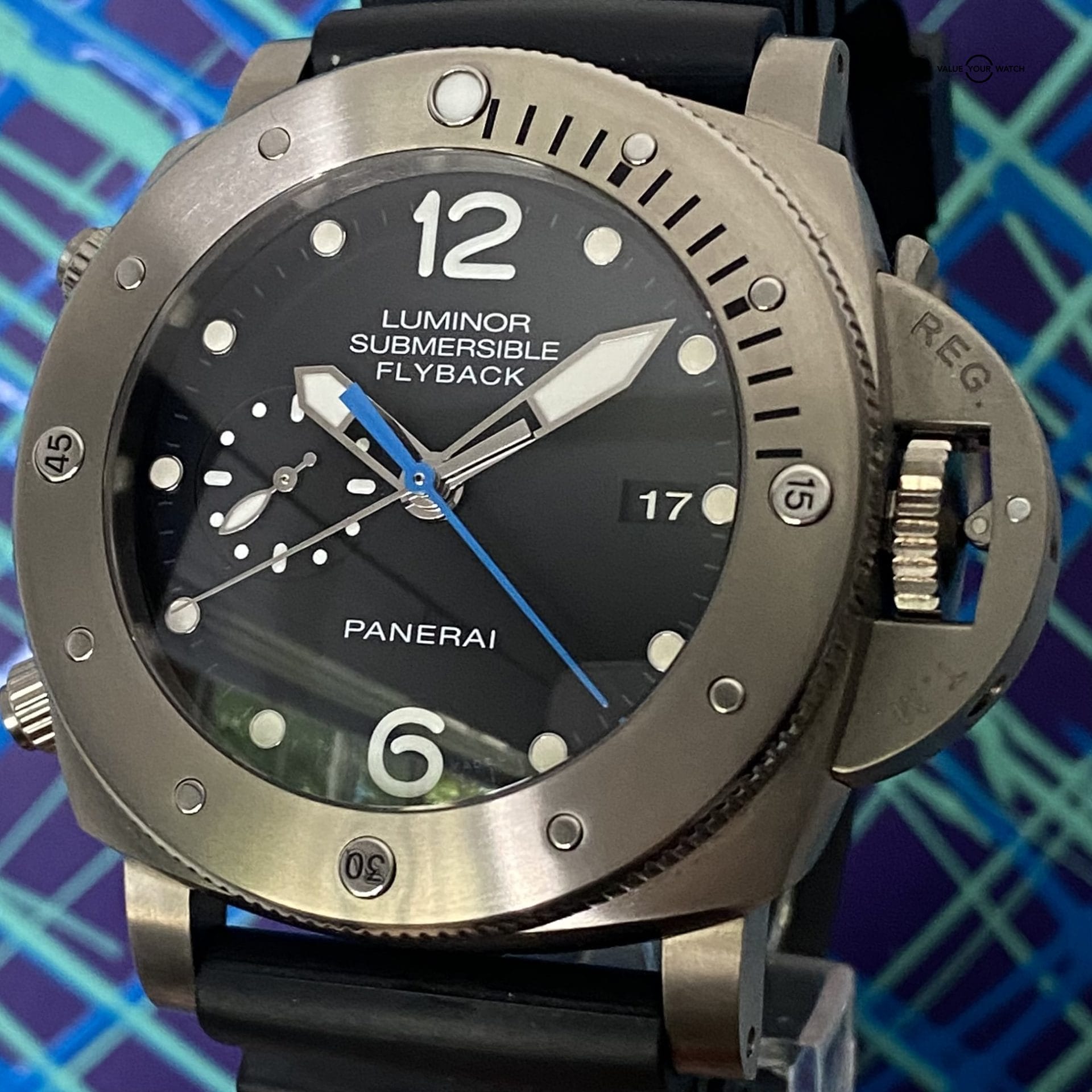 The 47mm Submersible Flyback 1950 PAM 614 in beautiful lightweight titanium.