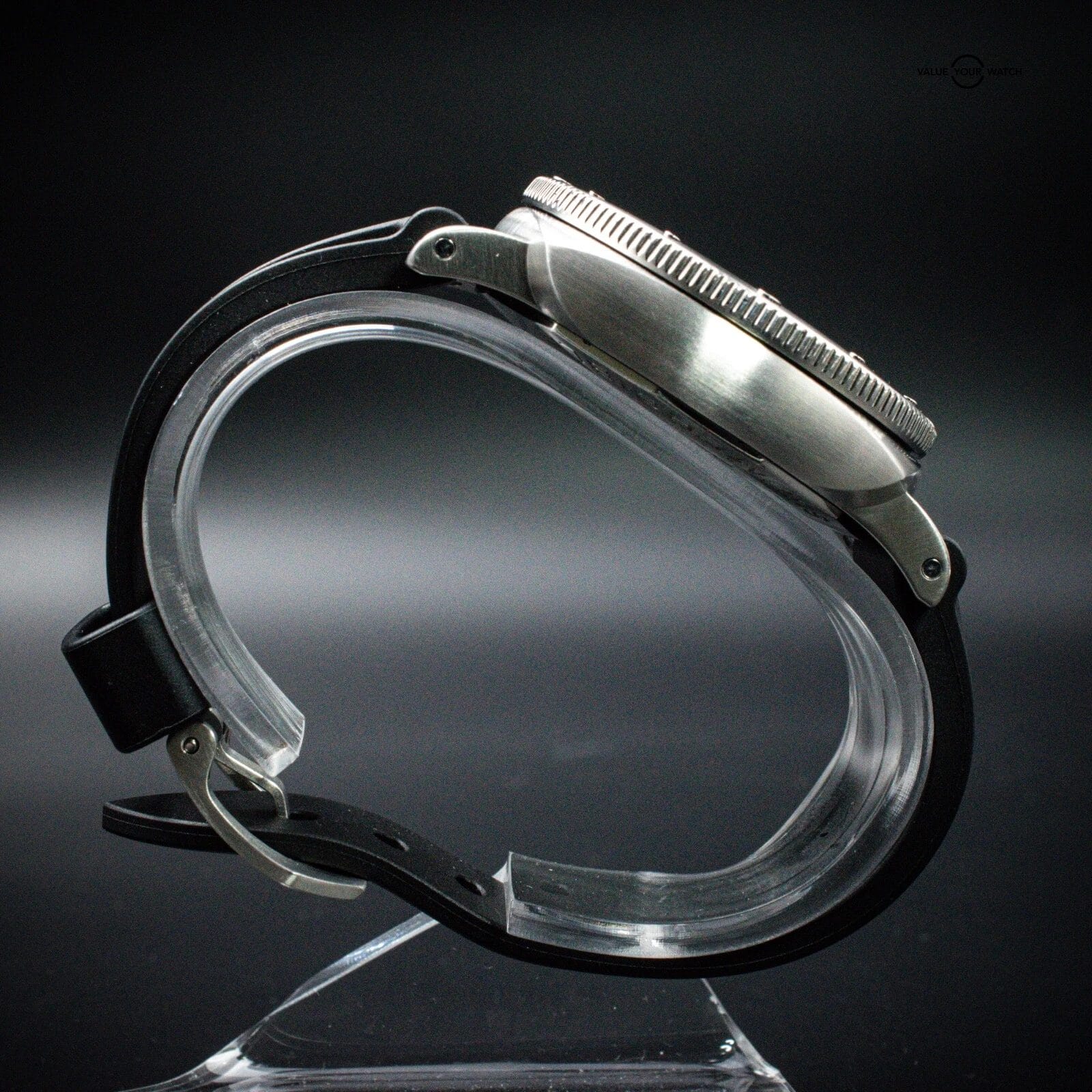 The Panerai Submersible PAM00973 delivers classic Panerai diving performance in a more compact and wearable 42mm size. Its brushed stainless steel case, unidirectional bezel, and bold luminous dial are all built for function, while retaining unmistakable Panerai aesthetics. Powered by the in-house P.900 automatic movement, it offers a 3-day power reserve and a slimmer profile on the wrist. With 300m of water resistance, this is a true professional-grade dive watch. The black dial with applied luminous markers ensures excellent legibility in low light, above or below water. The signature crown guard adds character and protects the screw-down crown. For collectors or first-time Panerai buyers, this reference bridges the gap between tool watch capability and everyday comfort.
