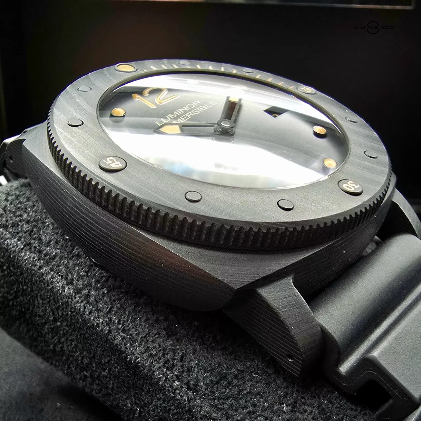 Up for sale here is a very nice example of the Panerai Submersible cased in 47mm of carbon fiber.