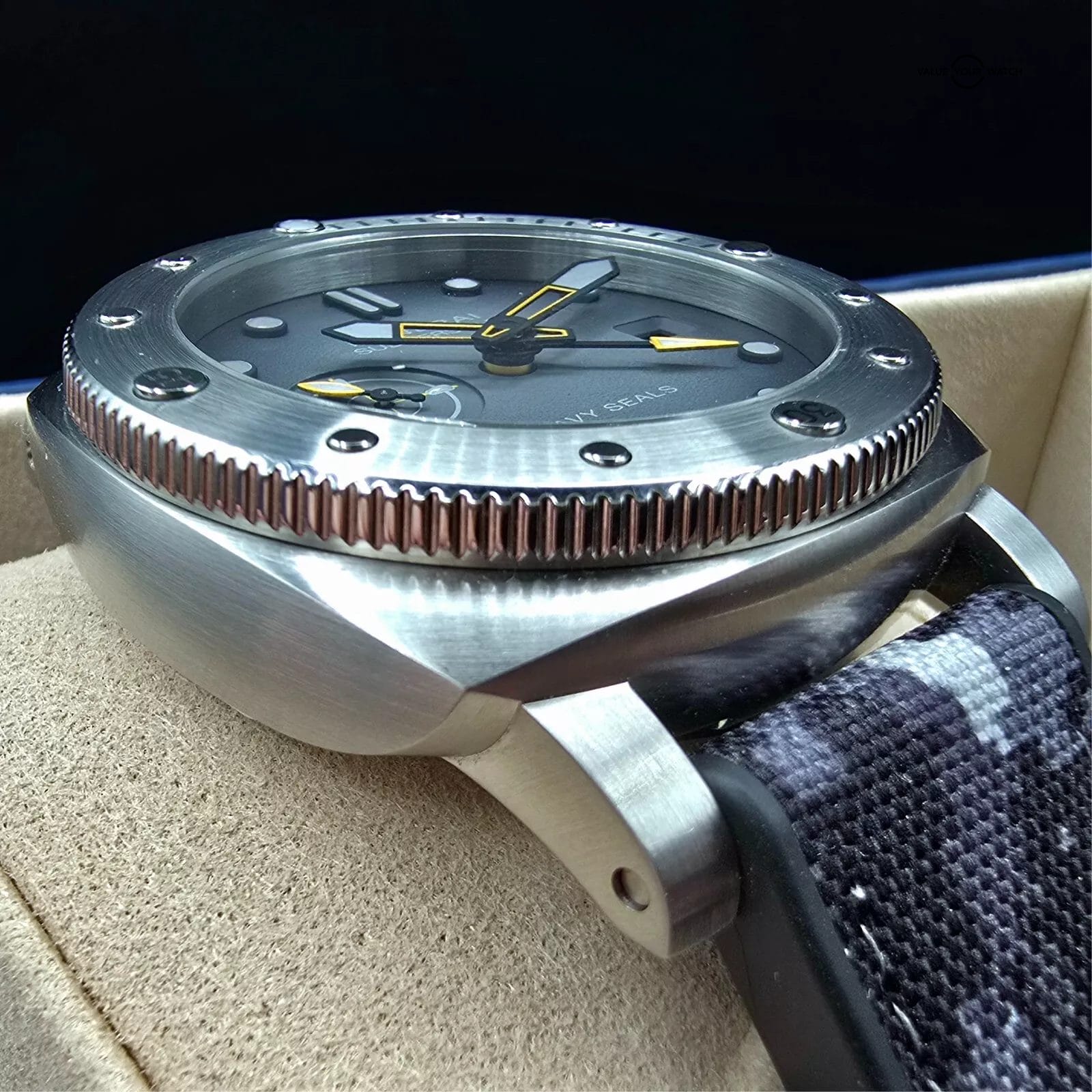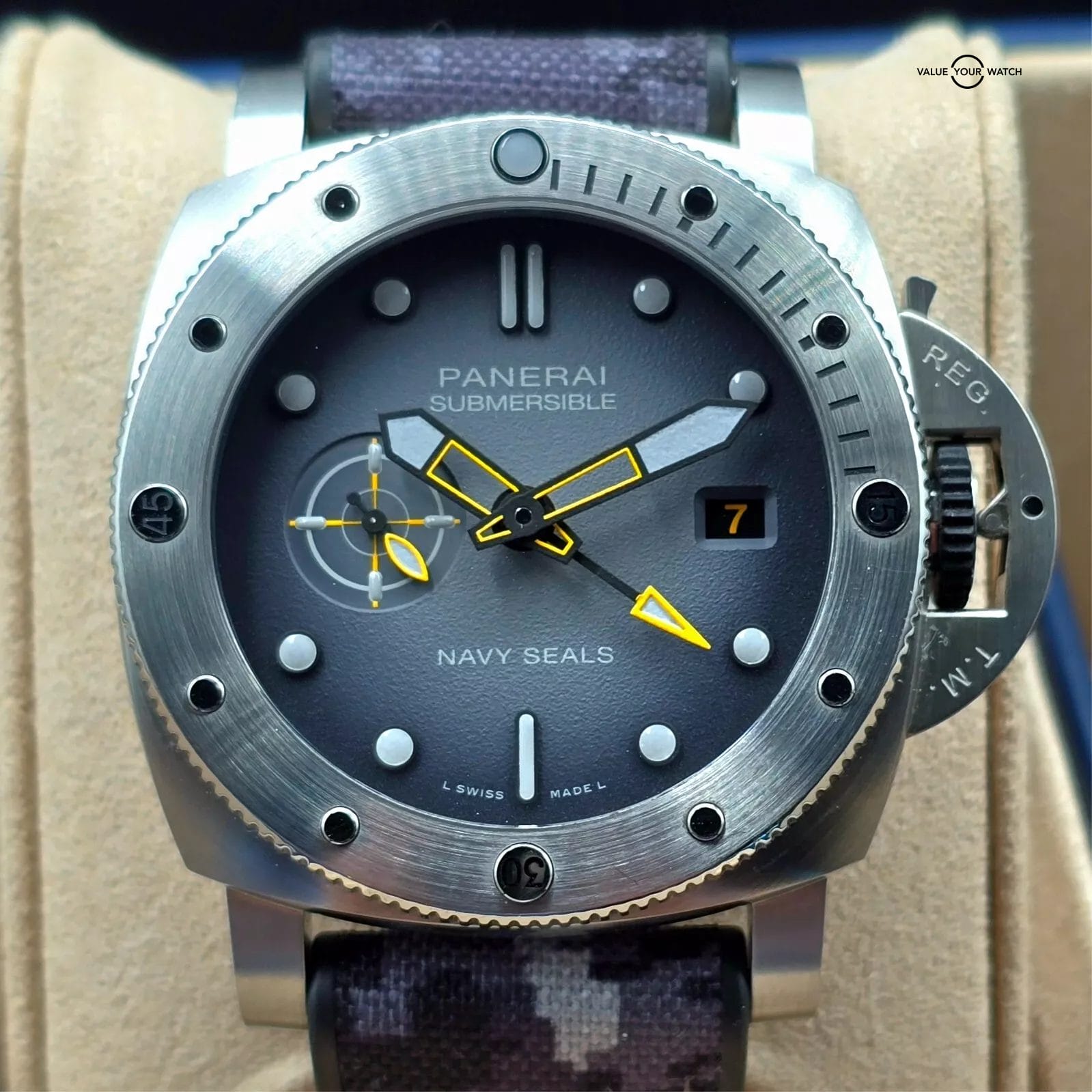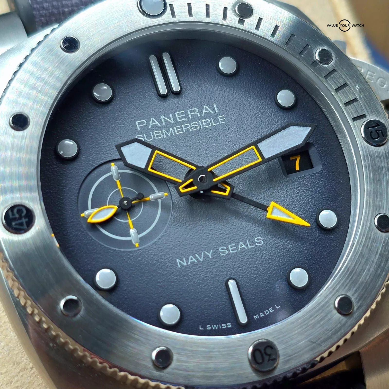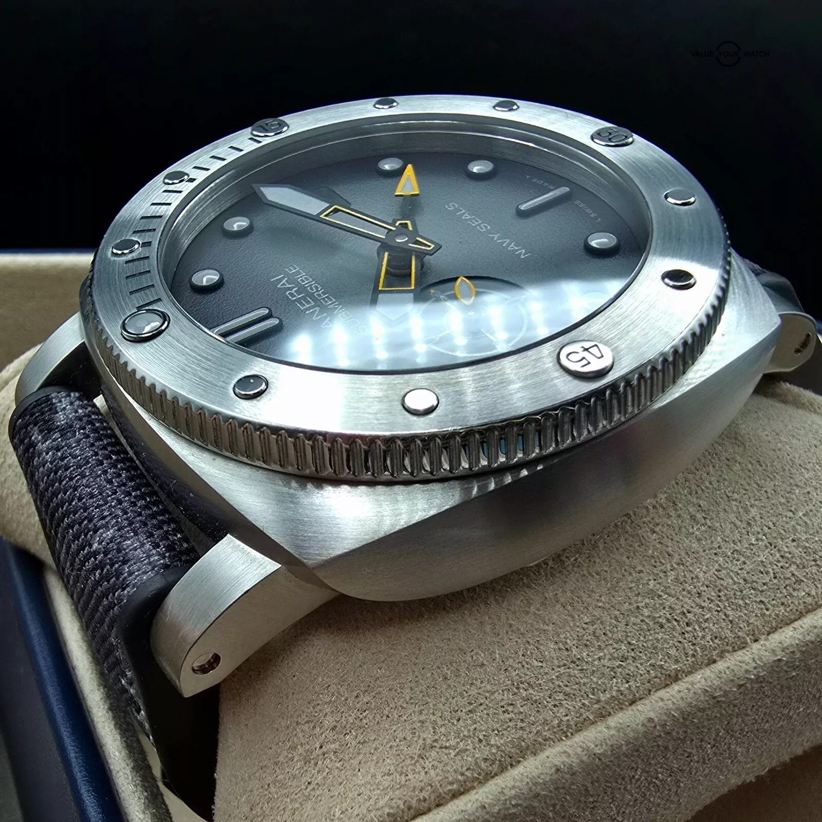 Up for sale here is a fantastic example of the Navy Seals limited edition Panerai Submersible, cased in 42mm of stainless steel.