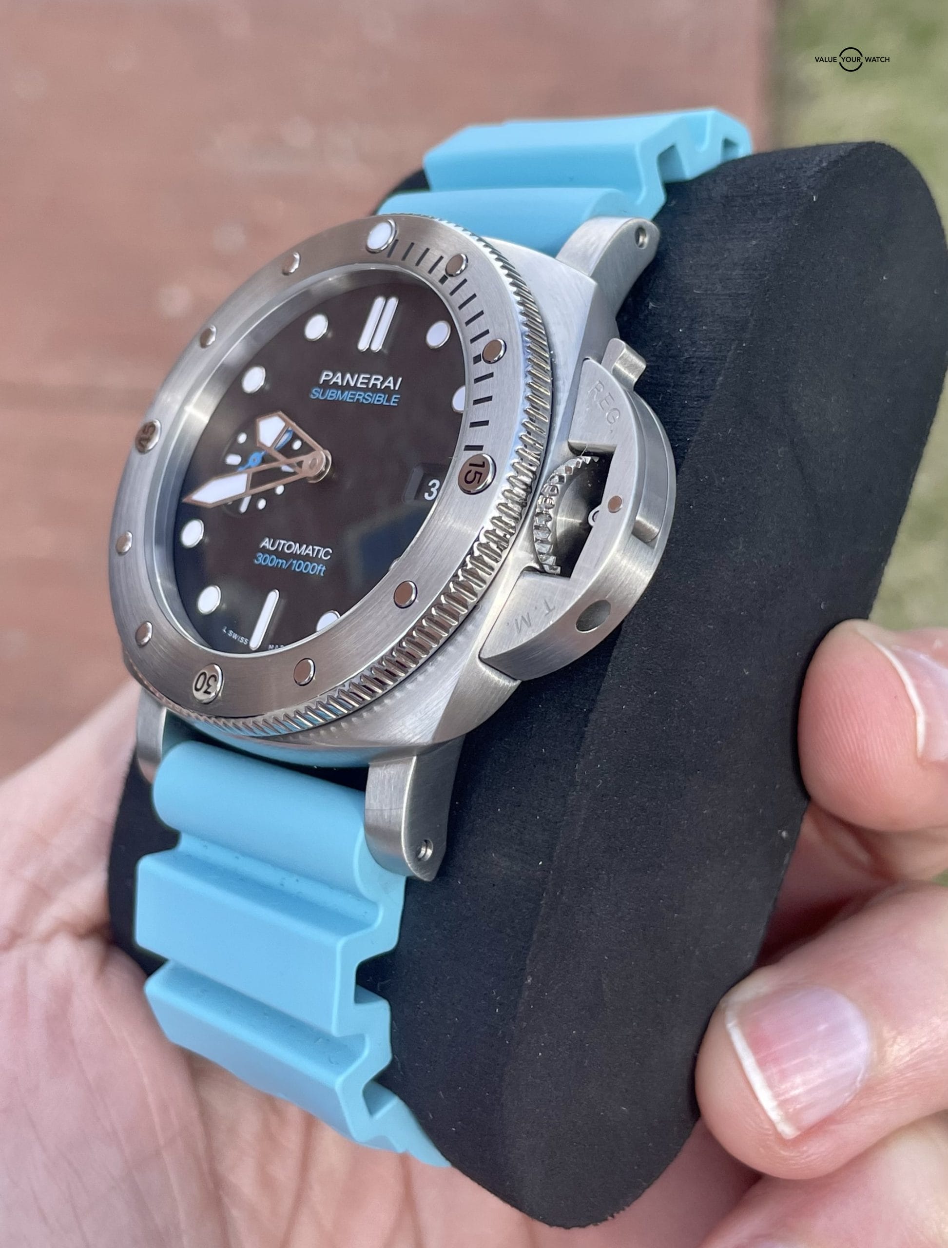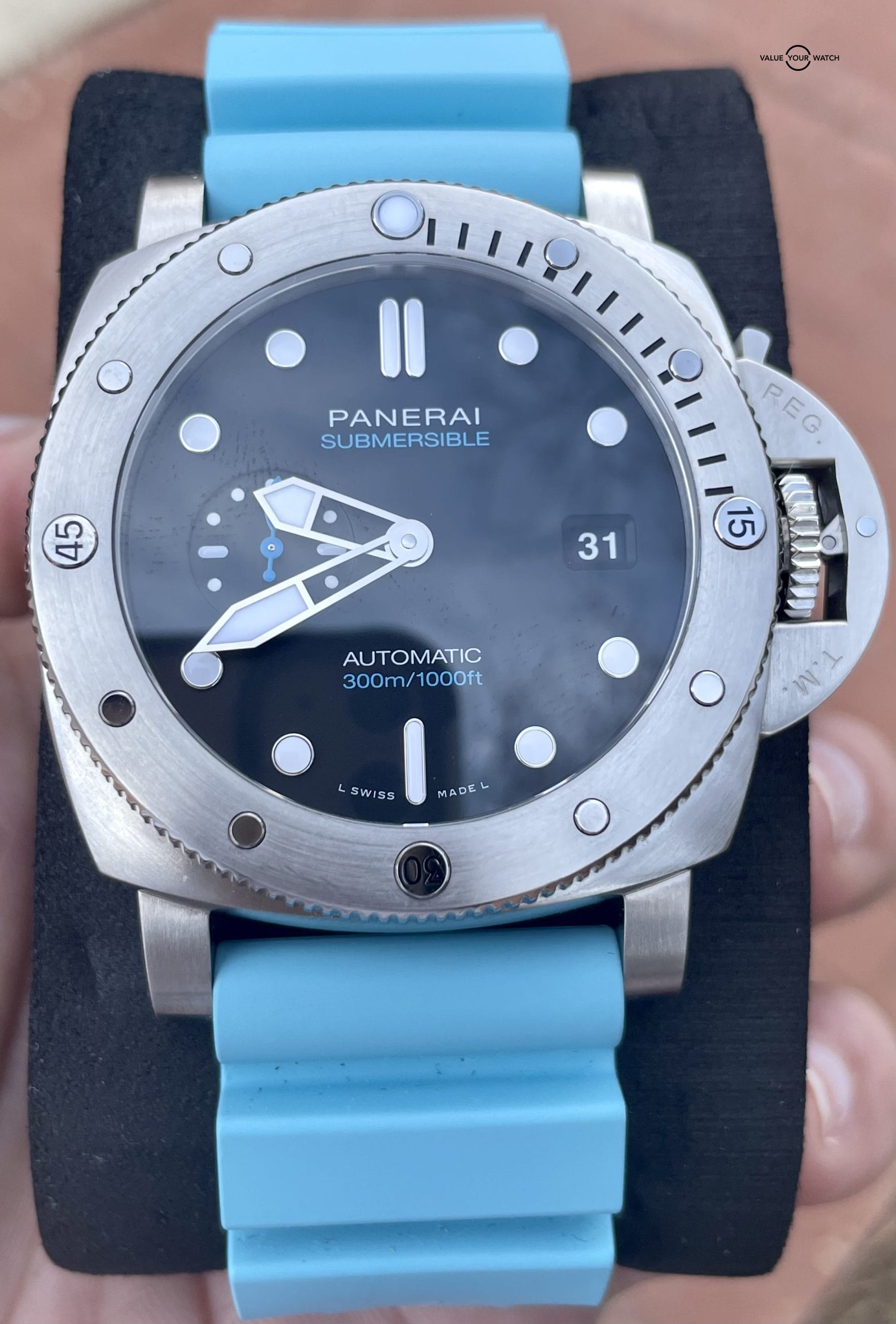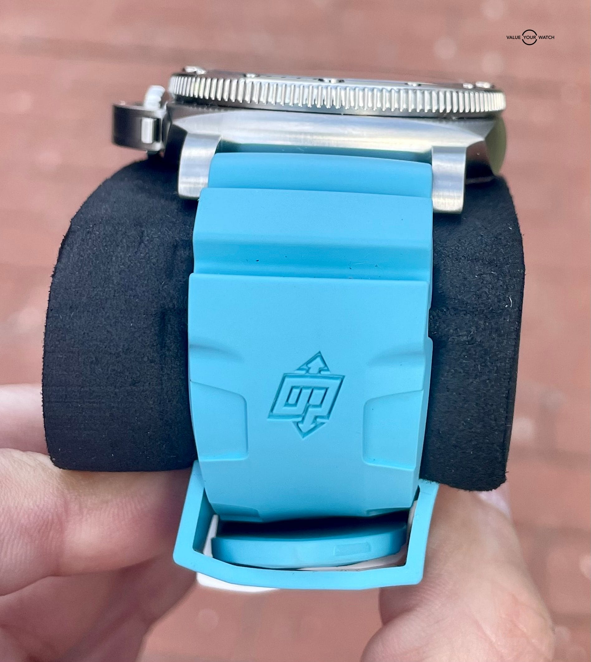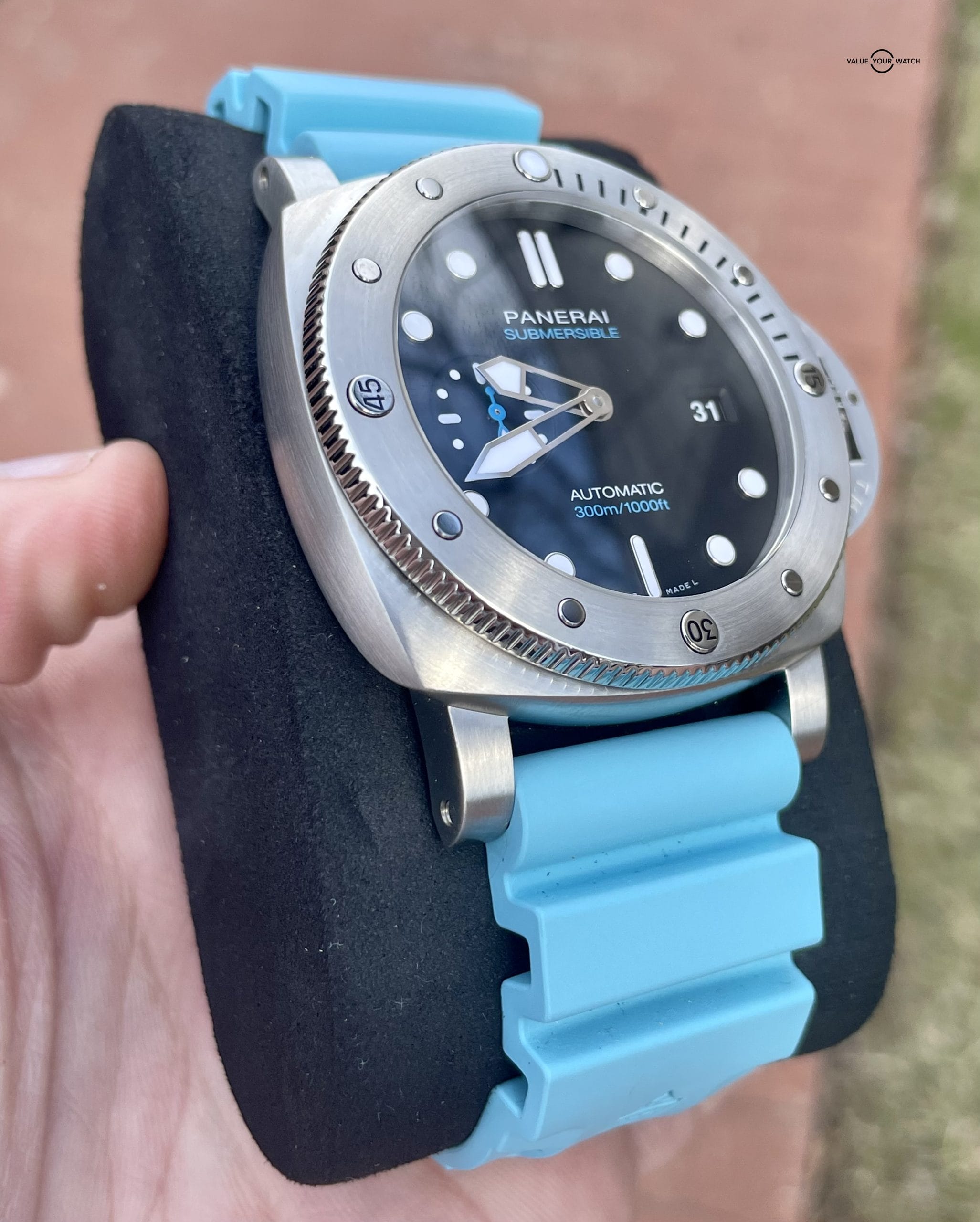 I’m selling my like new condition Panerai Submersible, dated 08/22 with extend warranty until 2030 when register at Panerai. The watch has a Uni-diractional rotating brushed bezel and a 3 day power reserve movement. It come as a fullset with case, card, extra strap, and tools. The watch is in excellent condition with significant wrist present.