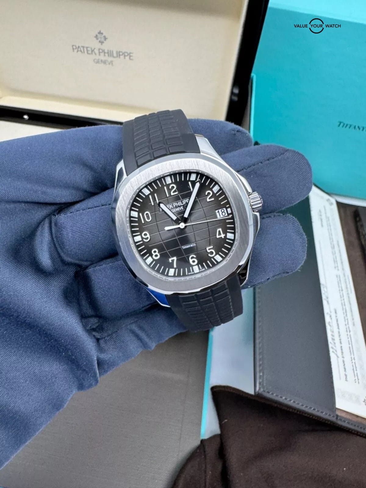 Patek Philippe Aquanaut watches are known for their sporty yet elegant design, and the Tiffany & Co. co-branding adds a unique touch, enhancing its desirability among collectors.