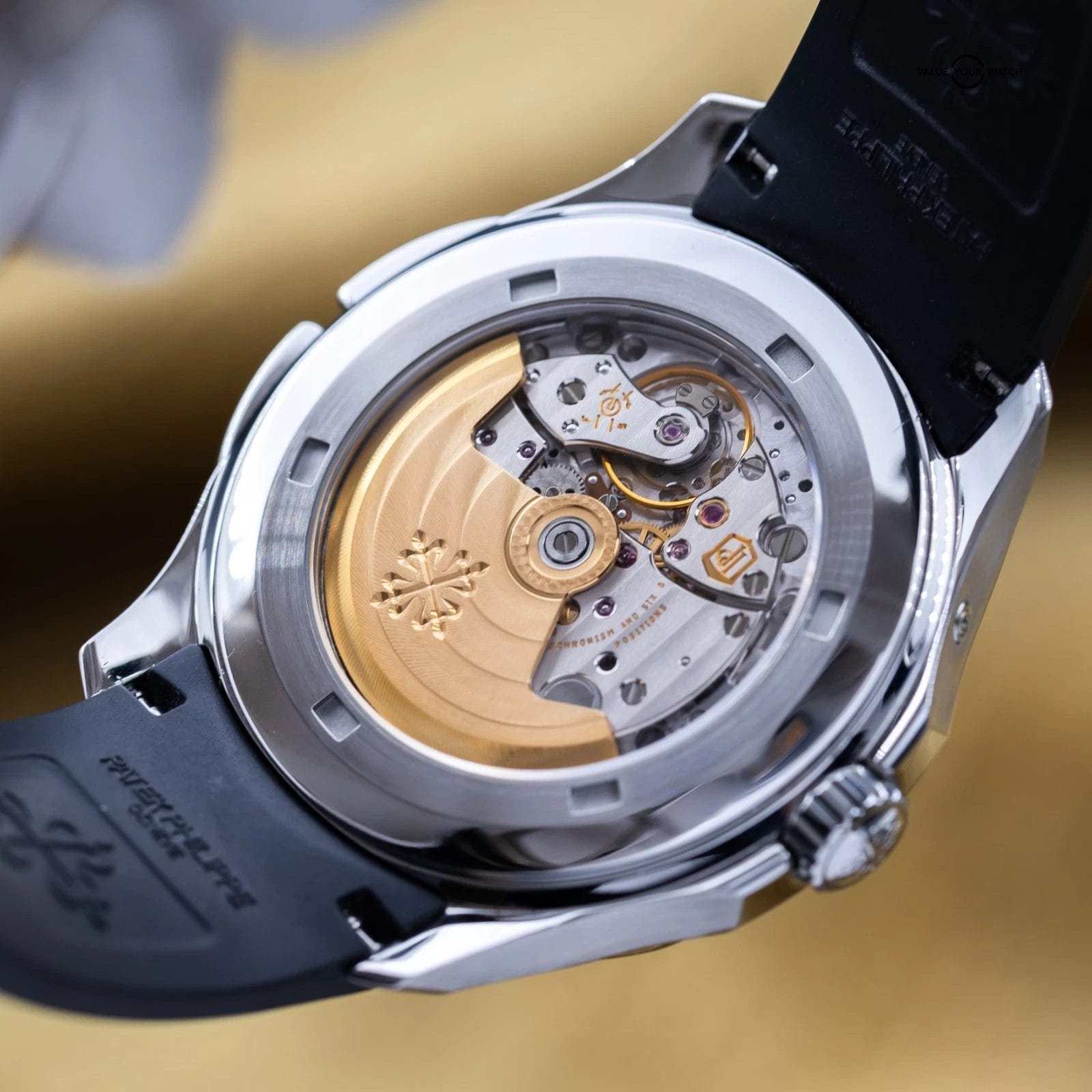 The Patek Philippe Aquanaut – the sports watch that separates you from the crowd once and for all! A grail for many and an addition to the collection for the rare few. This is the Time Travel model, so also comes with the dual-time zone complication This one also comes with an uncut rubber strap (customize to your wrist!) and clasp. The time has finally come to get the one you’ve wanted, without the AD wait and spend! No description necessary, you know how well this watch is finished both inside and out…and with the open case back to enjoy it through. This is an absolute classic you can’t afford to miss!