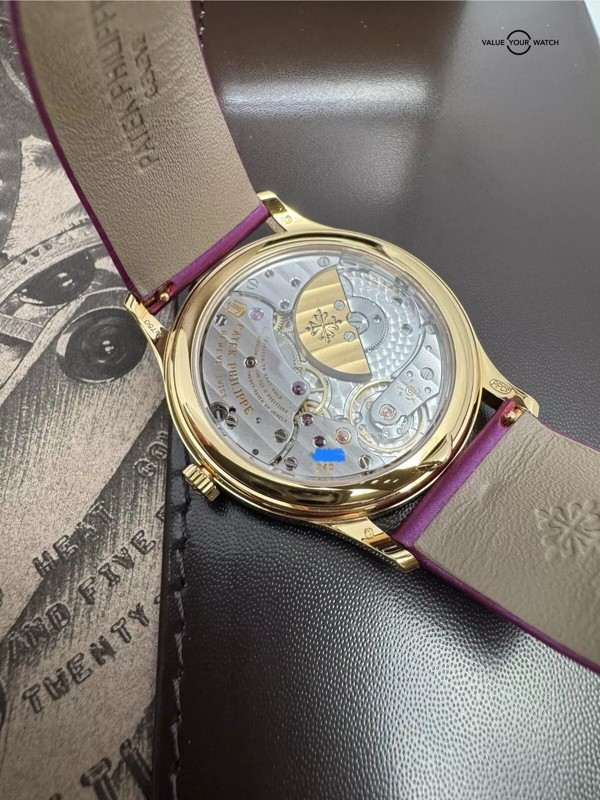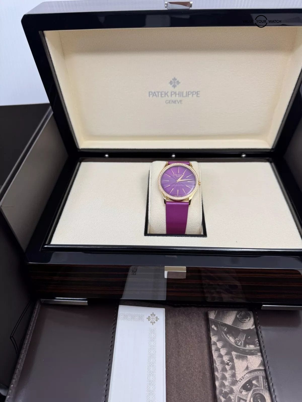 2024 Unworn Purple Dial Factory Diamond Bezel 18k Yellow Gold Calatrava Ladies