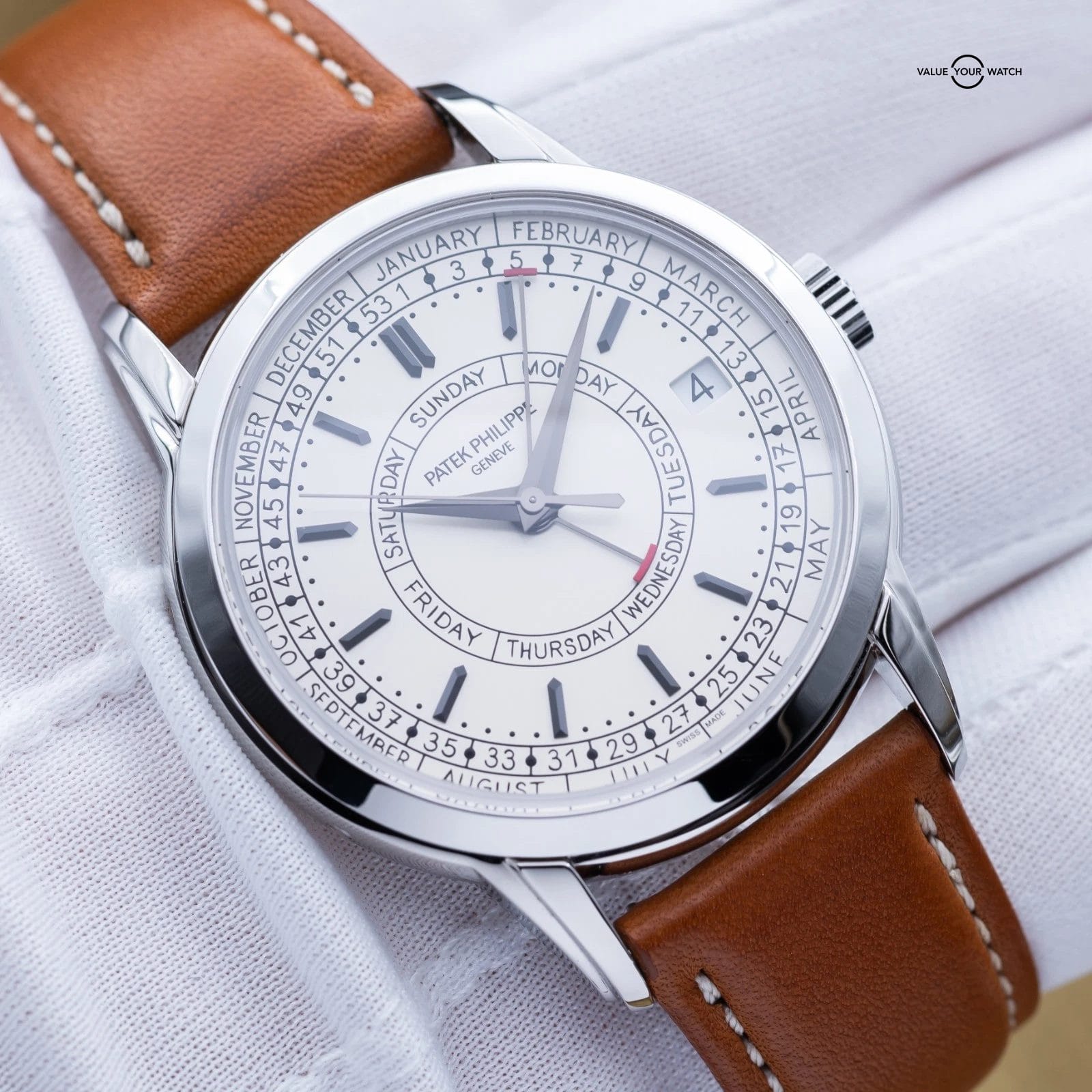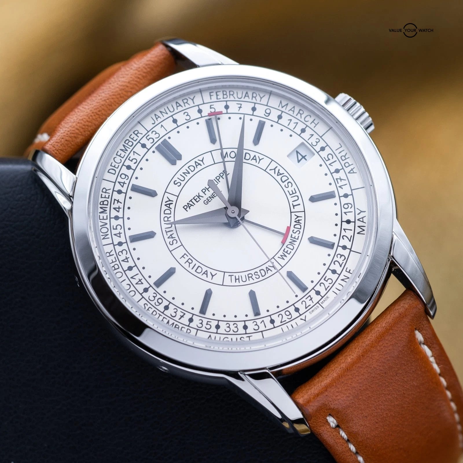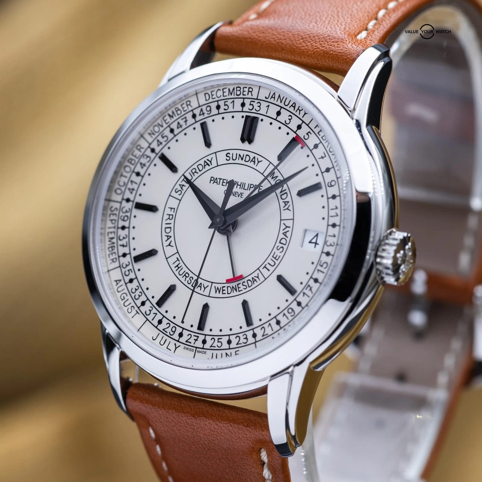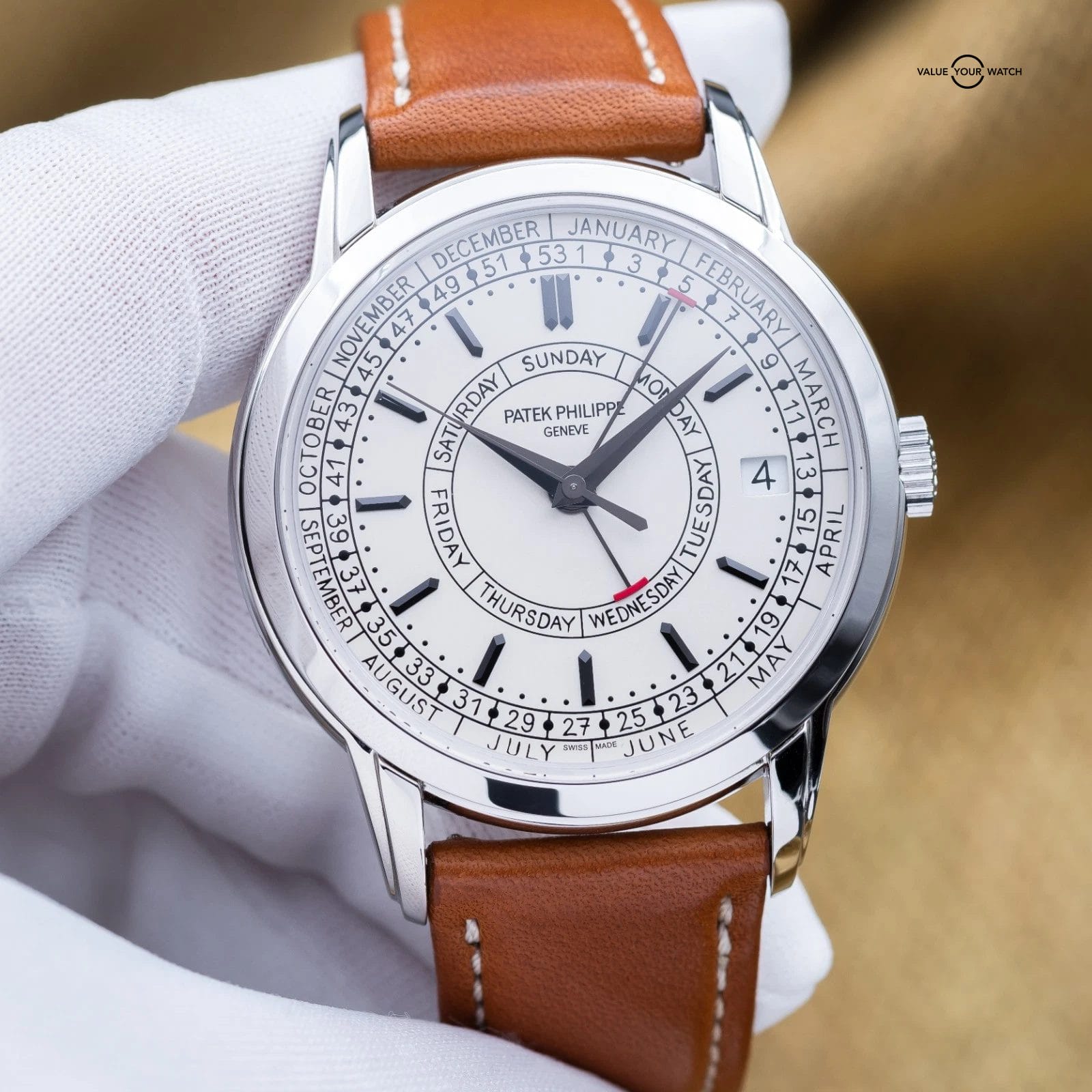 The Patek Philippe Calatrava Weekly Calendar blends classical watchmaking with a modern twist, highlighted by its rare weekly calendar complication. Crafted in stainless steel with a 40 mm case, it features handwritten-style typography for a more casual, contemporary appeal. It also offers a weekly calendar complication – a display showing the current week number of the year in addition to the day and date – driven by a self-winding mechanical movement developed specifically for this model. The 5212A-001 is a thoughtful, understated statement piece for collectors who value both innovation and tradition.