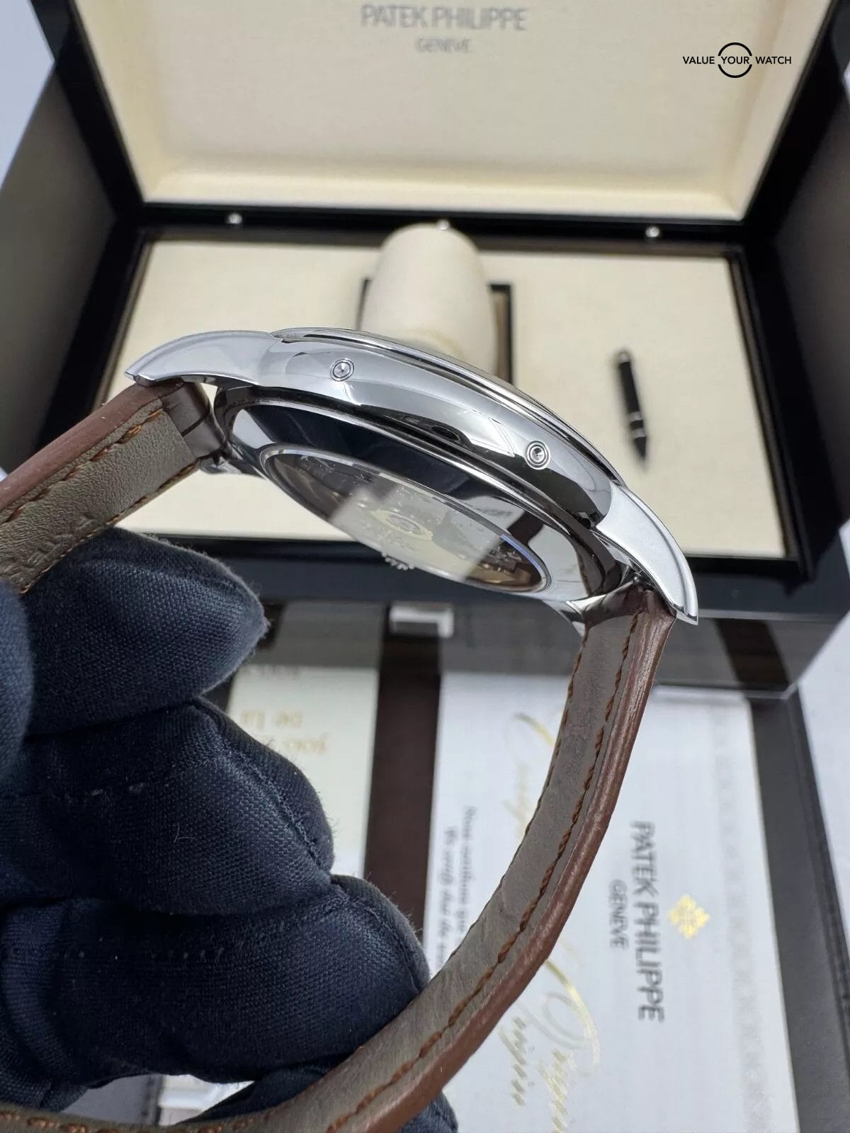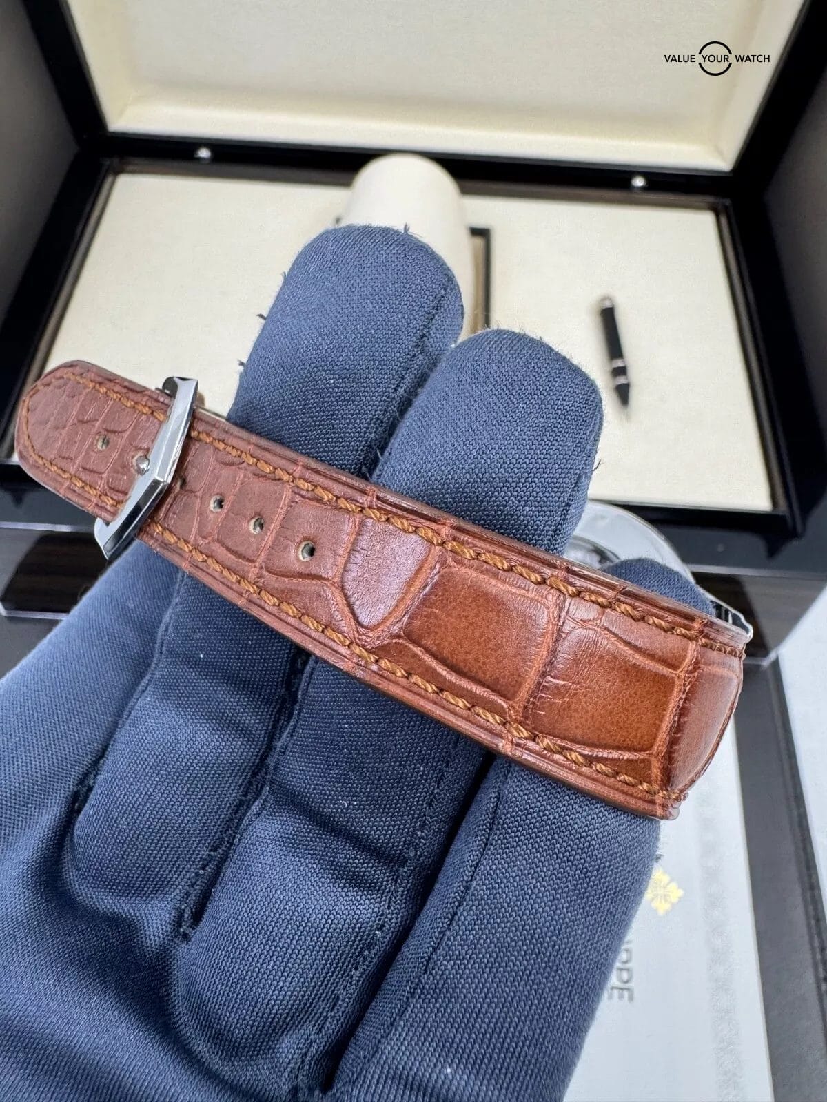 Good preowned condition. On factory pp leather. Has complication pusher