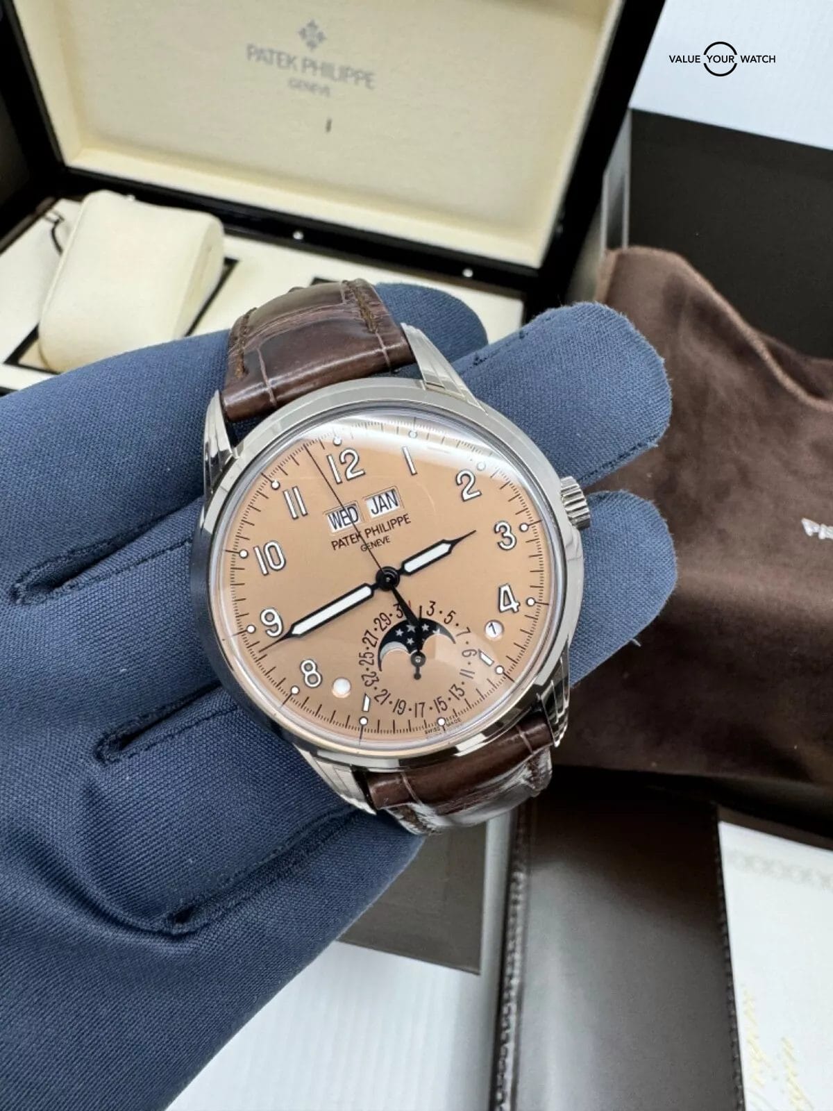 Specification: May 2024 Patek Philippe Perpetual Calendar 5320G Salmon Dial Grand Complications