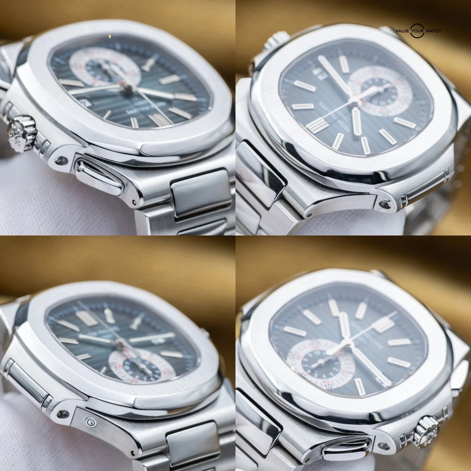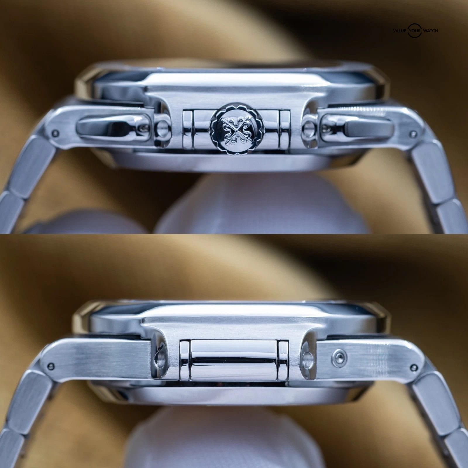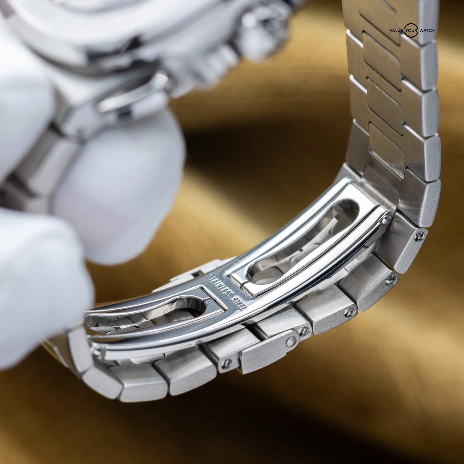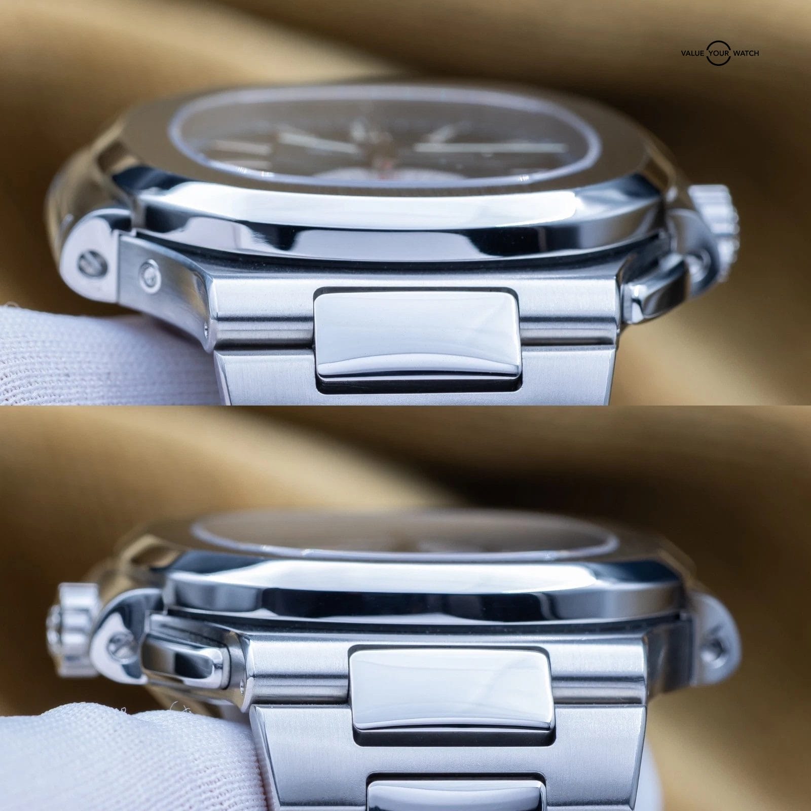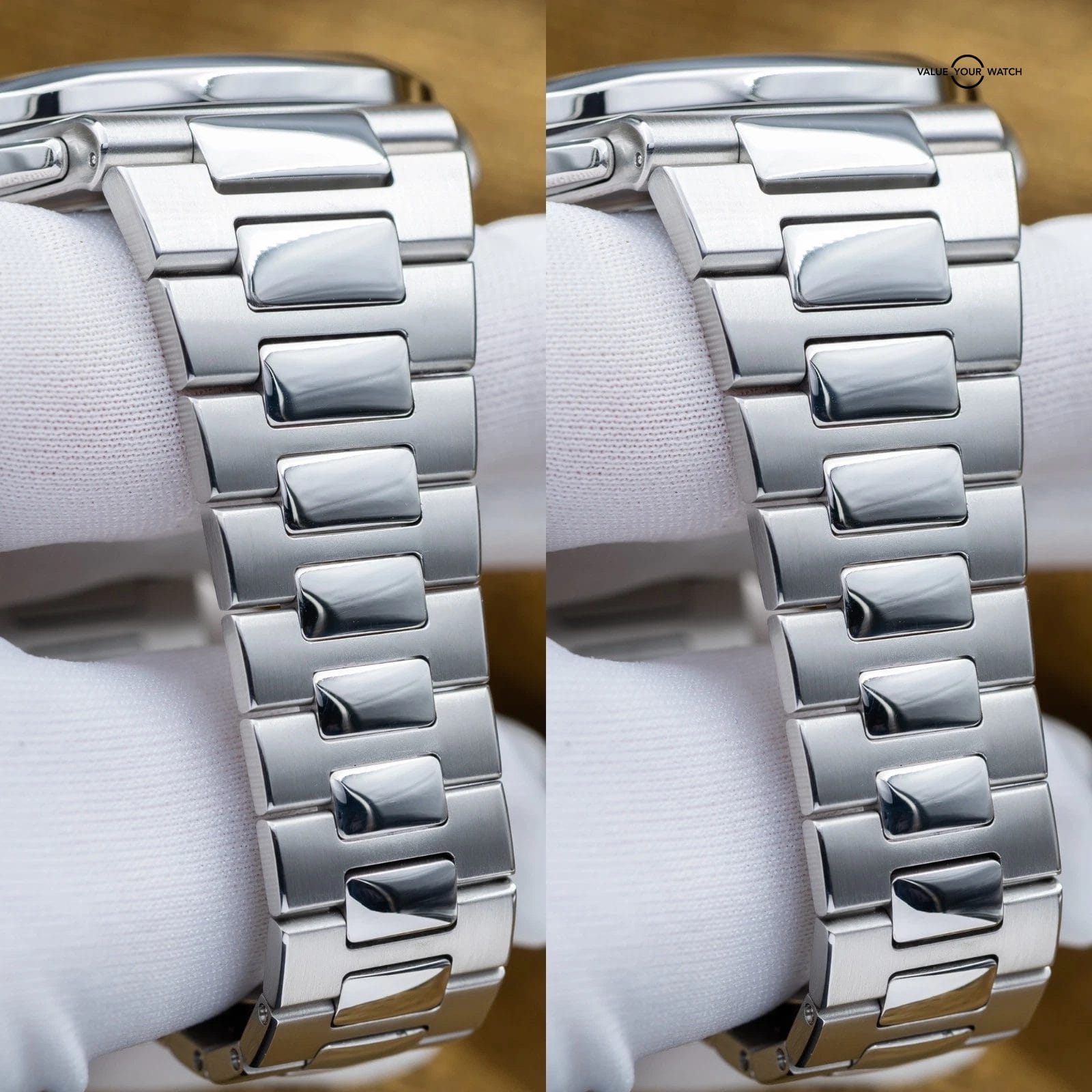 Comes with box and accessories, fully linked and included the Patek pusher. Comes with picture of original warranty papers. Watch was serviced by Patek Philippe in Nov of 2025, so comes with a 2 year manufacturer warranty – talk about peace of mind! The watch is in great condition. Don’t miss your chance to get this grail piece while you can!