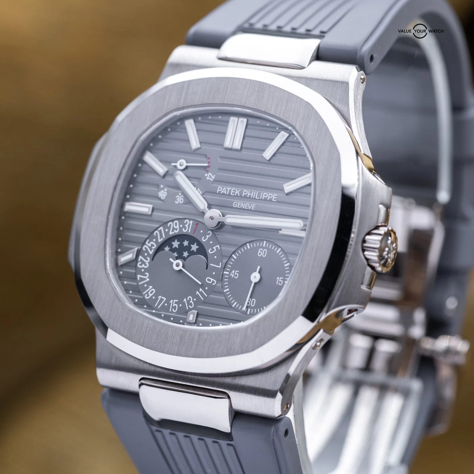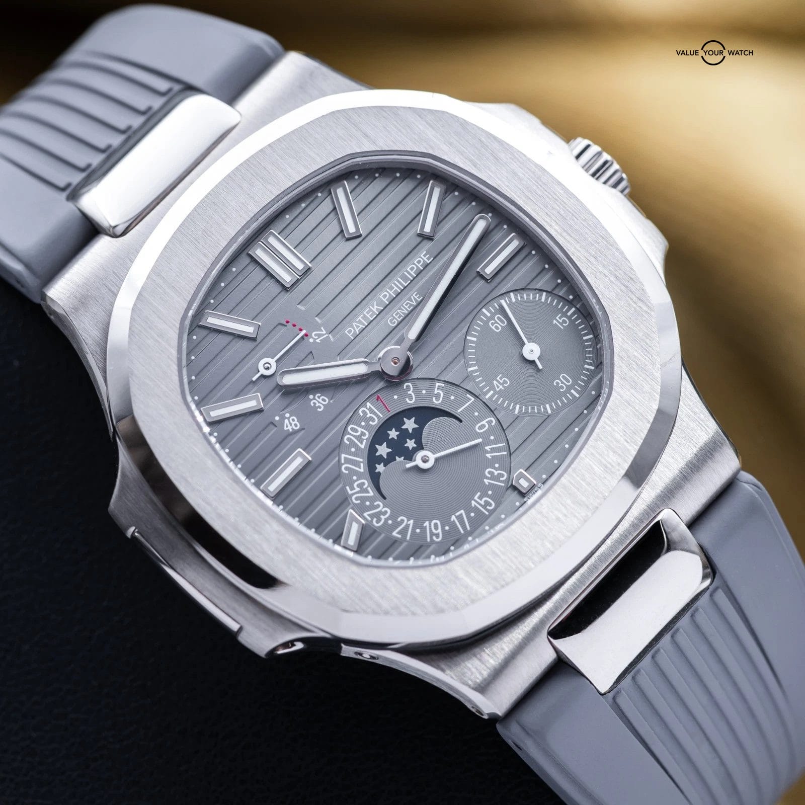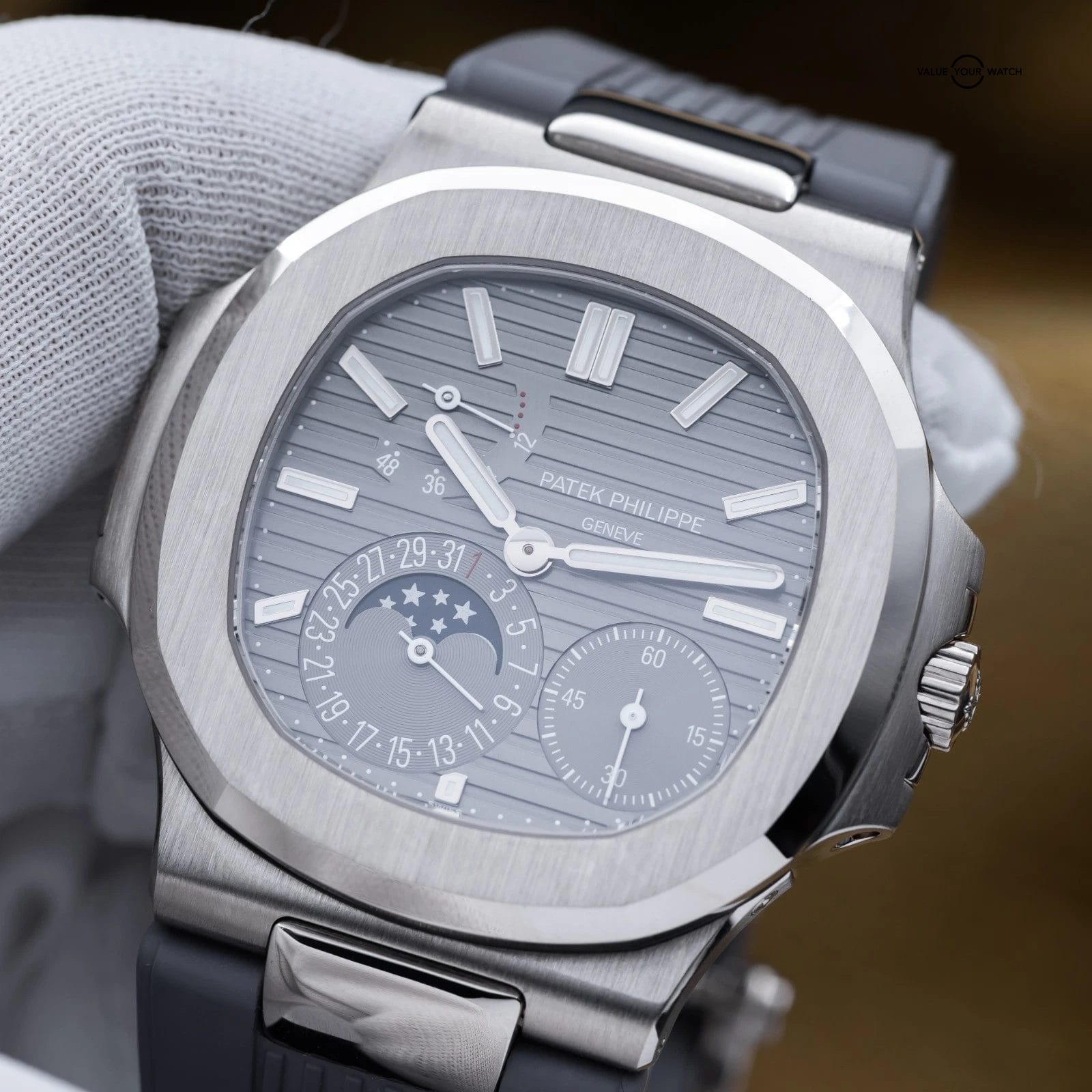 Specification: Patek Philippe Nautilus Moon Phase White Gold 40mm 5712G – Box & Papers