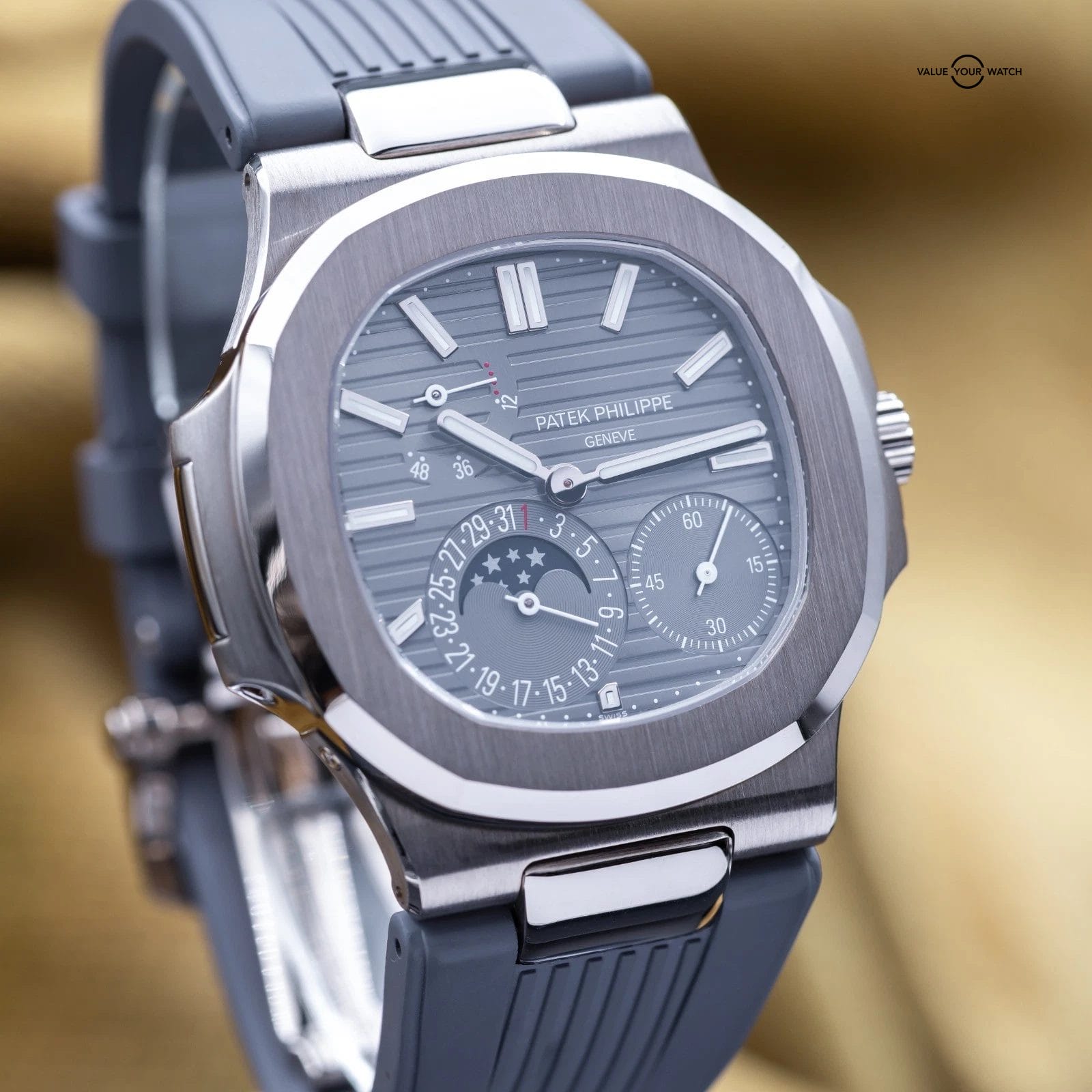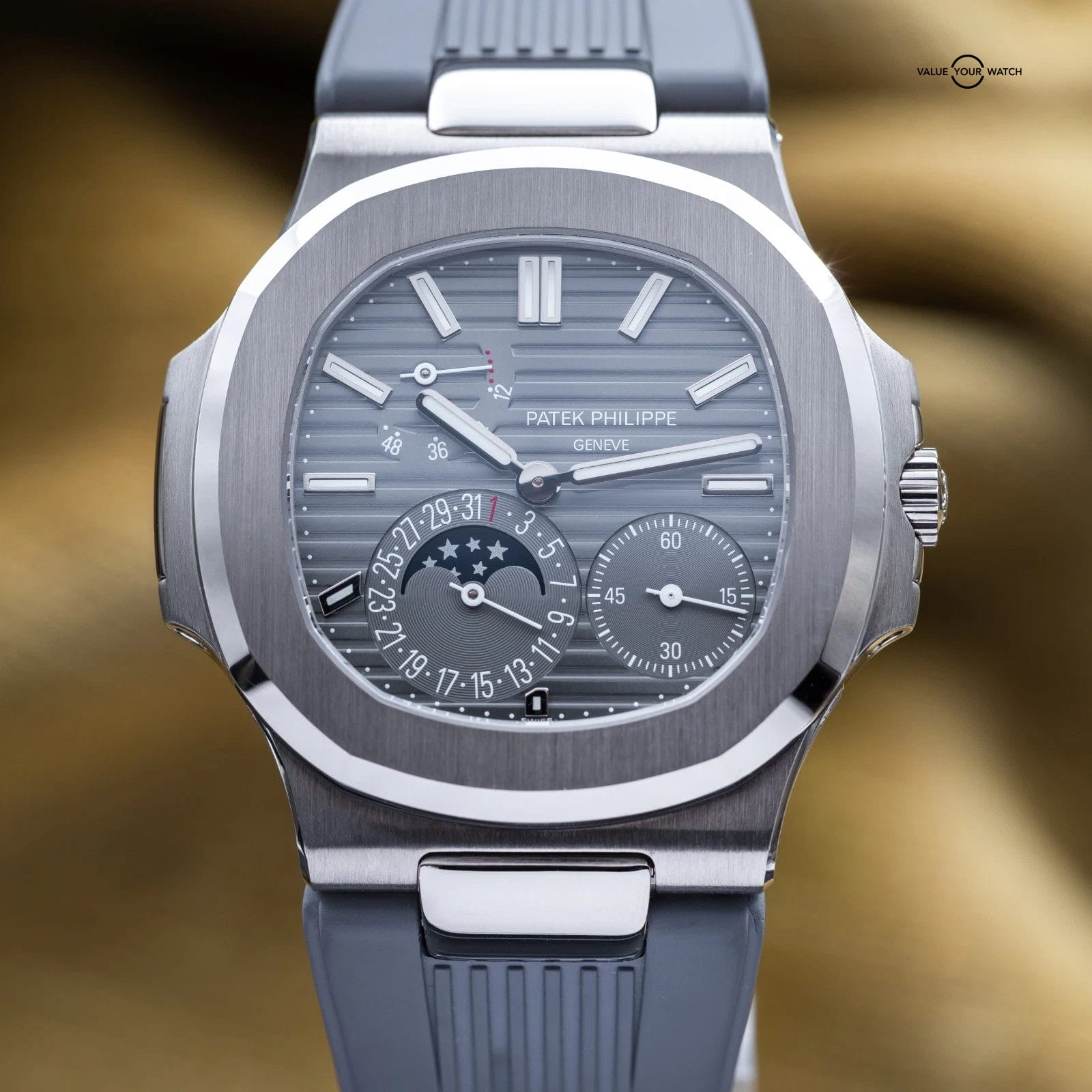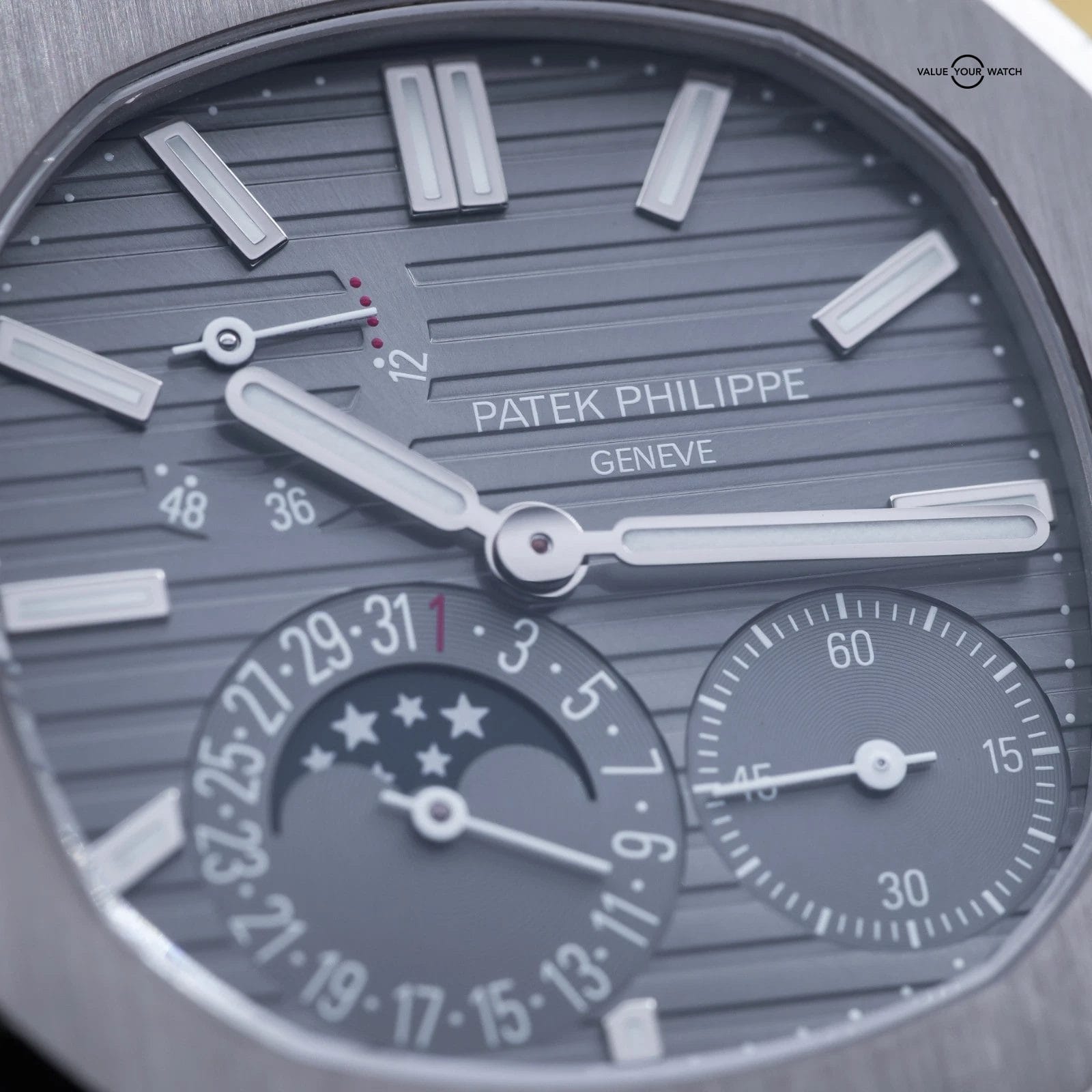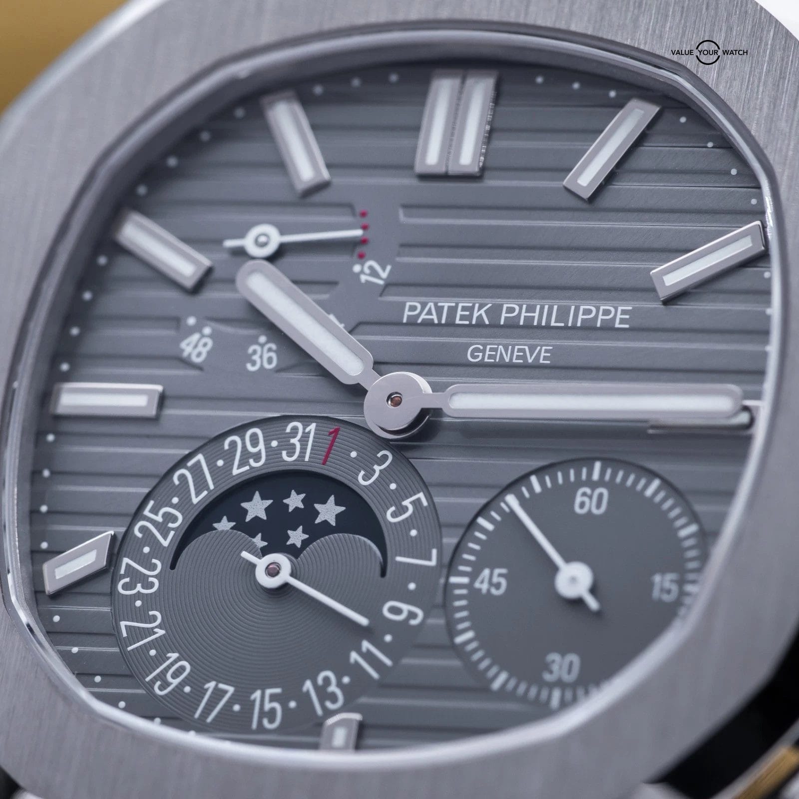 Specification: Patek Philippe Nautilus Moon Phase White Gold 40mm 5712G – Box & Papers