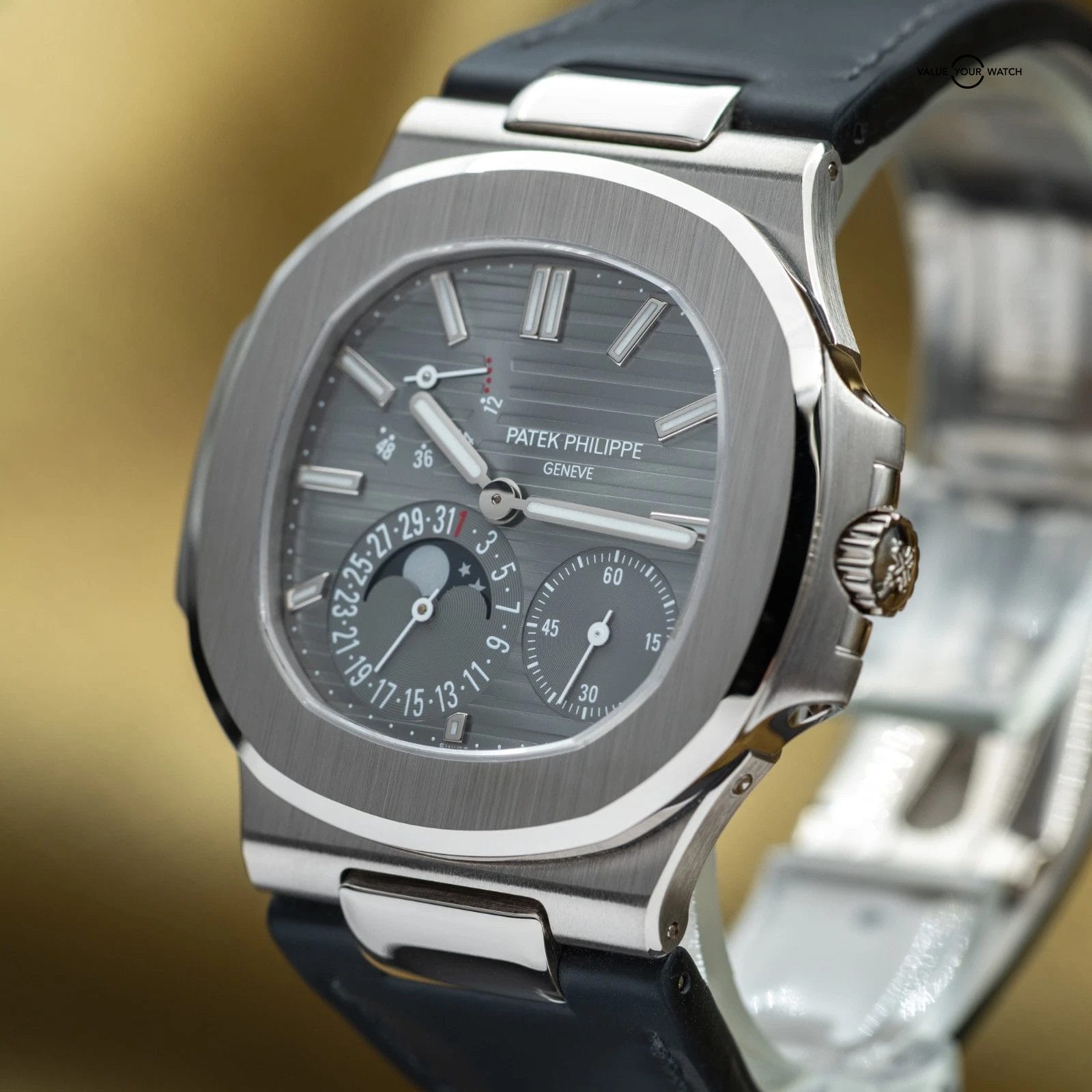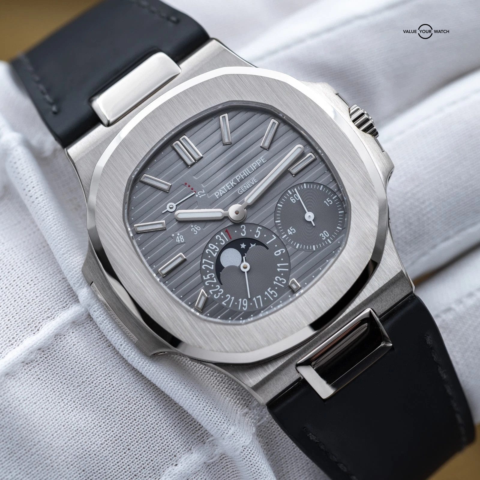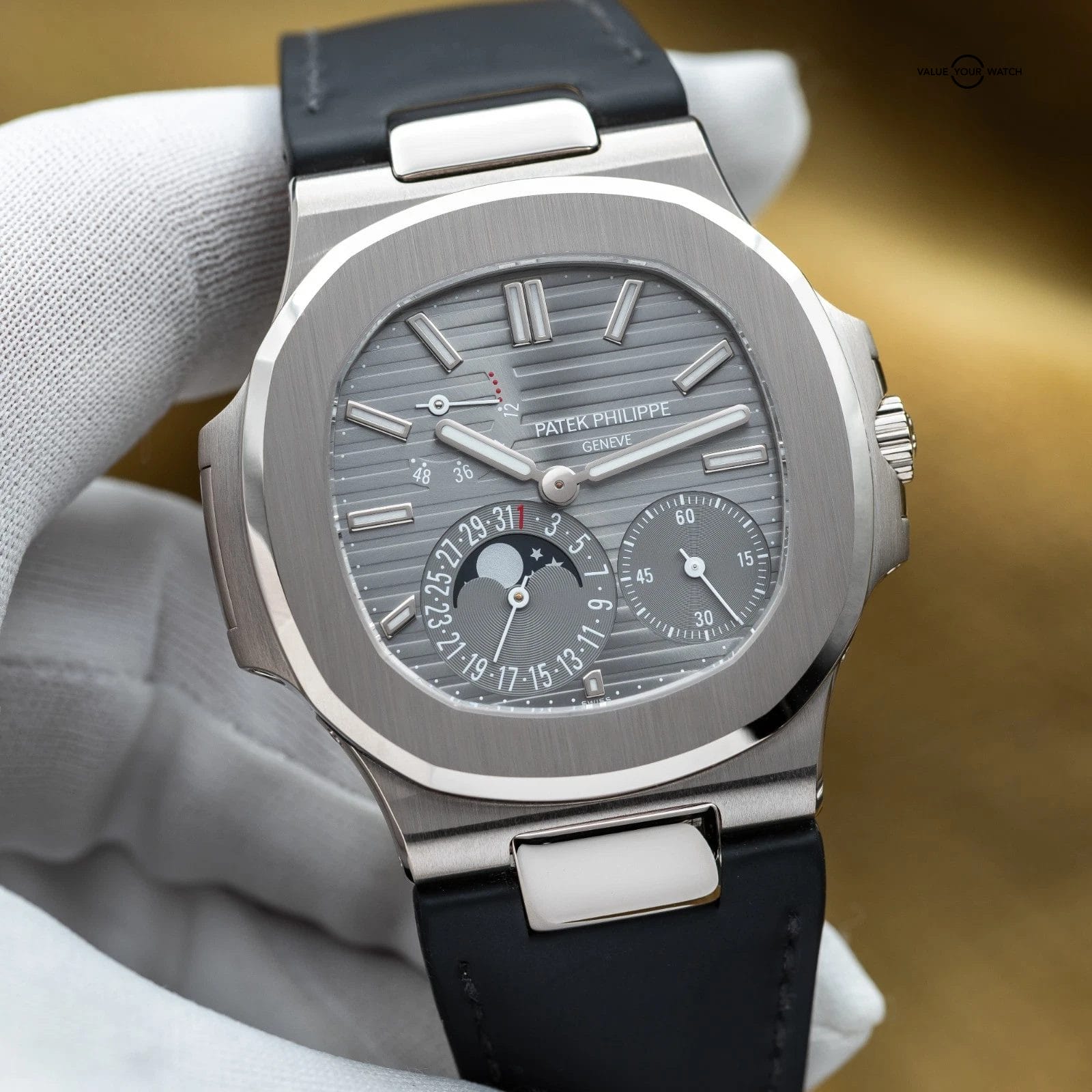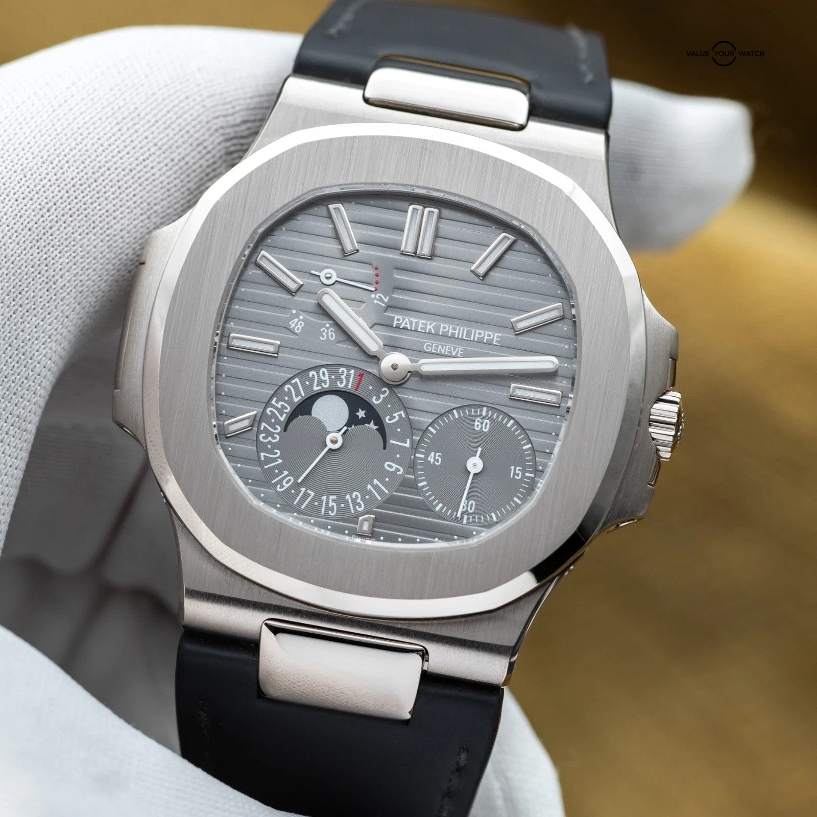 Specification: Patek Philippe Nautilus Moon Phase White Gold 40mm 5712G – Box & Papers