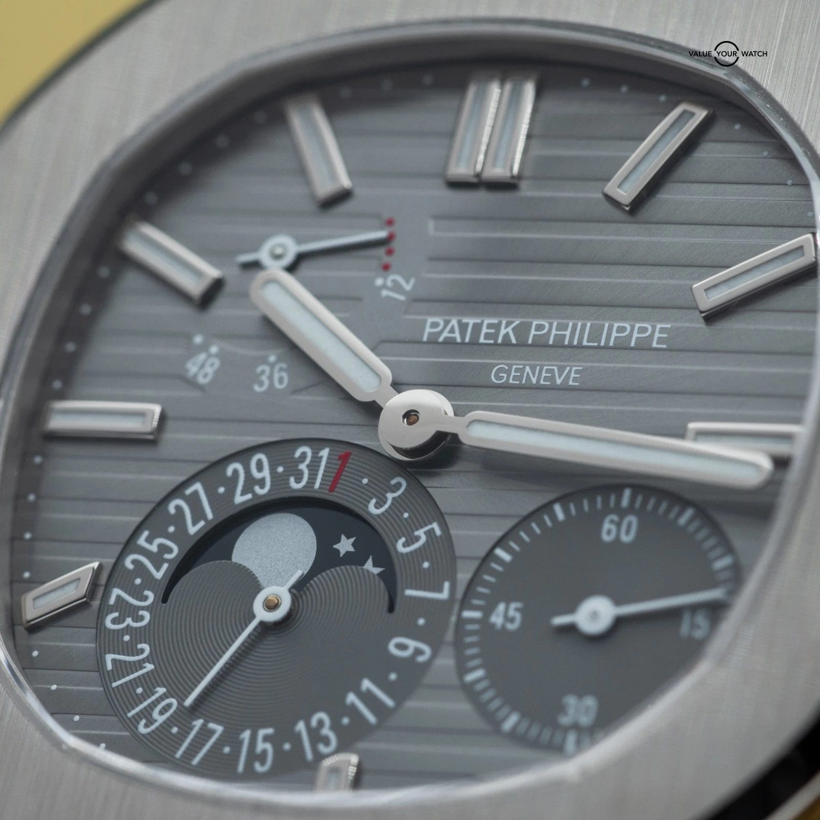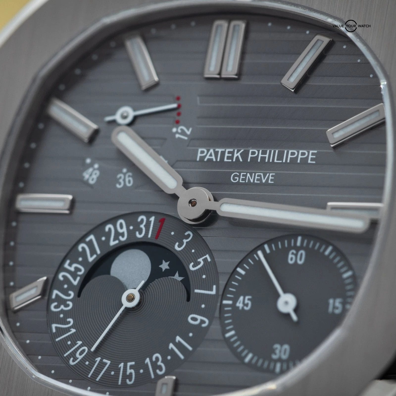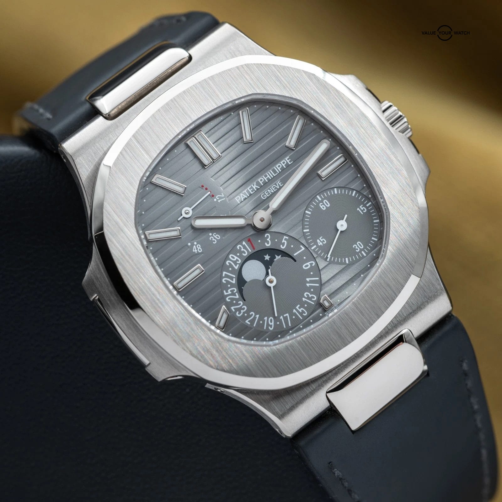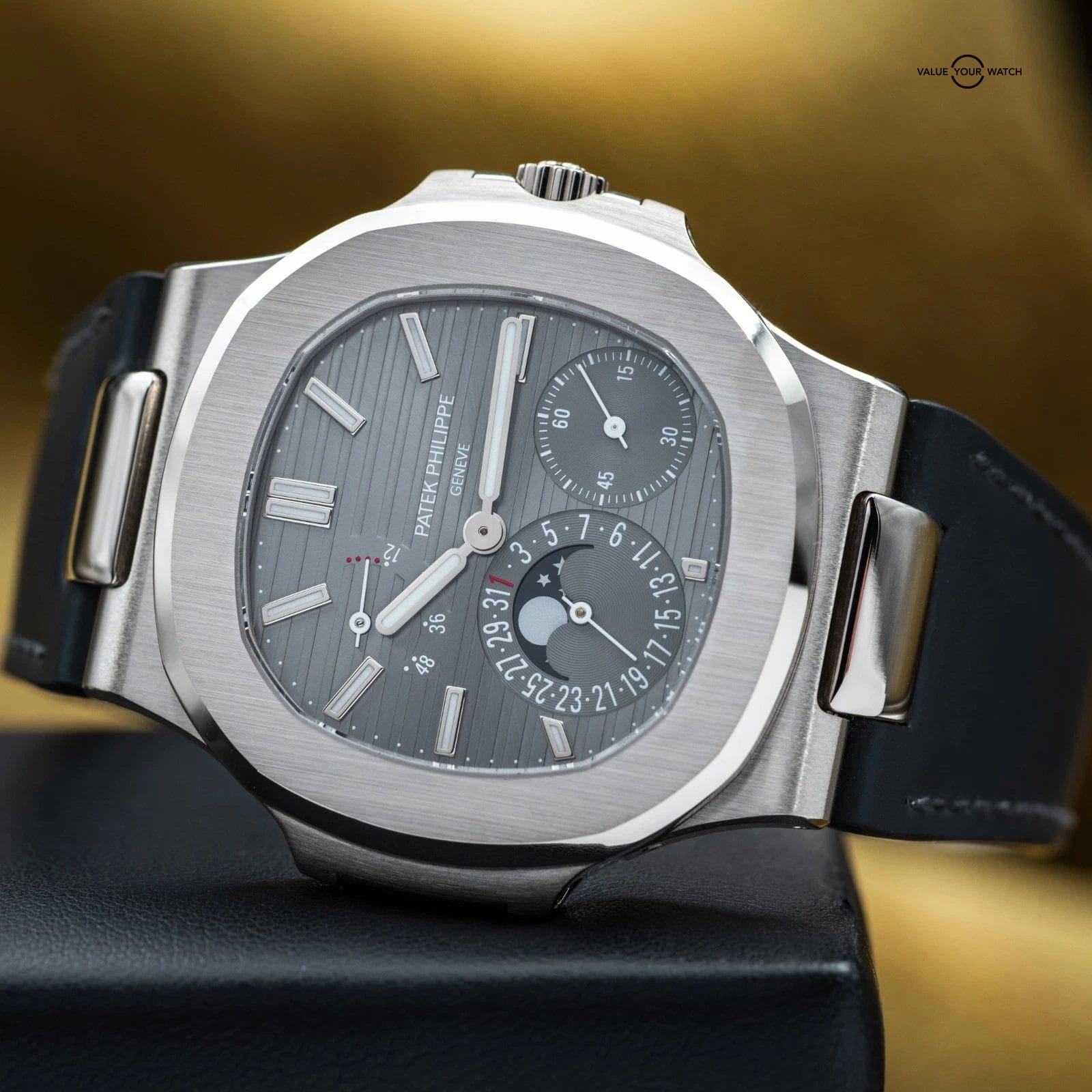 Specification: Patek Philippe Nautilus Moon Phase White Gold 40mm 5712G – Box & Papers