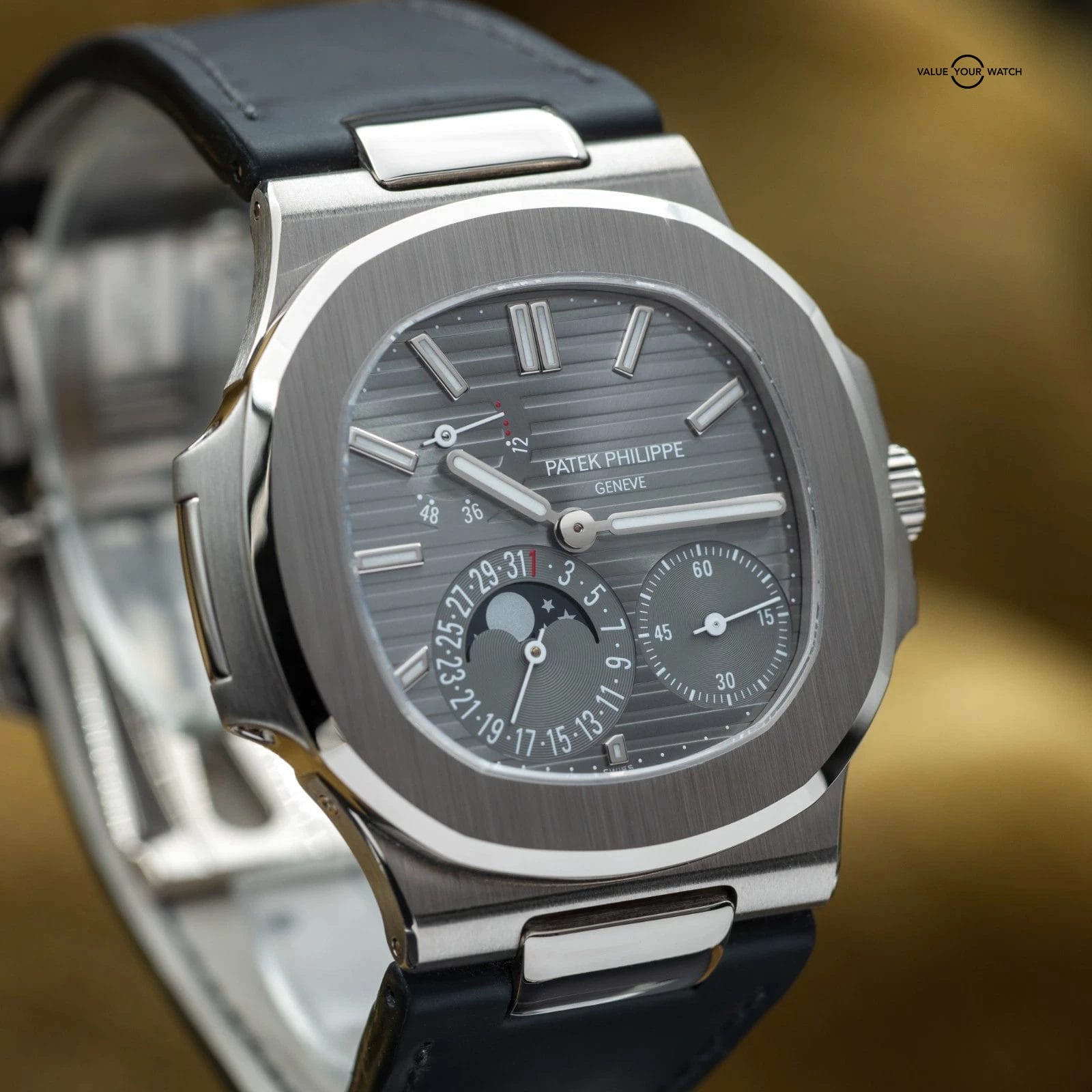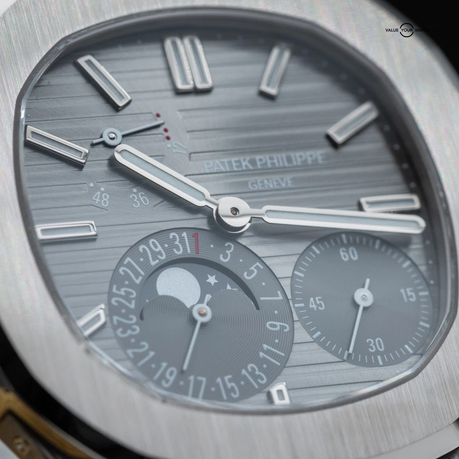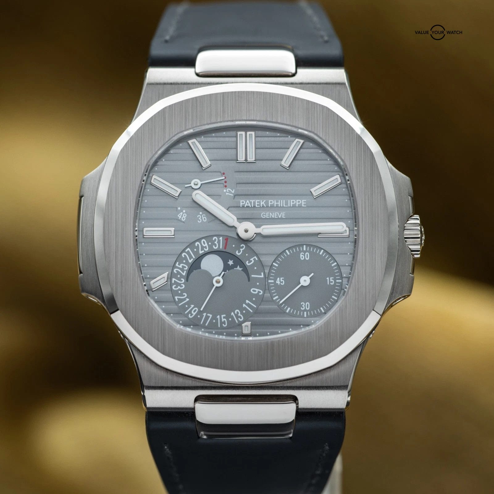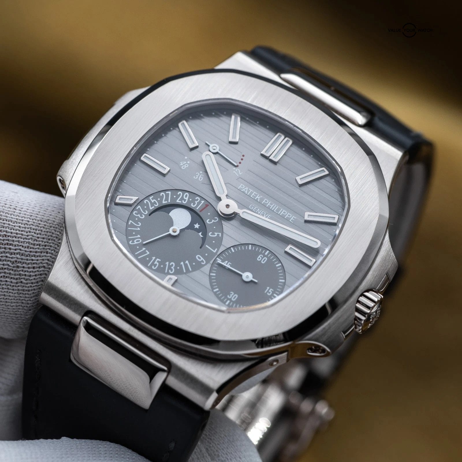 Specification: Patek Philippe Nautilus Moon Phase White Gold 40mm 5712G – Box & Papers