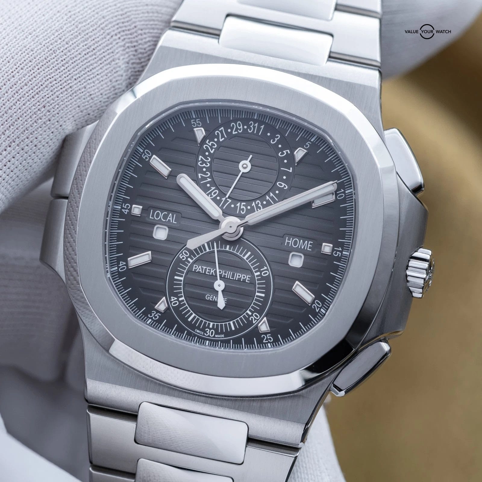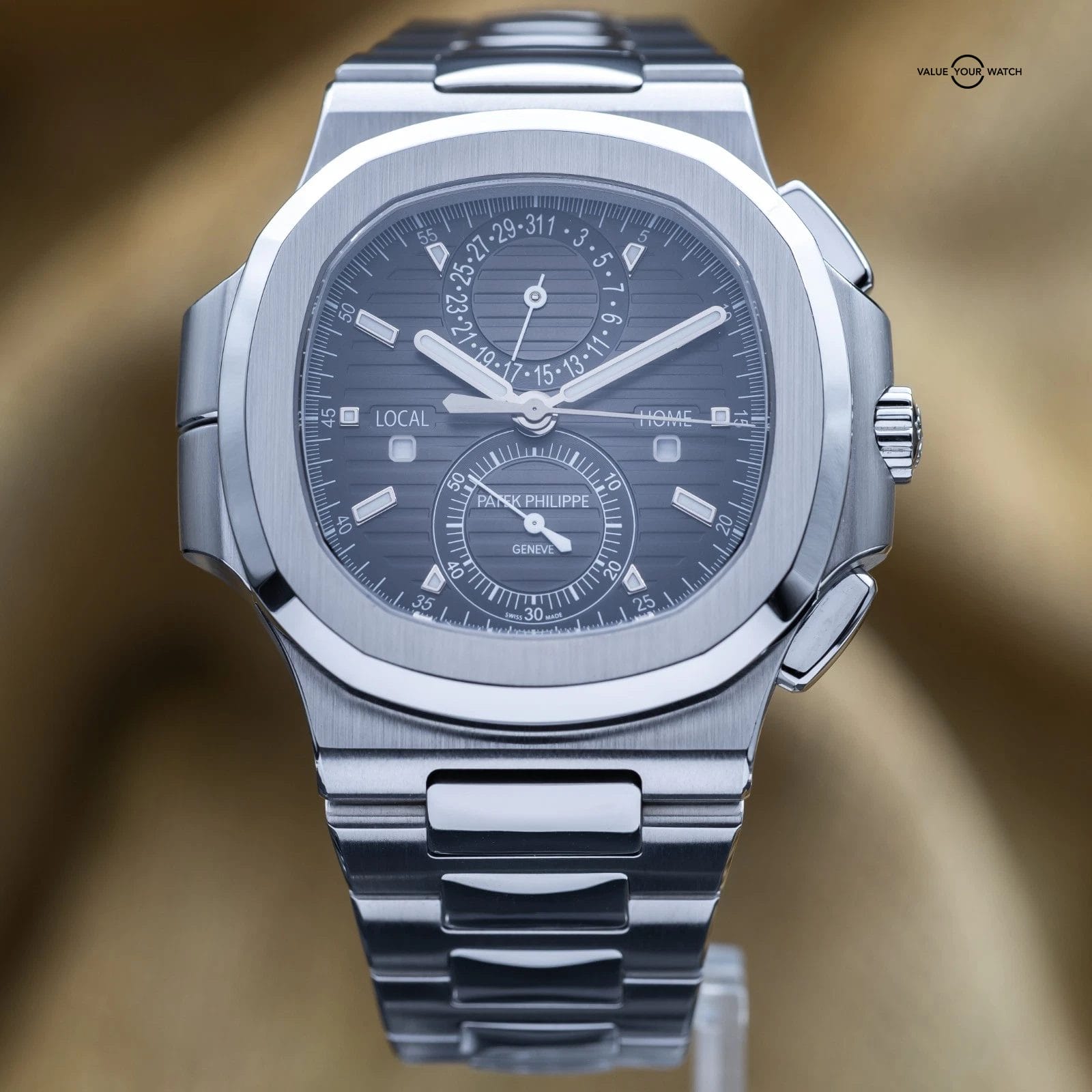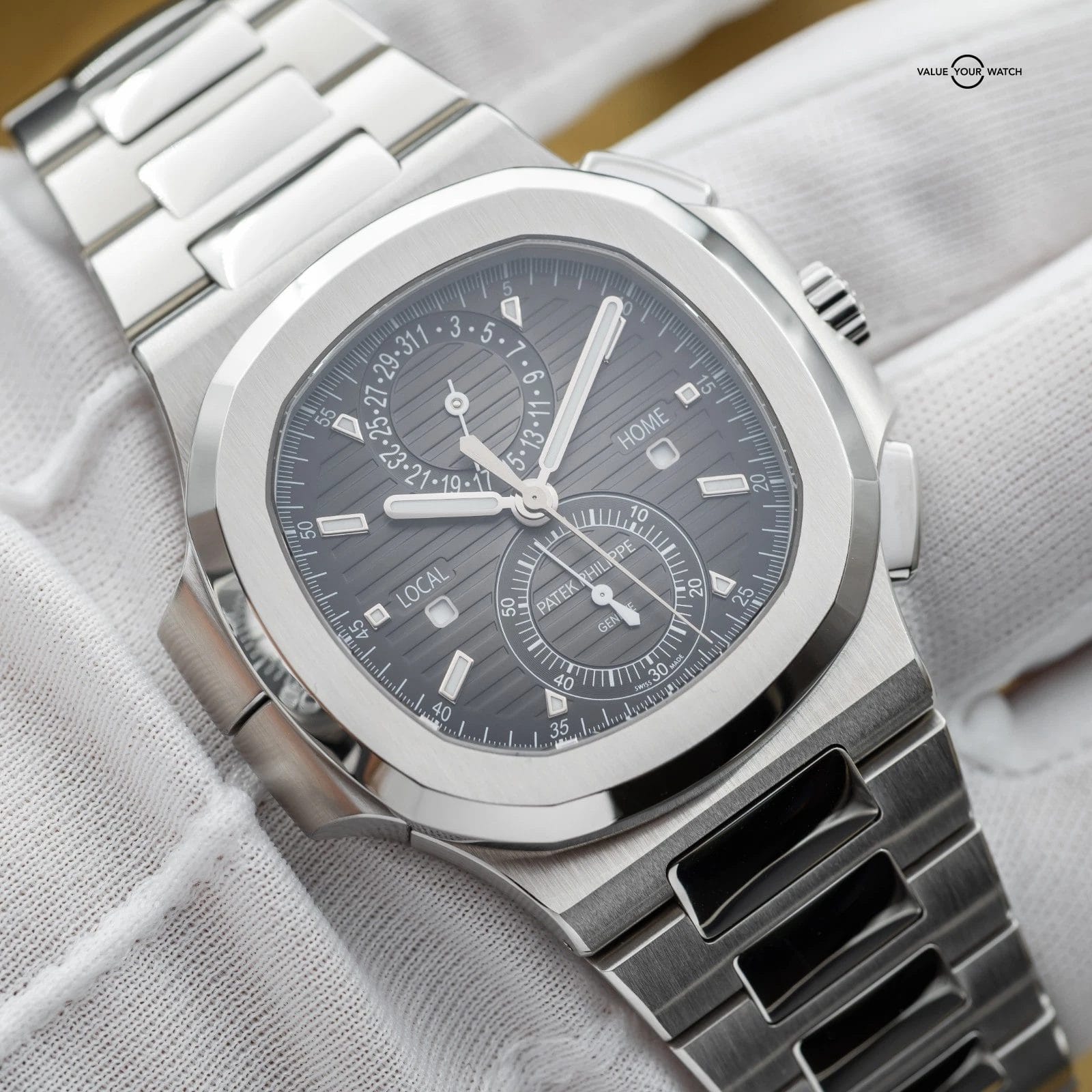 Specification: Patek Philippe Nautilus Travel Time Chronograph Steel 40.5mm 5990 – Box & Papers