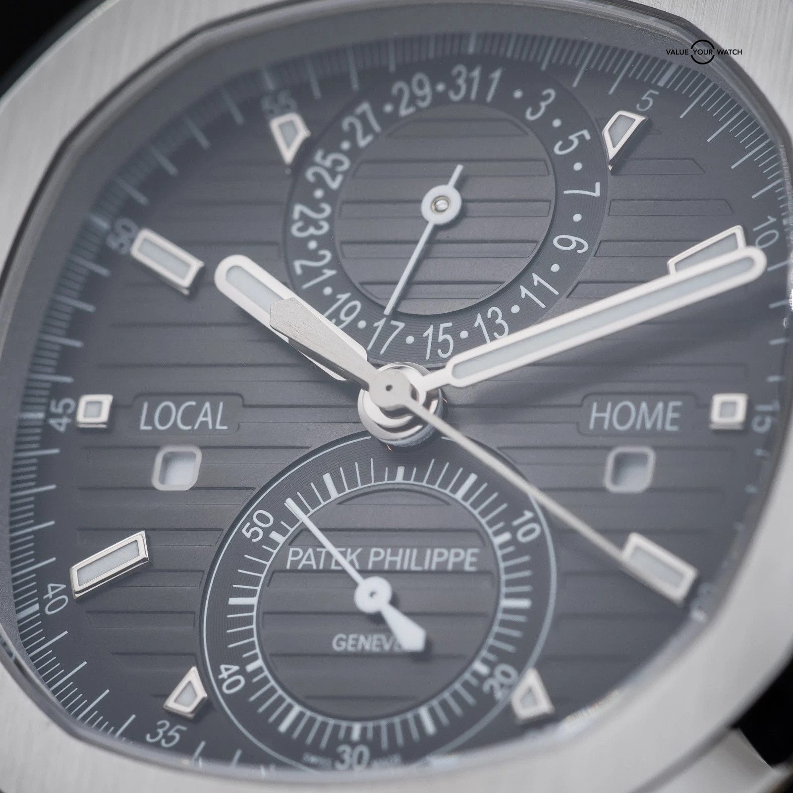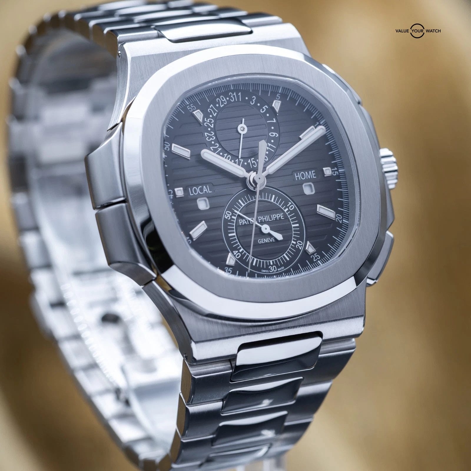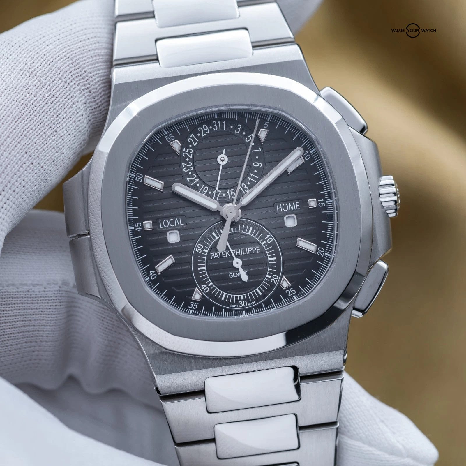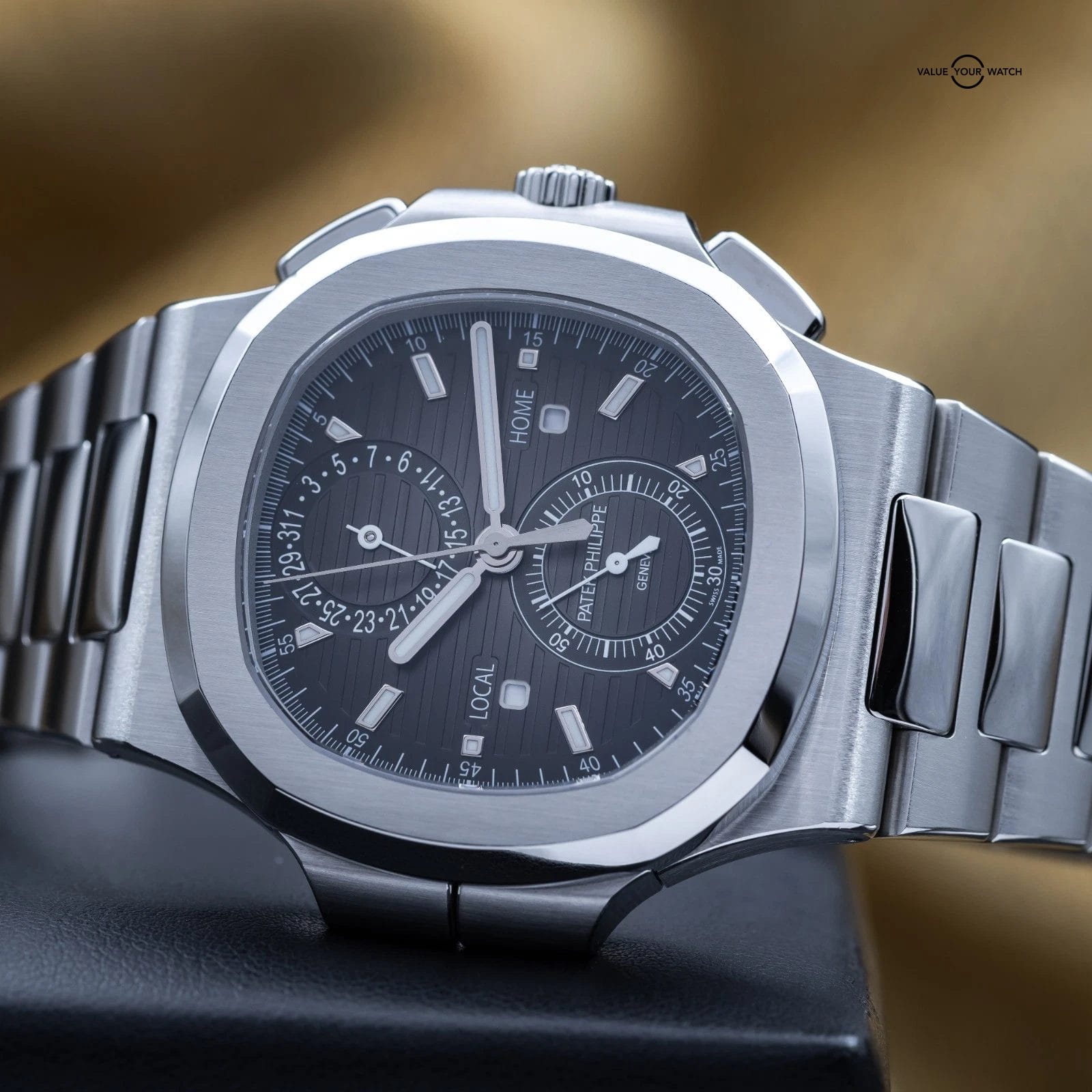 Specification: Patek Philippe Nautilus Travel Time Chronograph Steel 40.5mm 5990 – Box & Papers