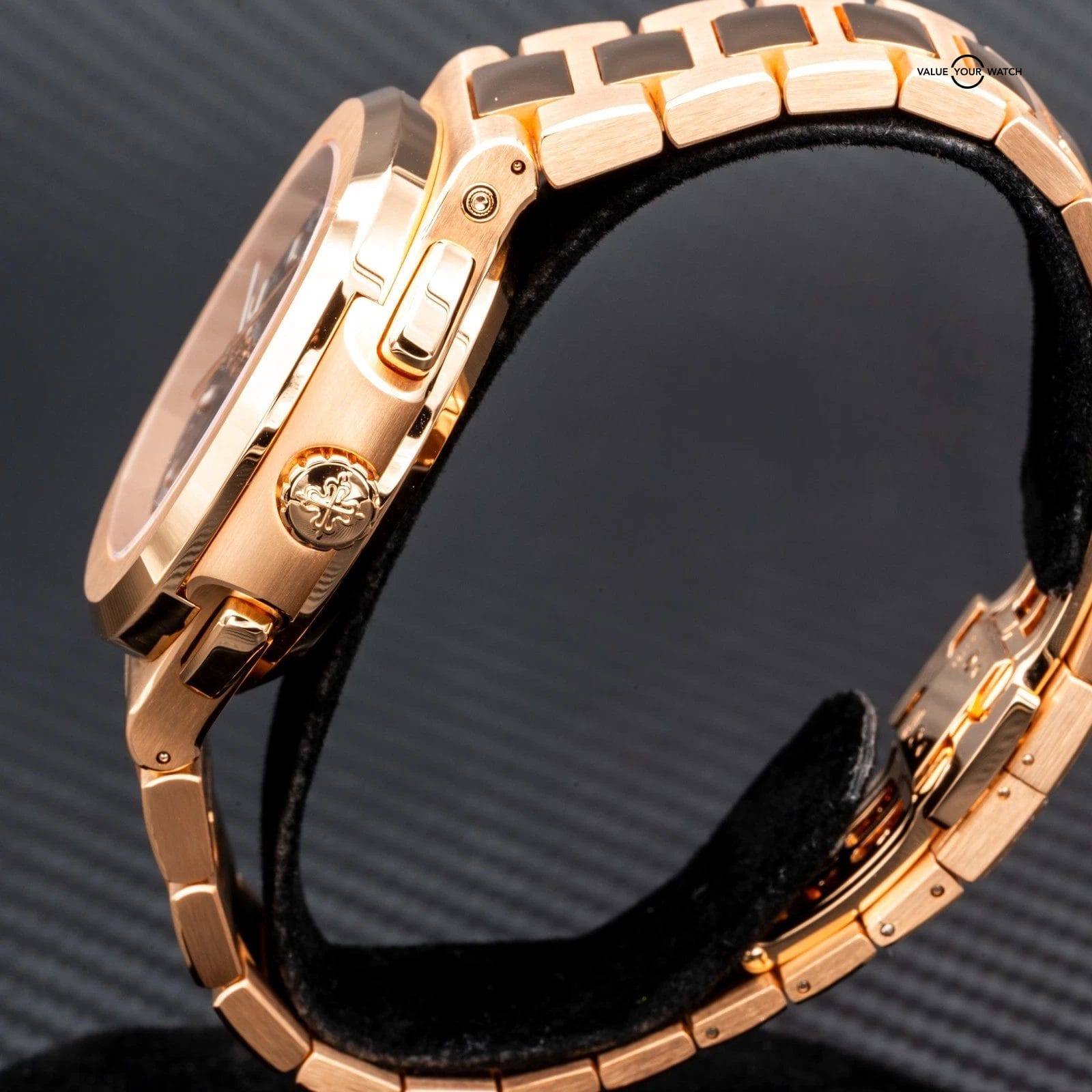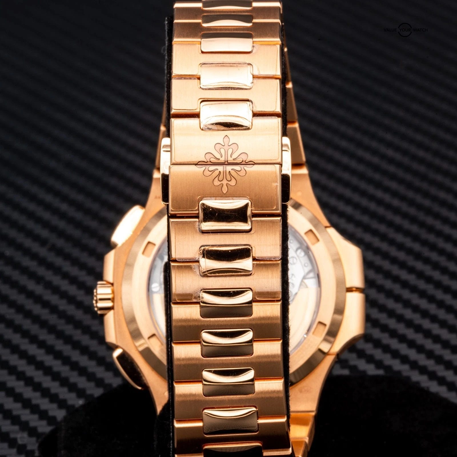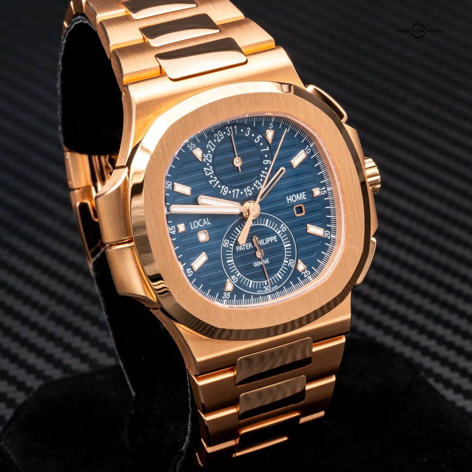 ⌚️UNWORN 2021 Patek Philippe Nautilus 5990/1R Travel Time Chronograph Rose Gold Blue Dial — FULL SET⌚️