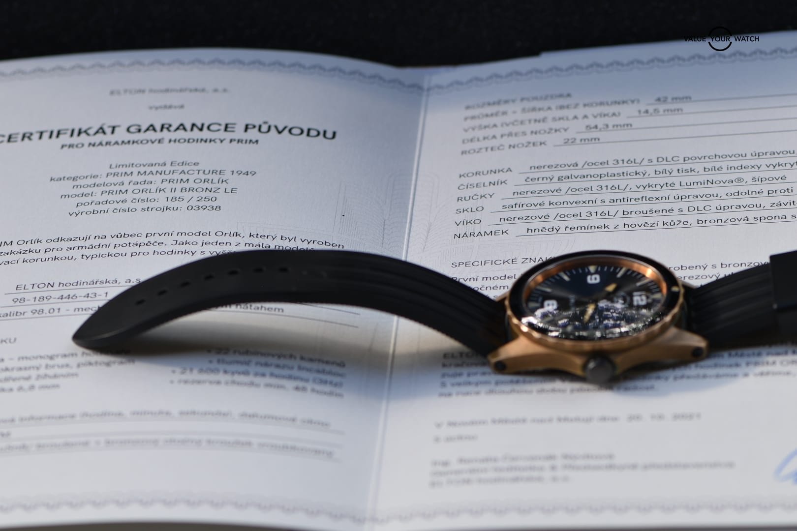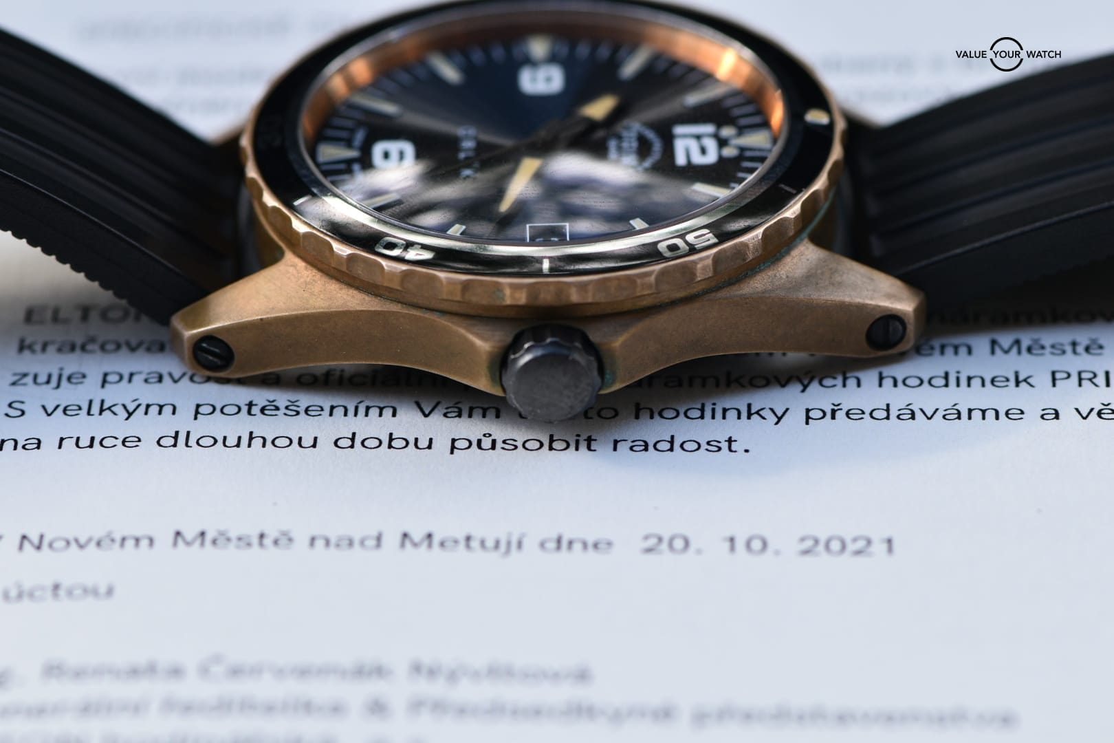 This watch comes with box and papers. The Czech version is singed in 2021 with the English version
