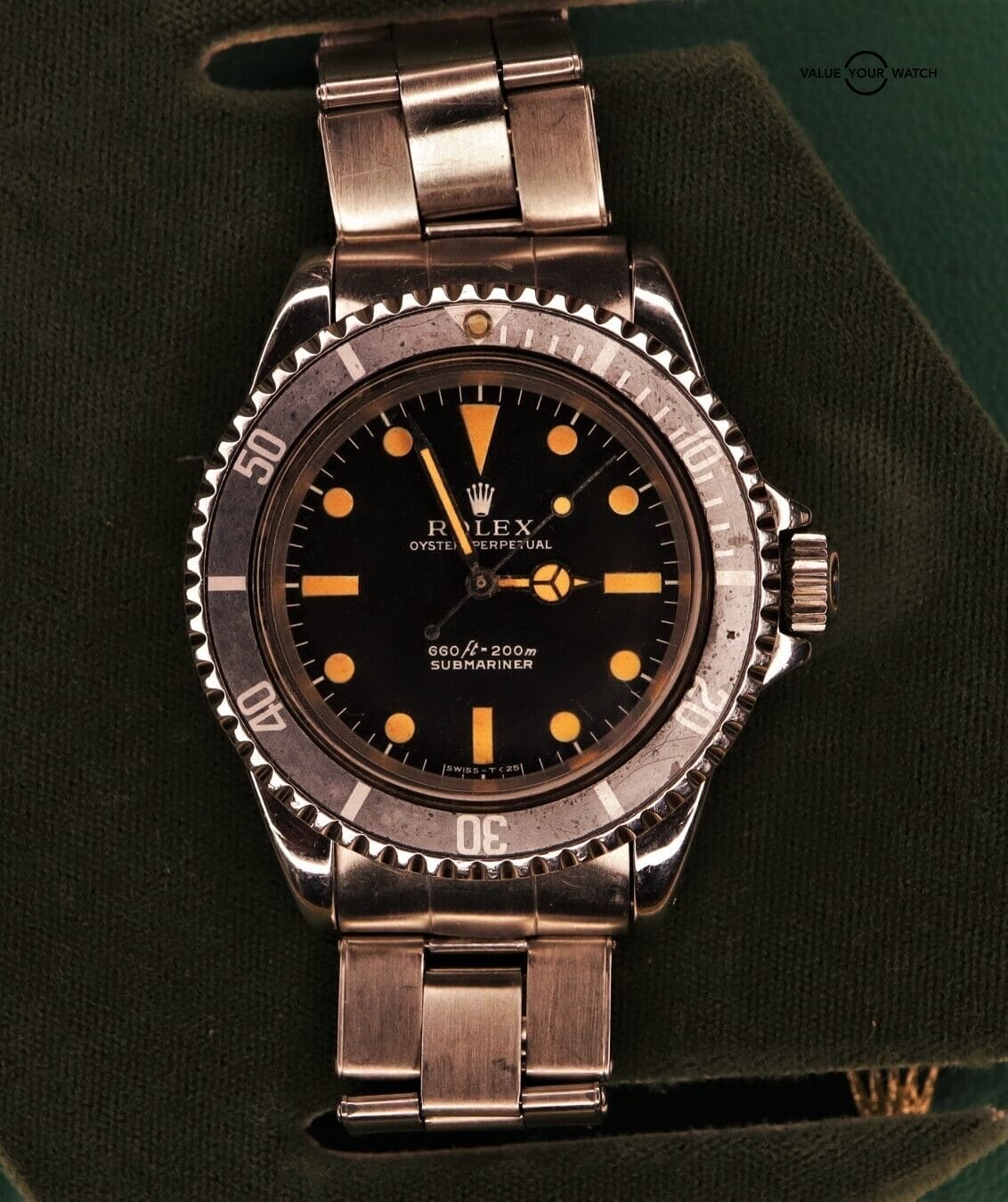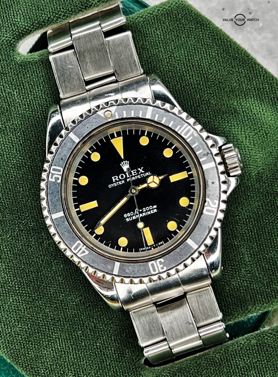 1968 Rolex Submariner No Date Stainless Steel 5513 Black Dial Ghost Bezel Box/Papers This watch comes in a nice complete set-in excellent condition for the age. It comes with the inner coffin box, and the original warranty papers (Dated July 11, 1969) The rivet bracelet is still in nice condition with a crisp clasp. If the matching dial and hands aren’t striking enough the ghost bezel insert sets this one over the top! It is fitted with a high quality swiss replacement crystal Mechanically the watch is functioning well. The crystal is clean with no nicks or scratches. Serial numbers & names are blurred in photos only for privacy reasons. I am happy to answer all questions about the watch. Just reach out to me via messages. I have many references in the watch world and am happy to provide as many as needed. Feel free to search my username “thegolferguy” in the Rolex Forums under the “Who’s Who” section and see ample feedback.