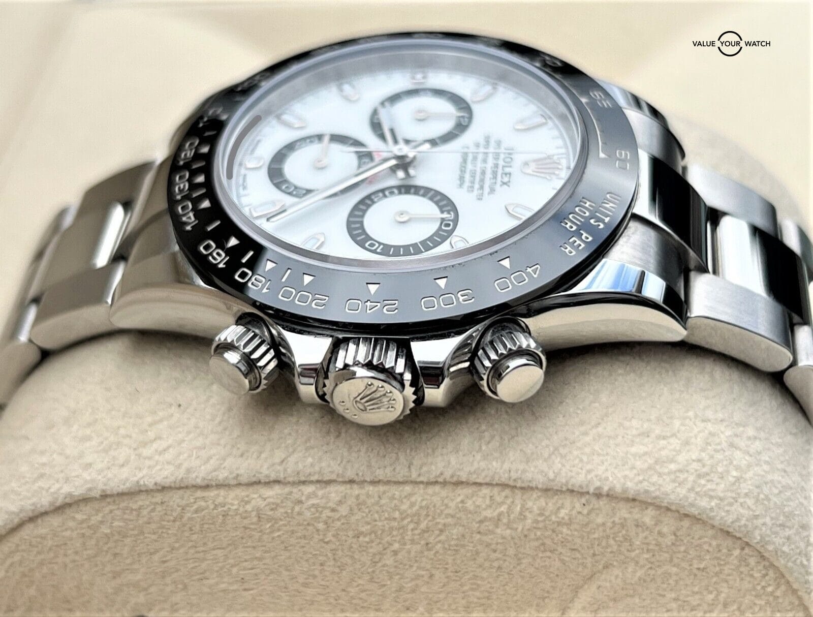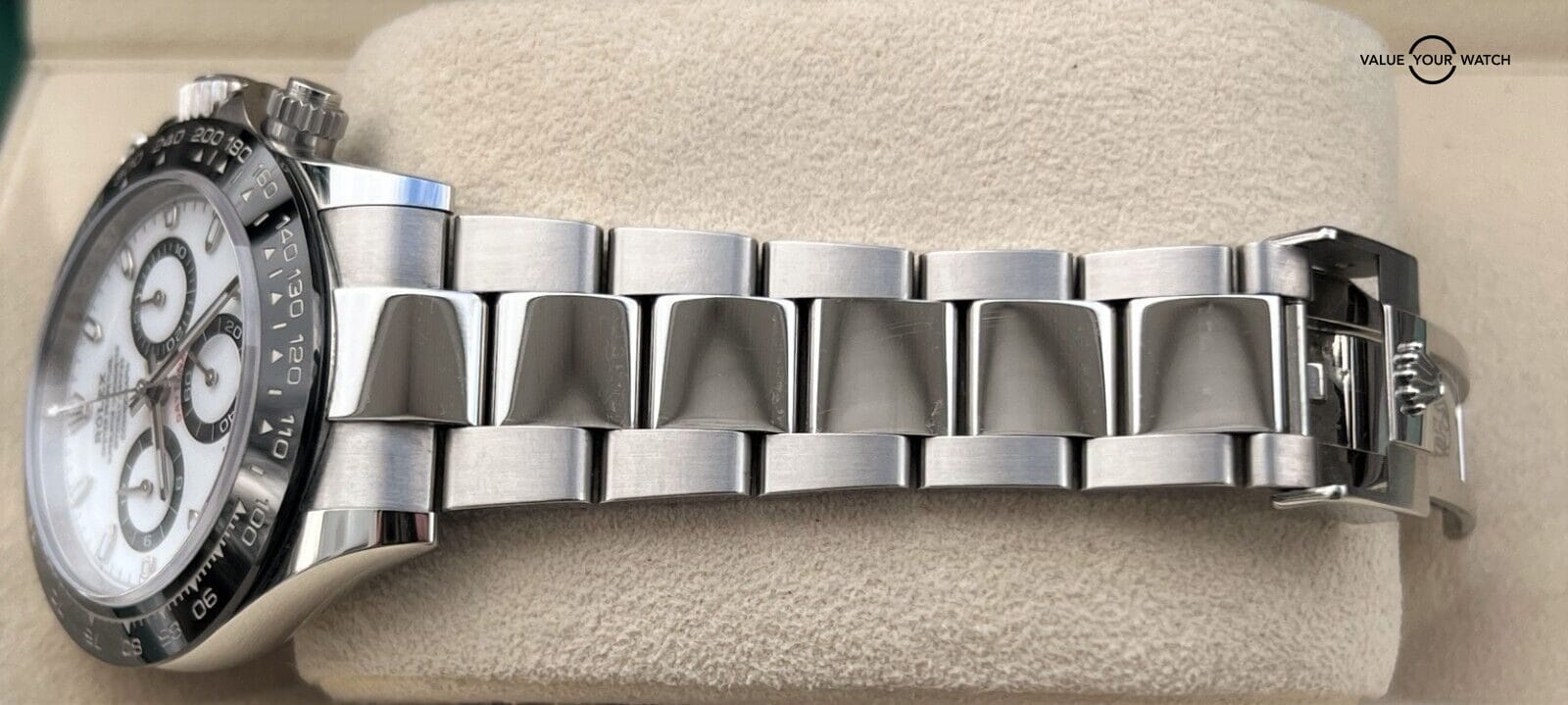 - Bezel: Black Ceramic with Tachymetric Scale