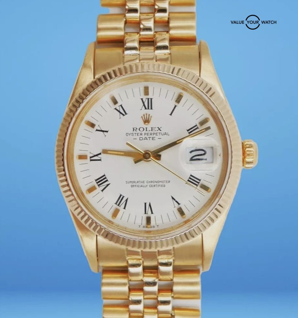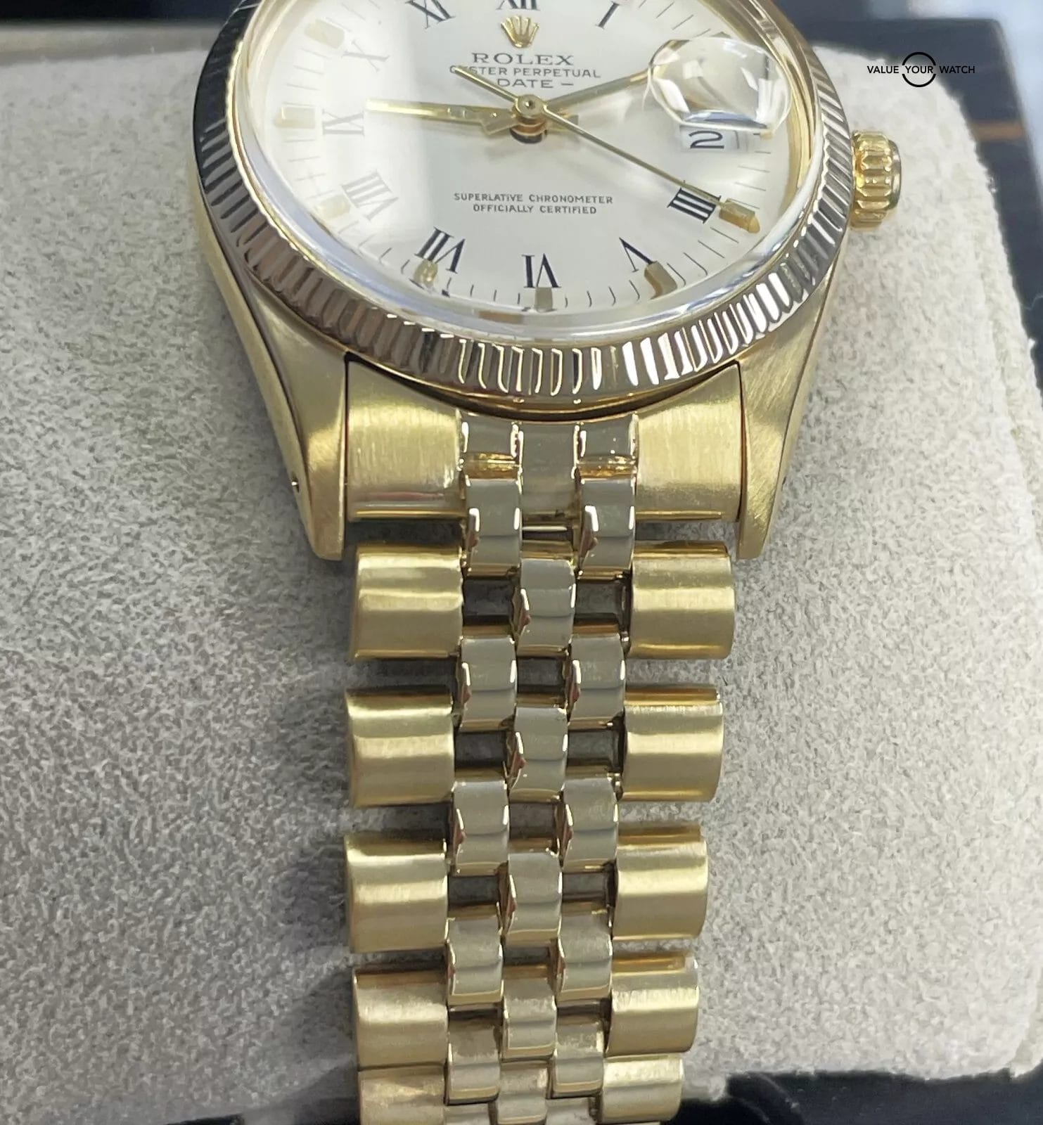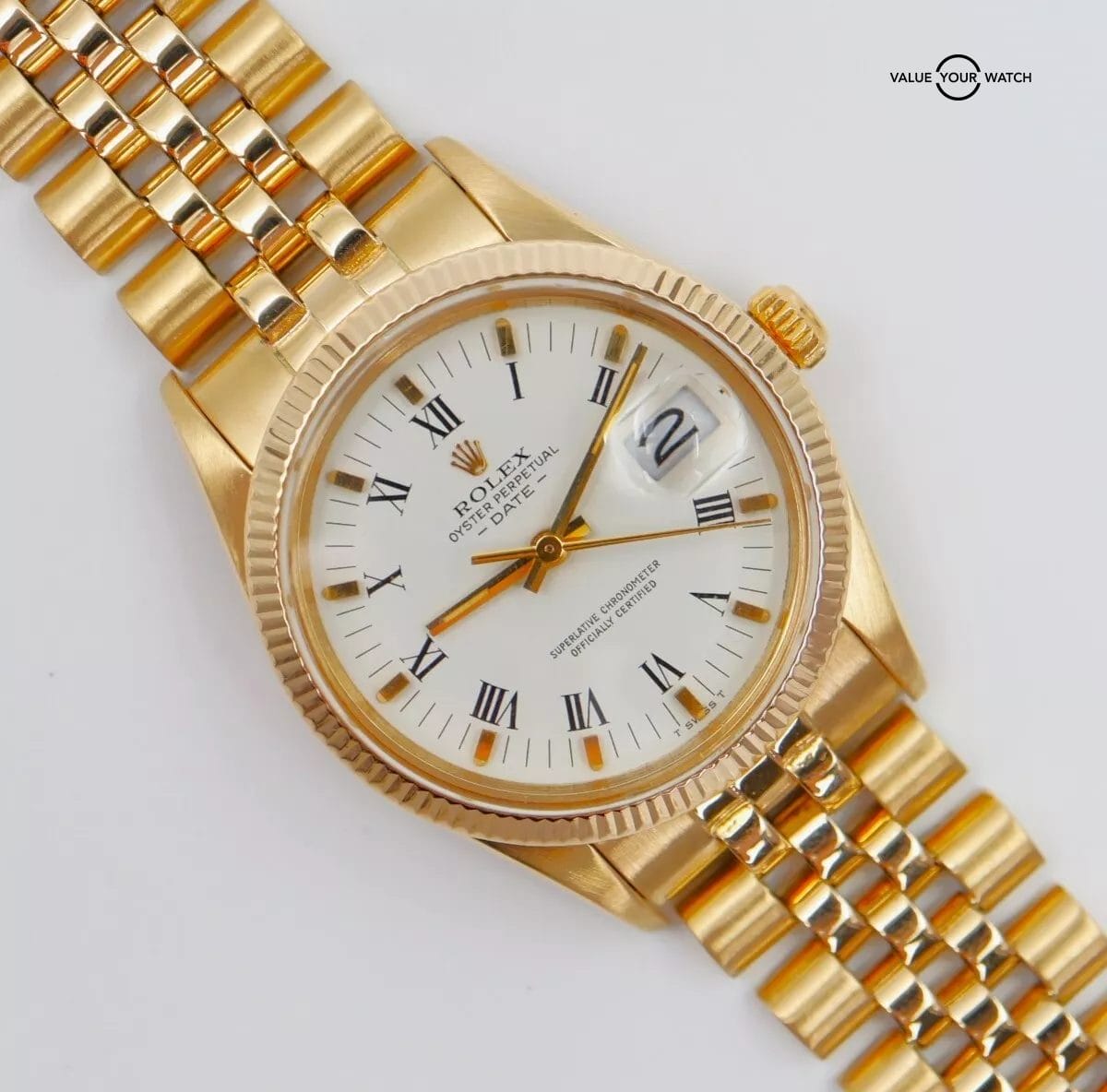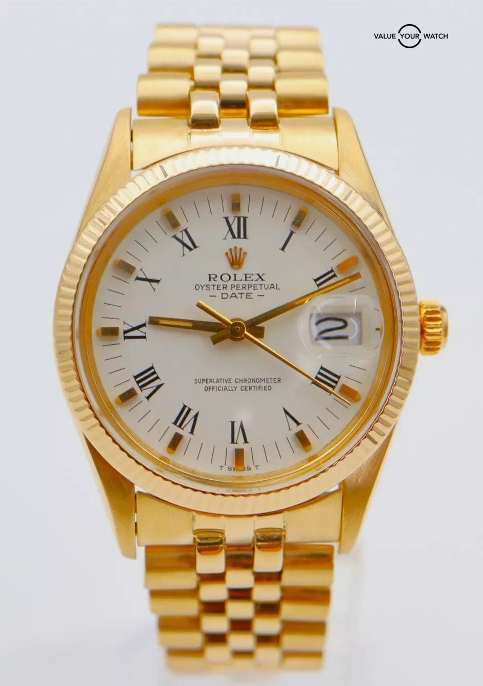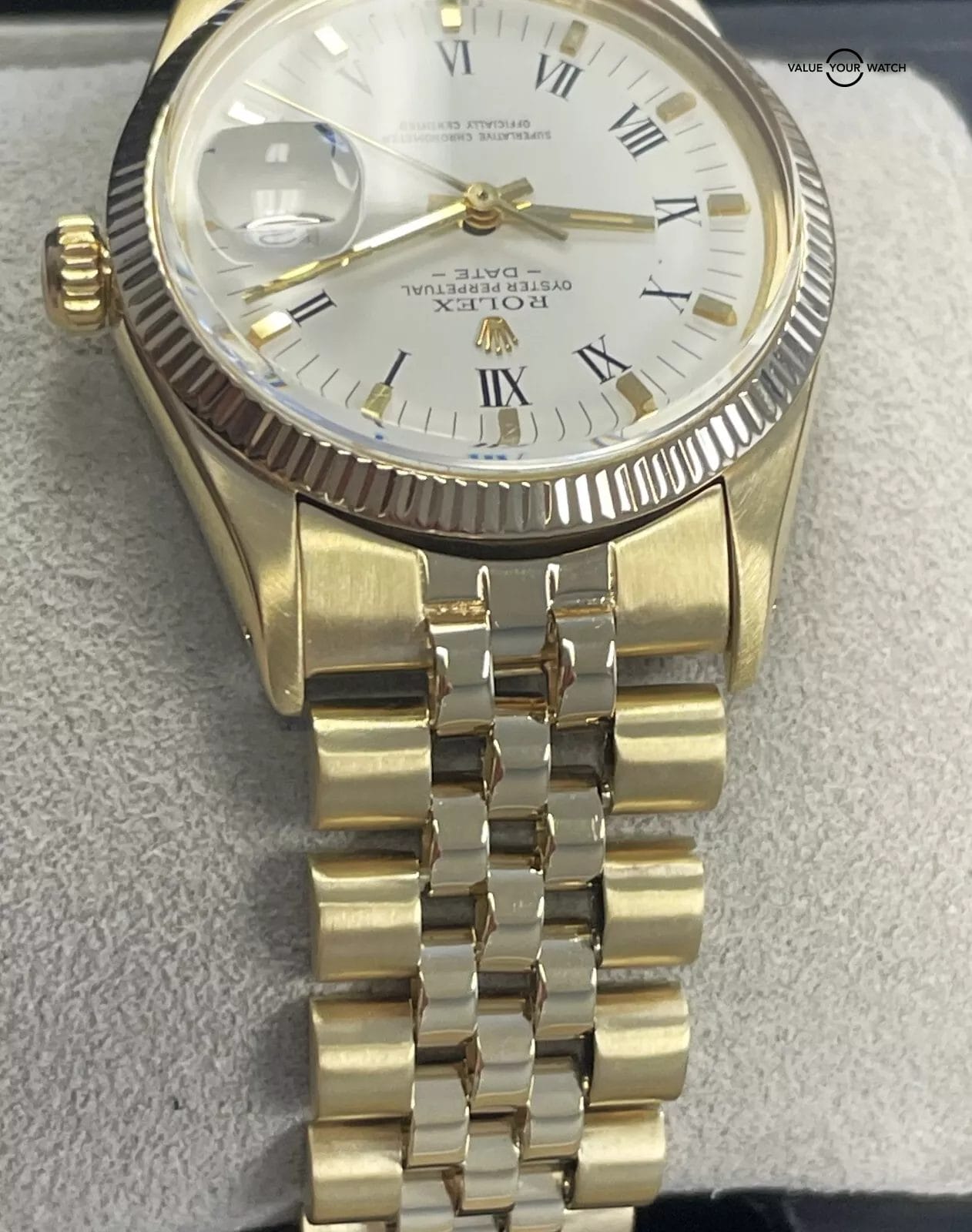 Specification: 1981 ROLEX Date 15037 14K Yellow Gold 34mm Jubilee White Dial!