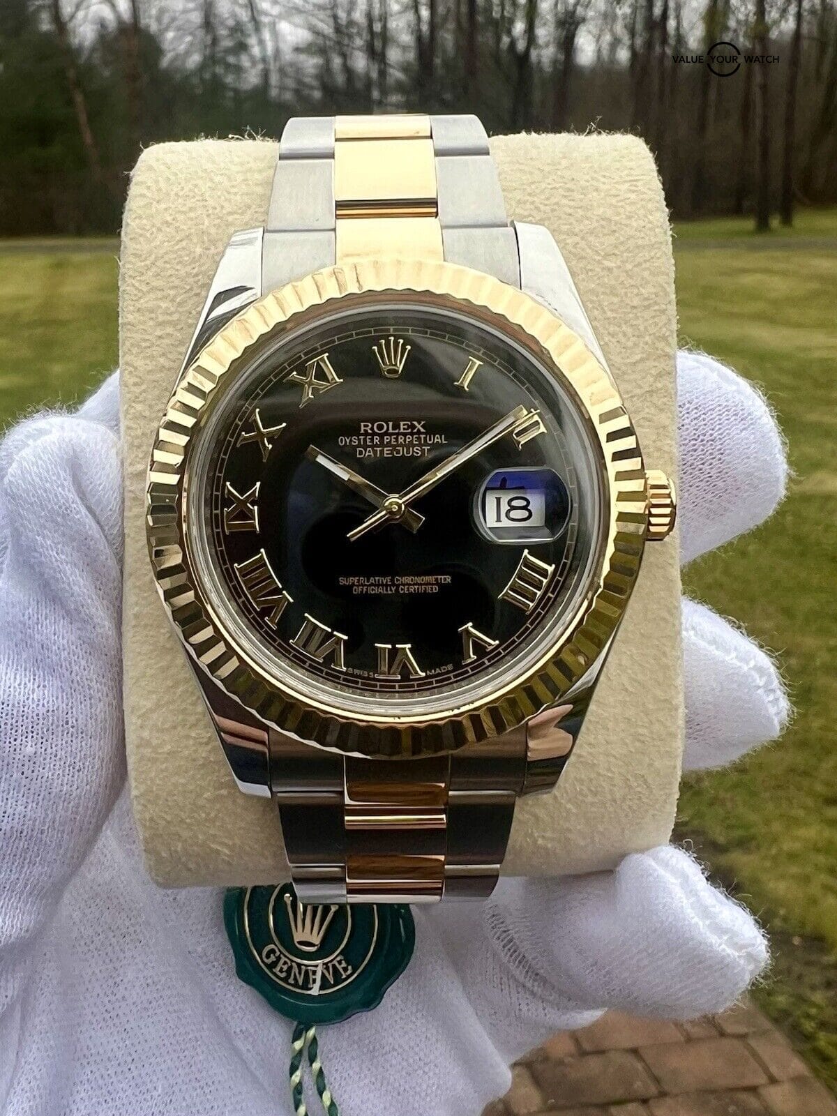 🔥Rolex Datejust 41mm 116333 Oyster Bracelet Gold Bezel Two Tone Black Roman🔥