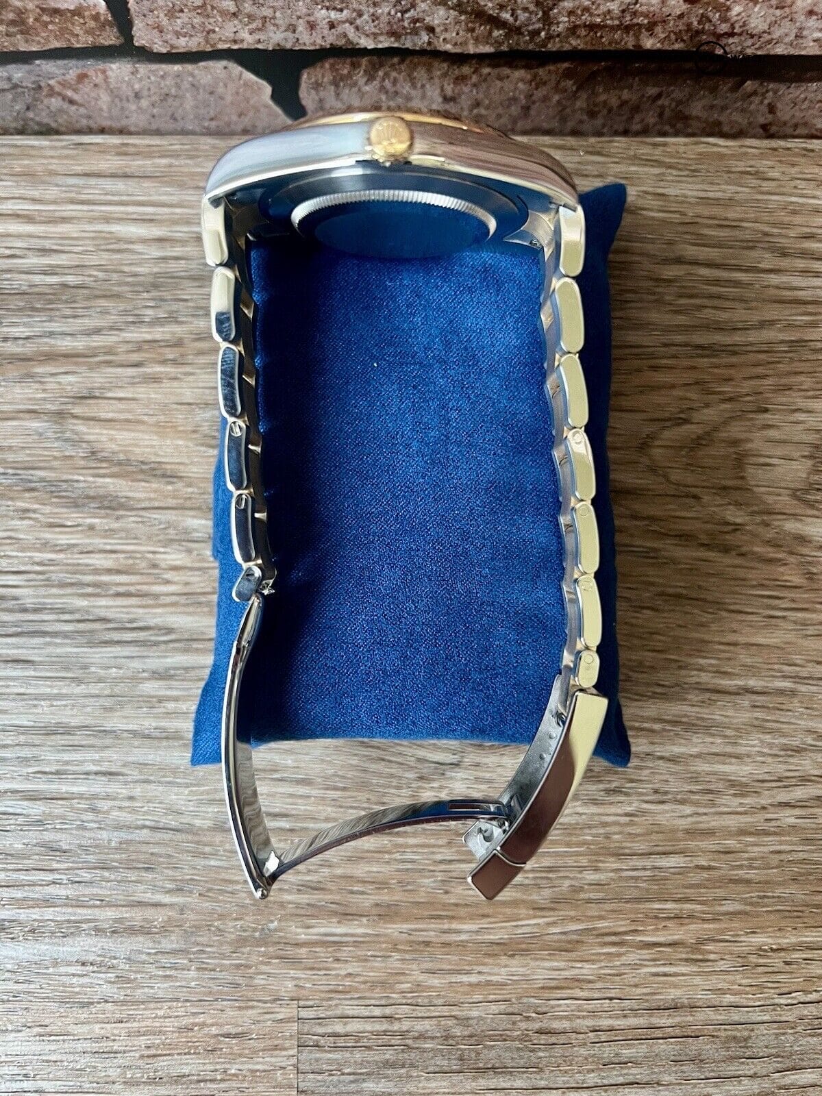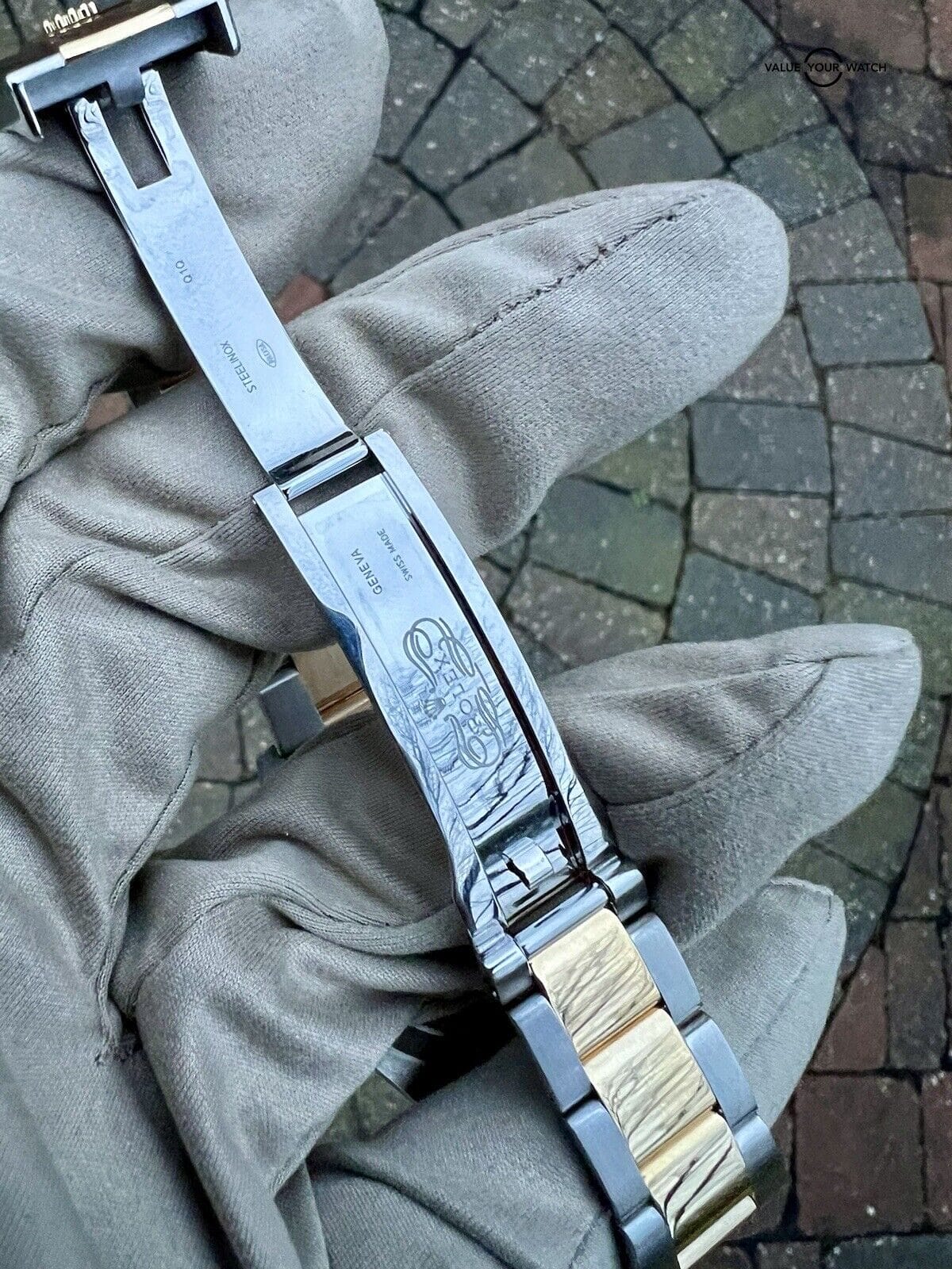 The Oyster bracelet made of stainless steel and yellow gold adds a touch of elegance to the watch, while the fluted bezel and solid caseback make it a reliable timepiece. This wristwatch comes with original box and packaging, as well as papers, and is a Swiss-made product. Don’t miss your chance to own this remarkable Rolex Datejust 116333.