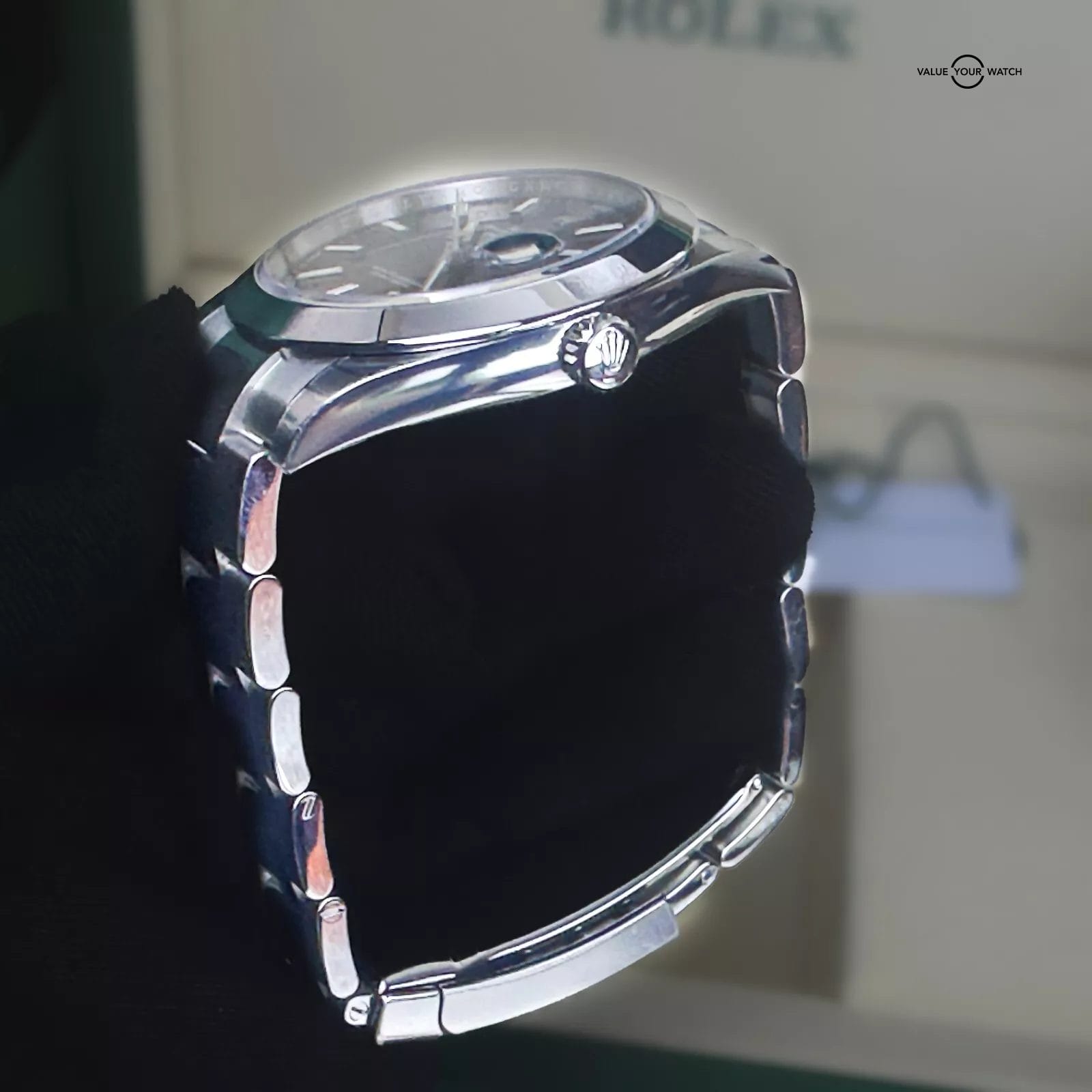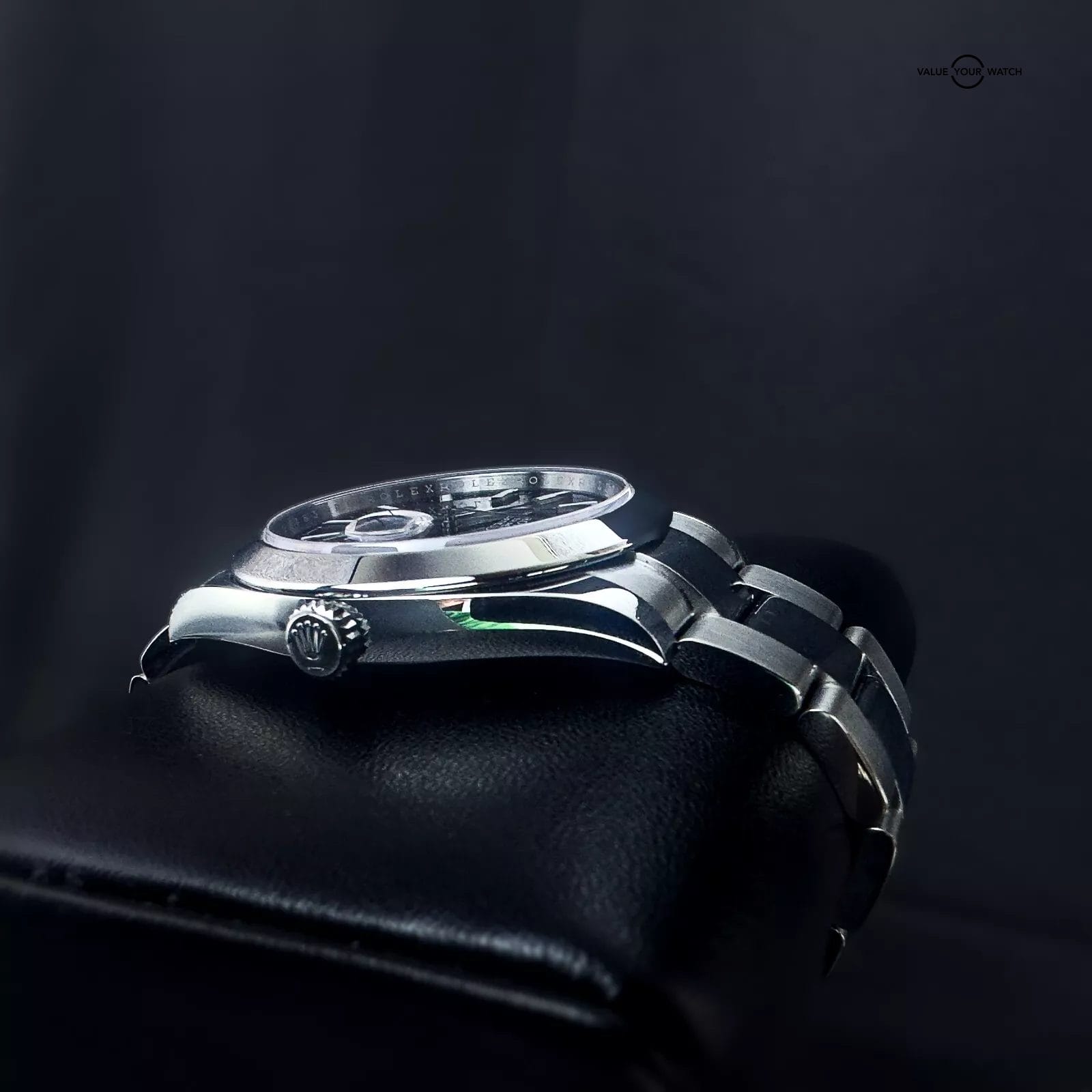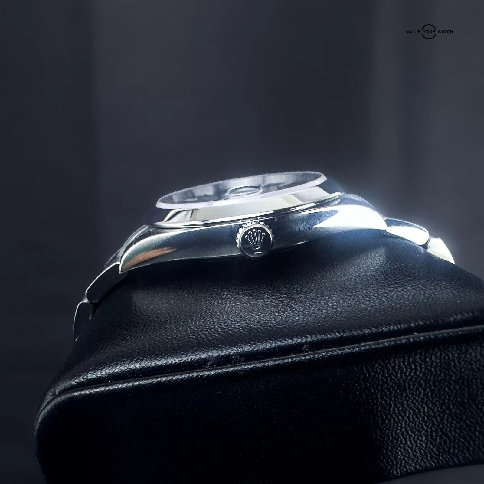 The 41mm Oystersteel case houses the Rolex Caliber 3235 automatic movement, offering an impressive 70-hour power reserve and Superlative Chronometer precision. The scratch-resistant sapphire crystal and Twinlock screw-down crown ensure durability and water resistance up to 100m.