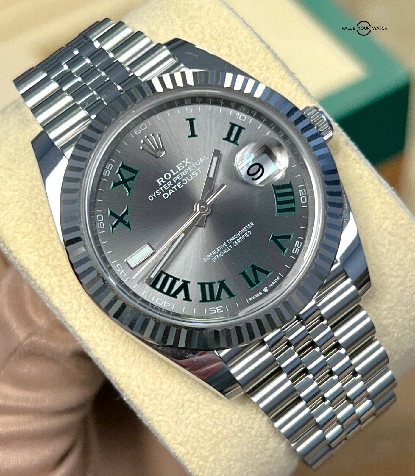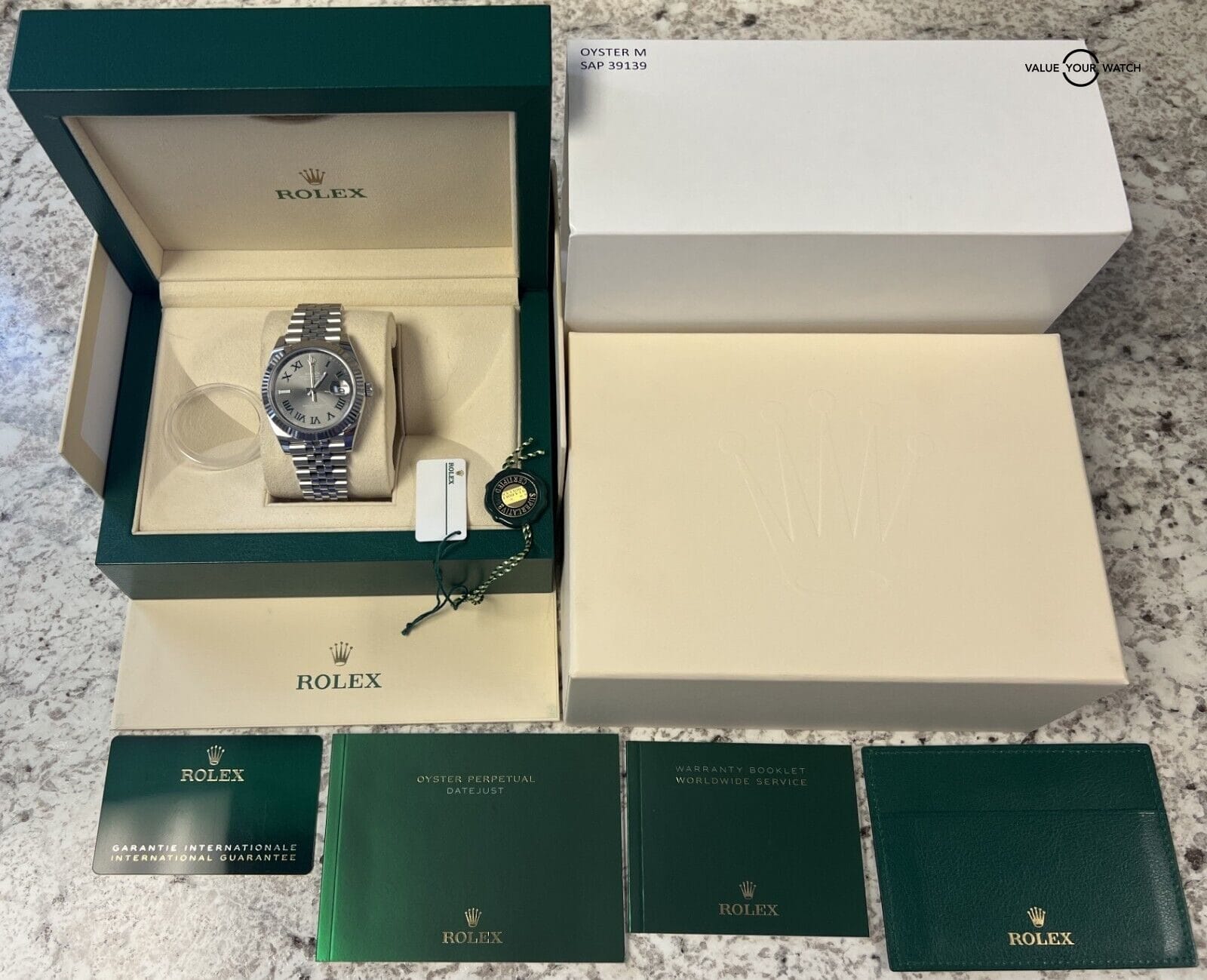 Rolex Datejust 41 Wimbledon Dial Stainless Steel White Gold 126334 BOXES/PAPERS!